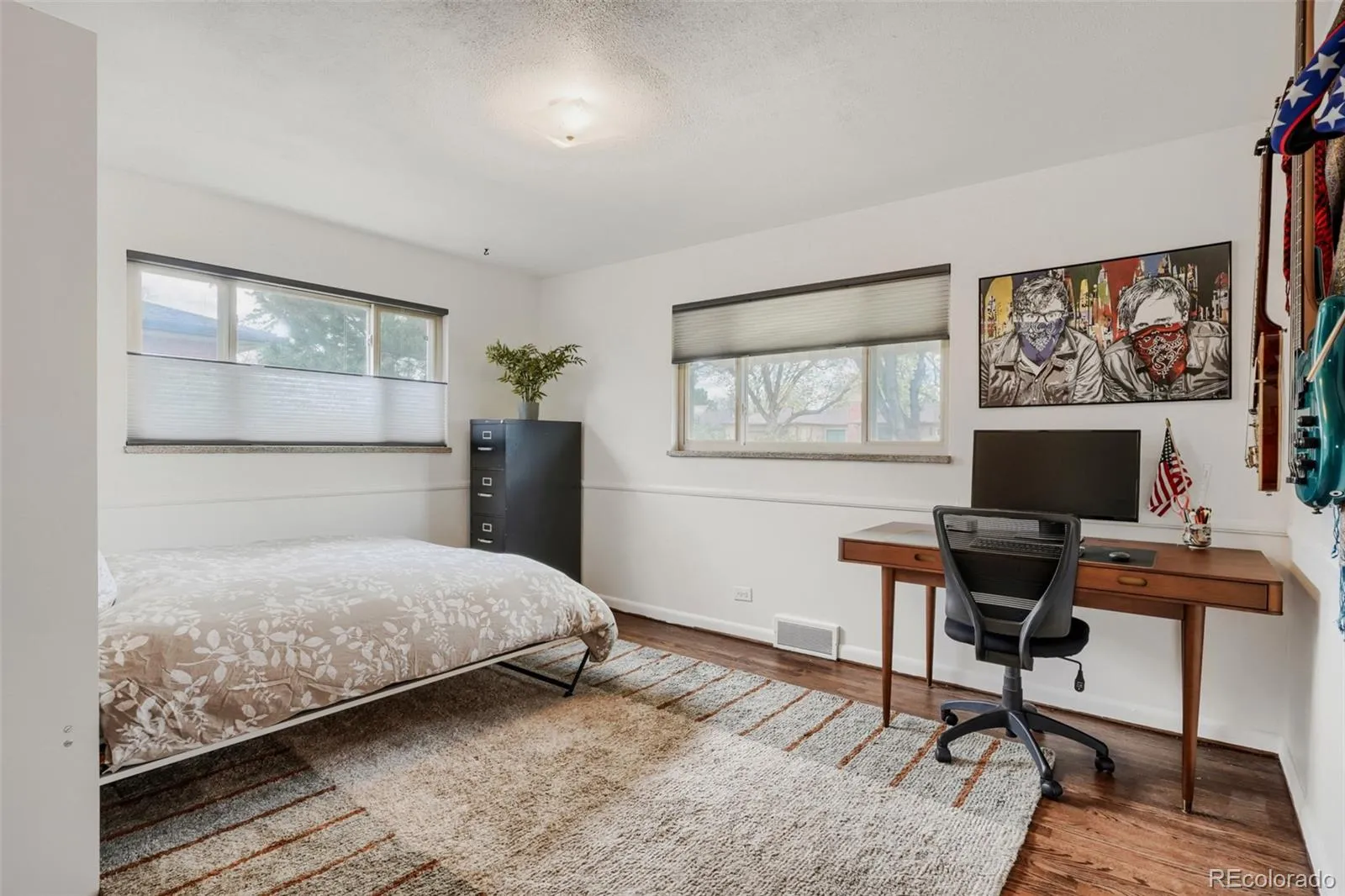 Classic and comfortable, this well-kept 3-bedroom, 2-bath brick ranch with attached two-car garage offers more than meets the eye. Situated on a spacious quarter-acre lot, the property features an oversized concrete parking pad—perfect for your boat, camper, or RV. Inside, you’ll find a bright, inviting kitchen, beautifully refinished hardwood floors, and thoughtful updates throughout. Improvements include updated windows, a newer sewer line, a durable Class IV roof, and a tankless water heater for added efficiency. The top-down/bottom-up HD window coverings (some automatic) add both convenience and style. With a subtle nod to mid-century modern design and set on a charming tree-lined street, this home captures the relaxed, welcoming feel that defines Wheat Ridge living. Ideally located just minutes from the vibrant shops, dining, and entertainment of Tennyson Street and Olde Town Arvada. With convenient access to I-70, commuting is effortless and mountain getaways are always within reach, all while still enjoying the peace and charm of a quiet residential neighborhood.