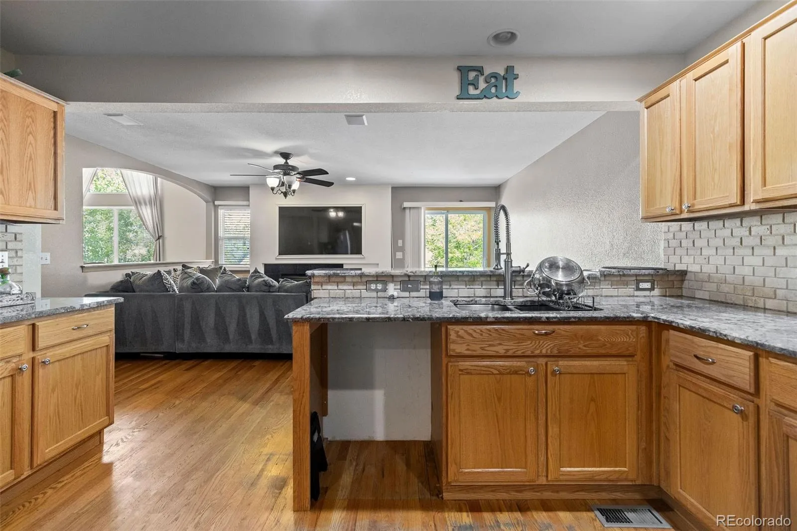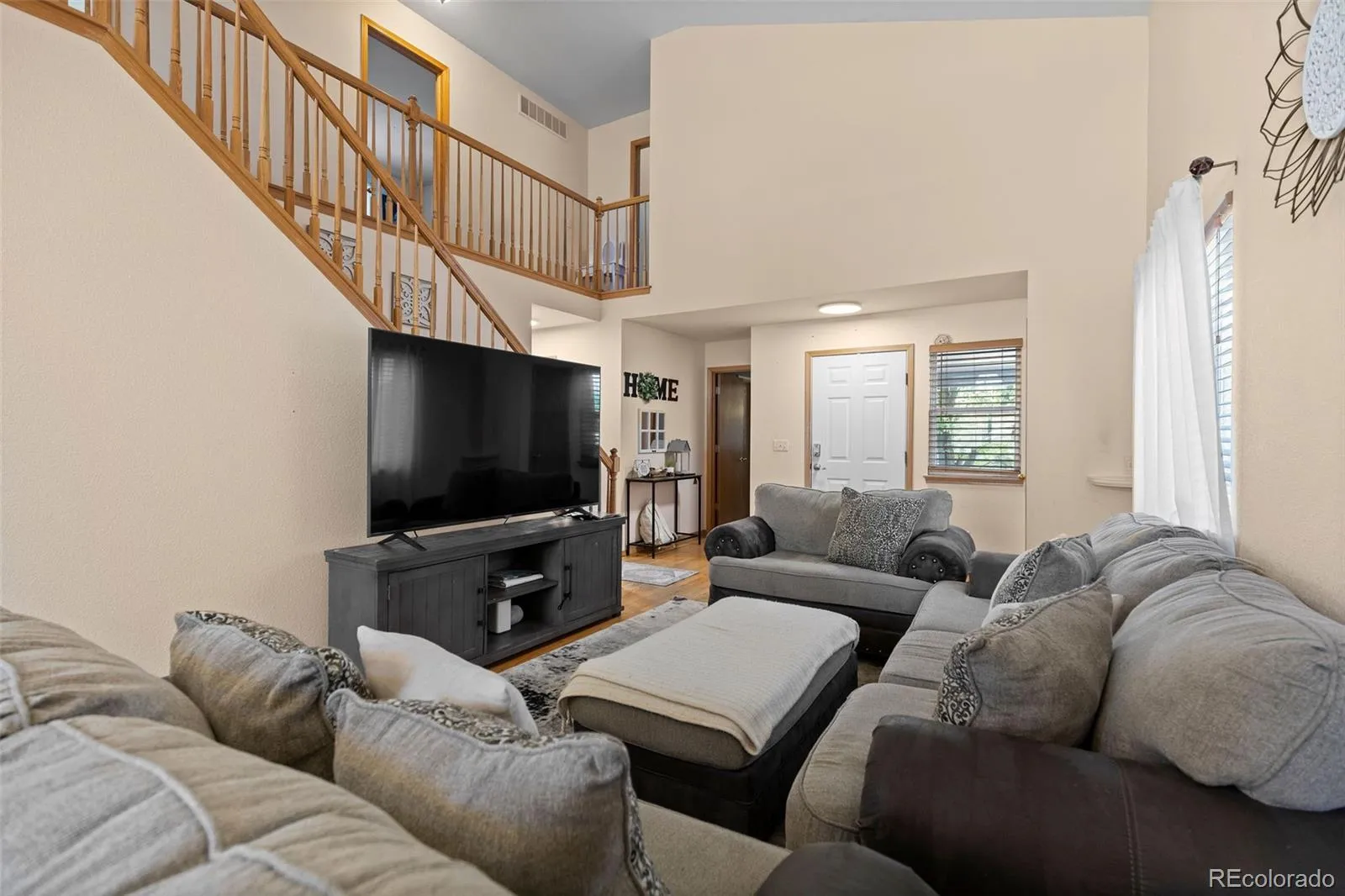 Space, light, and a layout that actually works. This 5-bedroom home in Ridge Crest offers over 3,400 total square feet with flexibility built into every level. Step inside to vaulted ceilings and an open entry that flows into multiple living spaces, giving you room to spread out without feeling disconnected. The main-level bedroom and full bath create an ideal setup for guests, a home office, or multigenerational living. The kitchen sits at the center of it all with plenty of cabinet space and an easy connection to both dining and living areas, making everyday life and hosting feel effortless. Just beyond, the family room with fireplace opens directly to the backyard. Upstairs, the primary suite is a true retreat with a five-piece bath and generous proportions, while three additional bedrooms and a loft give you options for work, play, or additional living space. Outside, the backyard is set up for Colorado evenings with a deck, patio, and fire pit area, all positioned to capture warm afternoon and sunset light. Mature trees add privacy and a sense of space you don’t always find in this price point. The unfinished basement is a blank slate with nearly 1,000 square feet ready for whatever comes next. Located in Ridge Crest with easy access to parks, schools, and commuter routes, this home offers the space you’ve been looking for with the flexibility to grow into.