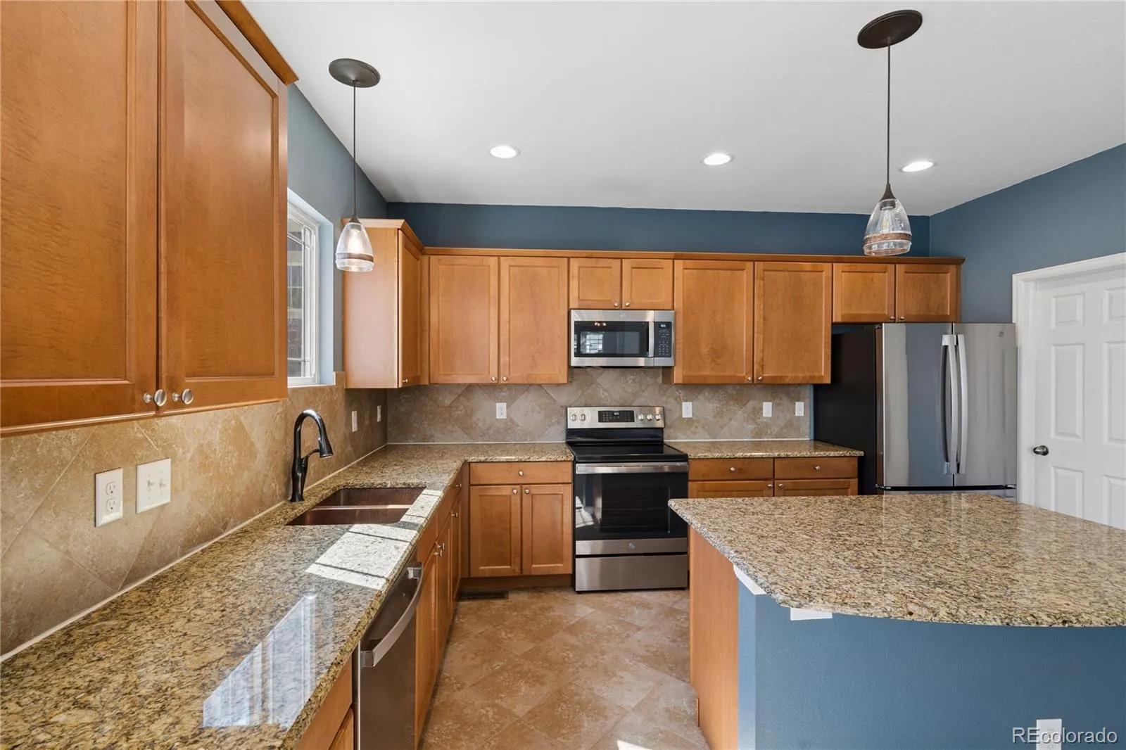 Beautifully updated 2-story home featuring 3 bedrooms and 3 bathrooms with a functional layout, abundant natural light, and tasteful updates throughout. Right off the entry, you are welcomed by a spacious front office, while the main level flows comfortably through the kitchen, a dedicated dining area, and an inviting living room, creating an ideal setup for both everyday living and entertaining. Expansive windows throughout the home allow for excellent natural light, and the gas fireplace adds warmth and charm to the living room. The kitchen features stainless steel appliances, including a french door refrigerator with a bottom freezer. Rich maple cabinetry, slab granite countertops, and a generously sized center island, creating both style and functionality. The home also features the convenience of main-level laundry. Upstairs you’ll find all 3 bedrooms, including a spacious primary suite with a large walk-in closet and a 5-piece bath, along with a huge loft that offers a wide range of use options. Ceiling fans in the bedrooms add comfort and function, and the home has been thoughtfully updated with new exterior paint, exterior siding improvements, fresh rock landscaping, new carpet, updated interior paint, updated flooring, elegant accent walls, and stylish light fixtures that give the home character and a more custom feel. Additional highlights include lovely blinds and window treatments, fenced backyard, patio space, and dual-zone heating and cooling with two central A/C units. The full unfinished basement offers excellent future potential with high ceilings and plumbing rough-ins already in place for a future bathroom. Located in the Cherry Creek School District and just minutes from parks, community pools, sport court, and Eaglecrest High School. With its custom feel, tasteful updates, and unmistakable character, this home leaves an impression that sets it apart.