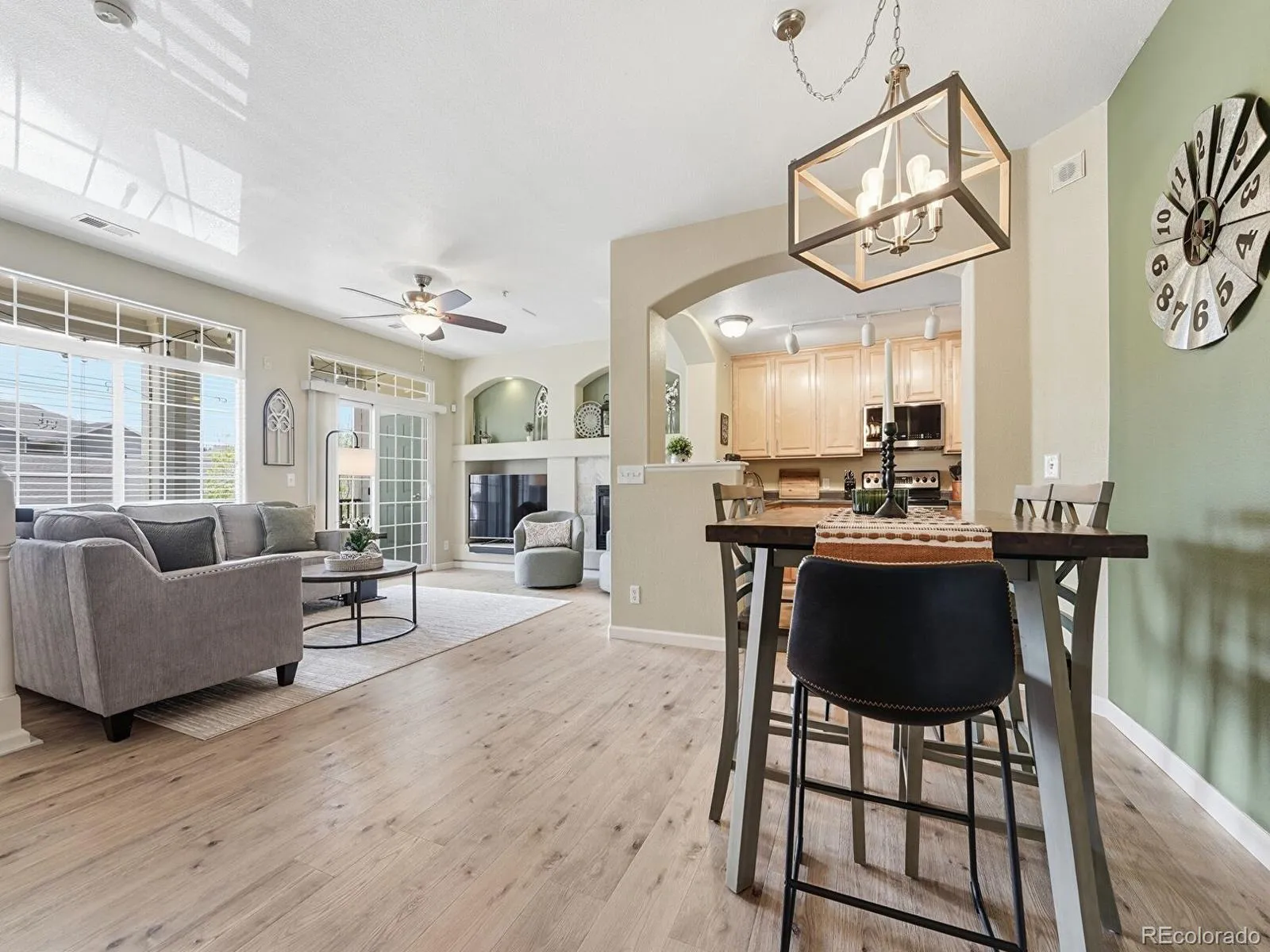 Welcome to low-maintenance living with high-end appeal in this stylish condo, situated in the heart of beautiful Castle Rock. This thoughtfully designed and updated 2-bedroom,2-bath condo offers comfort, convenience, and is close to scenic surroundings—perfect for first-time buyers, down sizers, investors, or anyone seeking a lock-and-leave lifestyle. Step inside to an inviting open floor plan with abundant natural light and a seamless flow between living, dining, and kitchen areas. The kitchen features a stainless steel appliance package with newer dishwasher, refrigerator, and microwave. The 42″ cabinets feature new hardware, along with a walk-in pantry. A breakfast bar/pass through round out the kitchen making it ideal for casual meals or entertaining guests. The living room offers a cozy fireplace for ambiance on those chilly nights, and opens to a private balcony where you can unwind. Heading up the beautifully refinished stairs you will find a spacious Primary Suite with plantation shutters, a walk-in closet, and an additional closet for your storage needs, a private en-suite bath with double sinks, jetted tub/shower, and a separate water closet. The second bedroom with plantation shutters offers flexibility for guests, a home office, or hobbies. A second full bathroom, large hall closet, and laundry room add to the home’s everyday convenience.