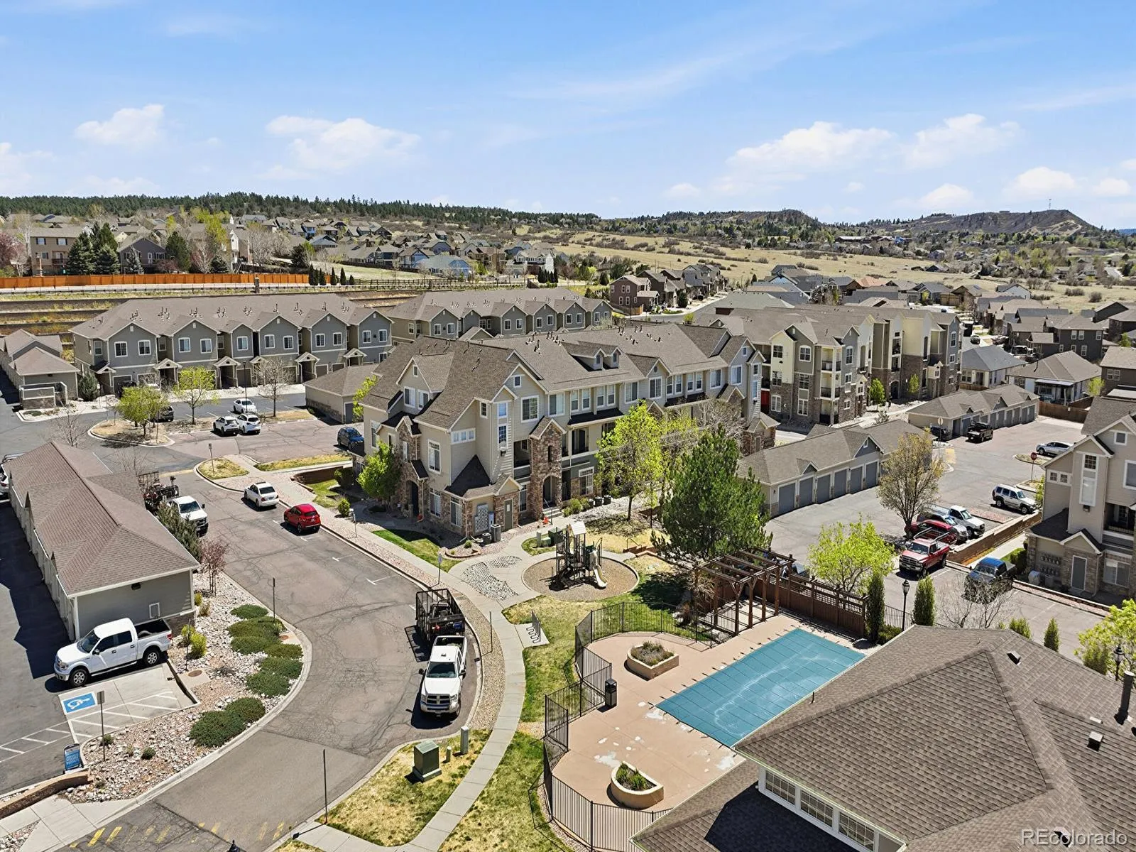 Residents enjoy access to community amenities a clubhouse, fitness center, swimming pool, hot tub, and playground. Located just minutes from downtown Castle Rock, you’ll have easy access to local shops, dining, groceries, parks, and trails, as well as quick connections to I-25 for commuting to Denver or CO Springs. This unit comes with many upgrades which include waterproof laminate wood flooring throughout, all new baseboards, fresh interior paint, new bathroom sinks, faucets, light fixtures, Kohler toilets, refinished stairs, Nest Thermostat, front door-keyless entry, and new garage door opener.