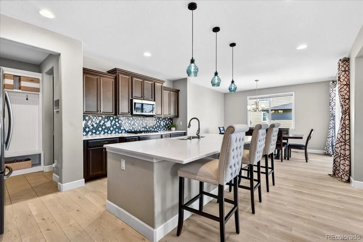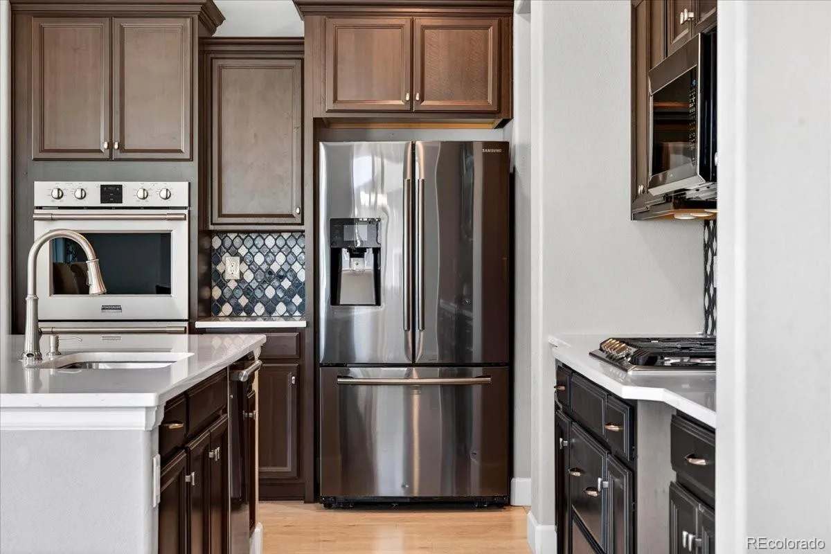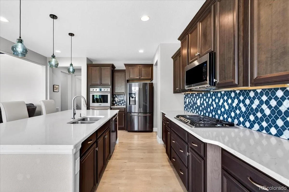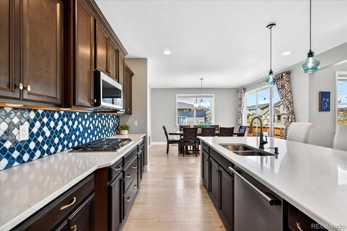 You’ve also got solar already in place and dual furnaces with A/C, so the efficiency side is covered too. Location-wise, you’re about 15 minutes to DIA and just a couple blocks from the Buffalo Run Golf Course and practice facility.