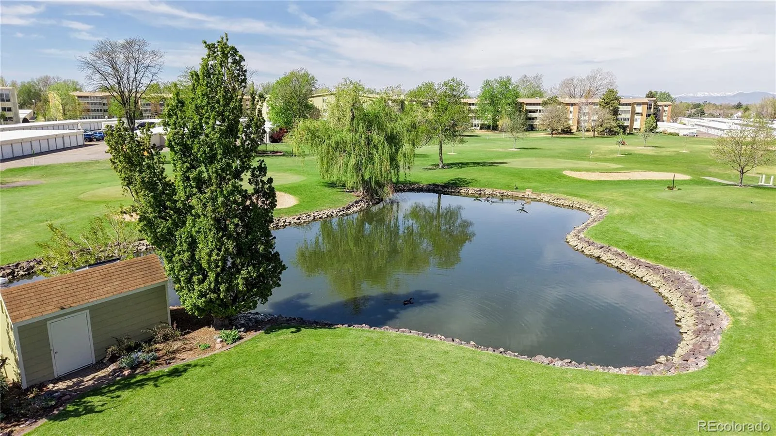 GOLF COURSE VIEWS from your penthouse condo! No peek-a-boo views here — every window can see the golf course. This unit has the vaulted ceilings, a prime location next to the recreation facilities and restaurant AND has been updated throughout. The kitchen cabinets are high-end maple with quartz countertops and newer stainless appliances. The lanai is enclosed so you can enjoy the views without the nuisance of wind or bugs. The unit has a separate storage unit on the floor for items you might not need every day and the building has coin-op washer and dryers that you can use per the building laundry schedule. Also, you never need to scrape snow off your car with the detached garage space. The HOA fees INCLUDES property taxes, insurance and most utilities so you only have to pay for your personal property (HO6) insurance, electric usage and your phone/internet/cable costs. Windsor Gardens is the ultimate in 55+ active senior living with a recreation facility, public golf course, fitness classes, RV parking and nearby Highline Canal trails. You can be busy or relax however you choose! Check out the additional marketing collateral here: https://www.v6d.com/bhj