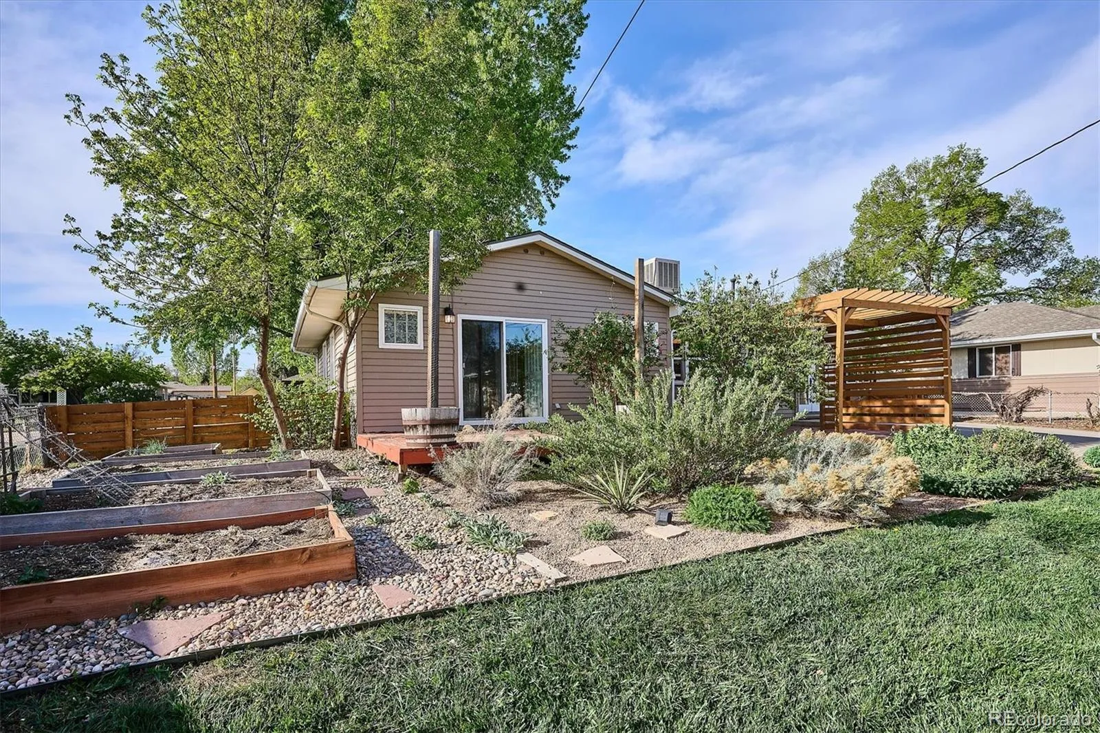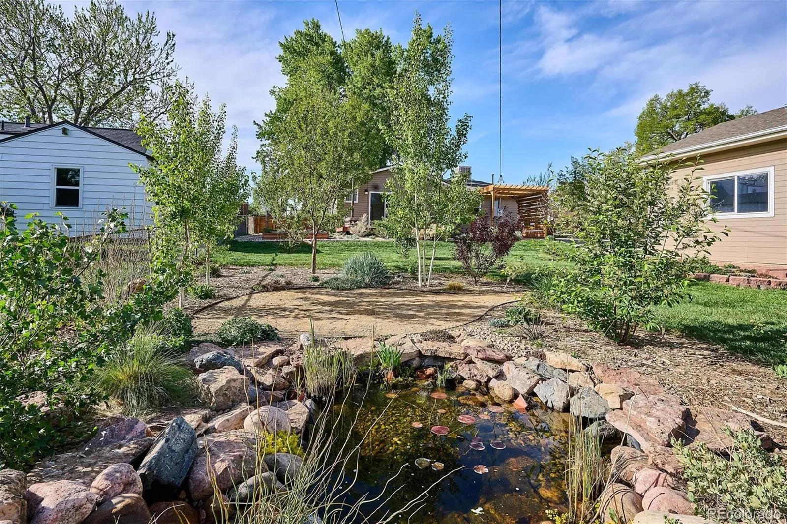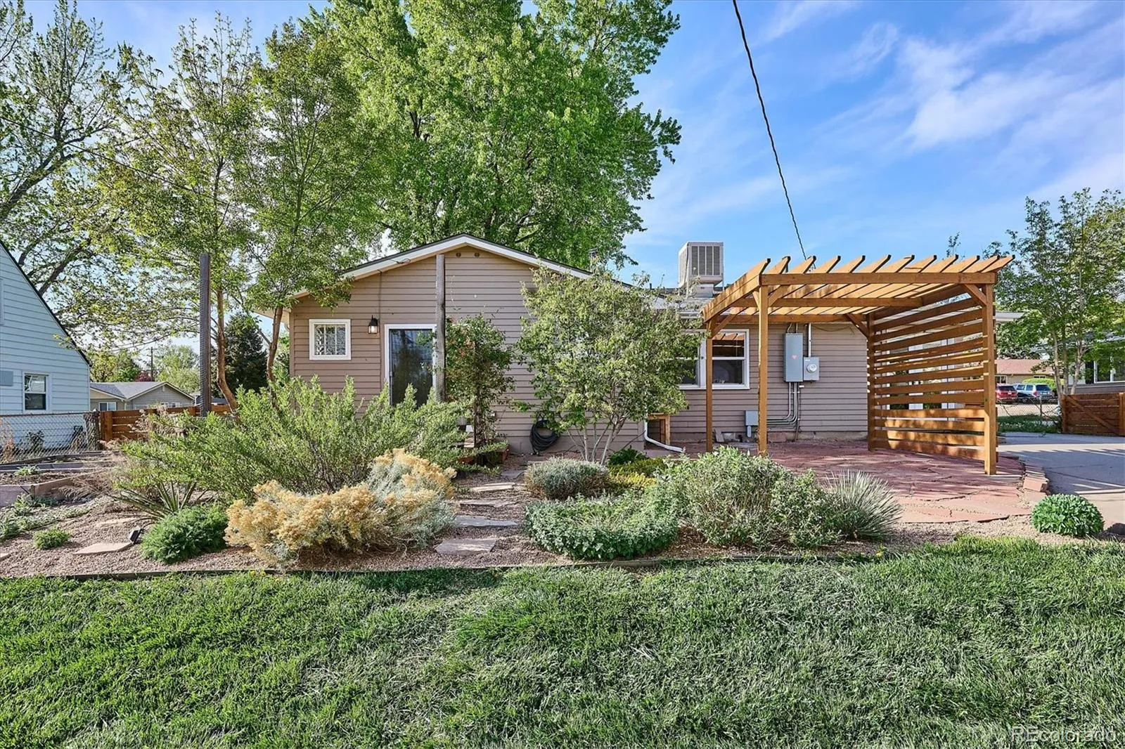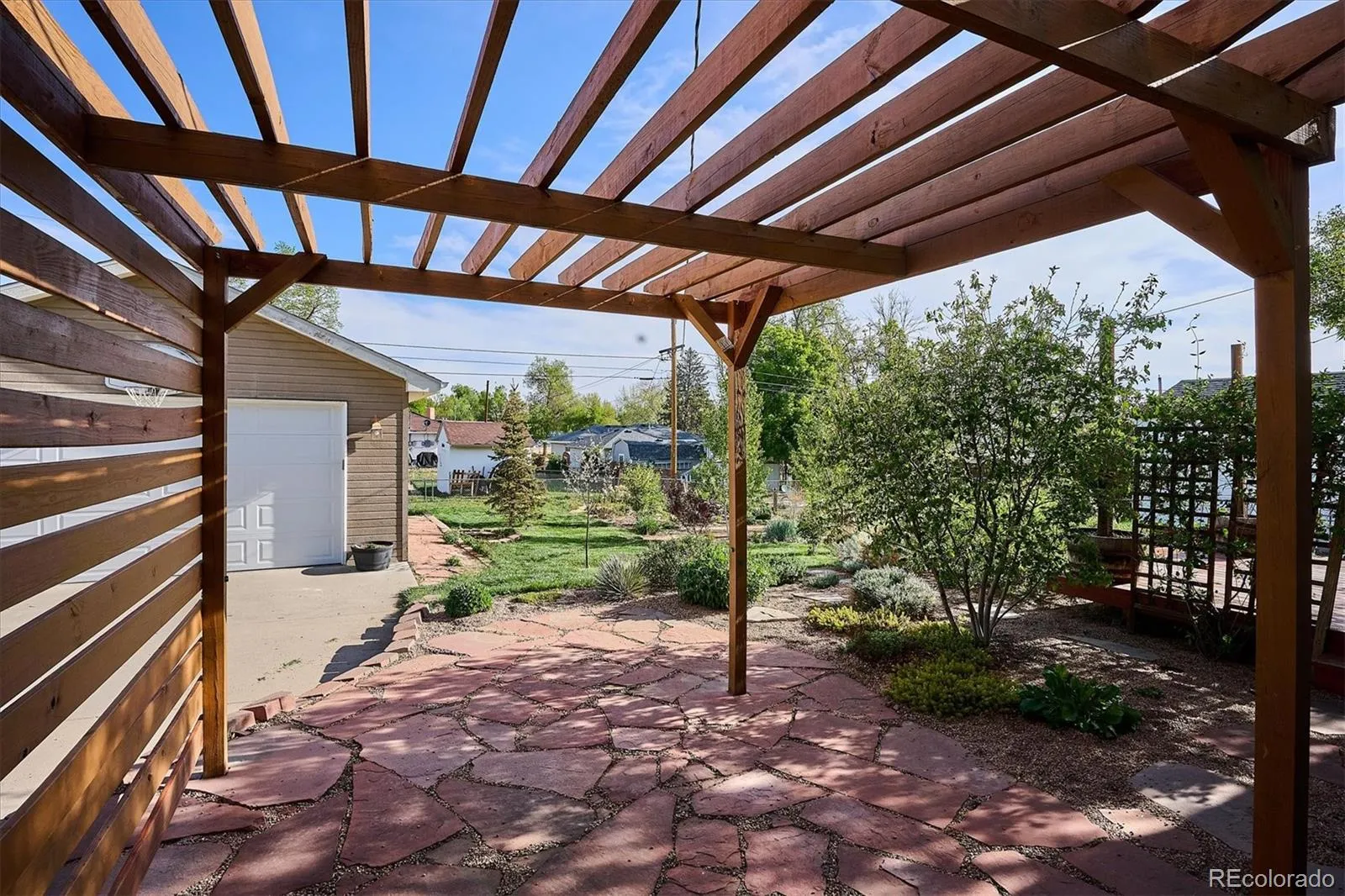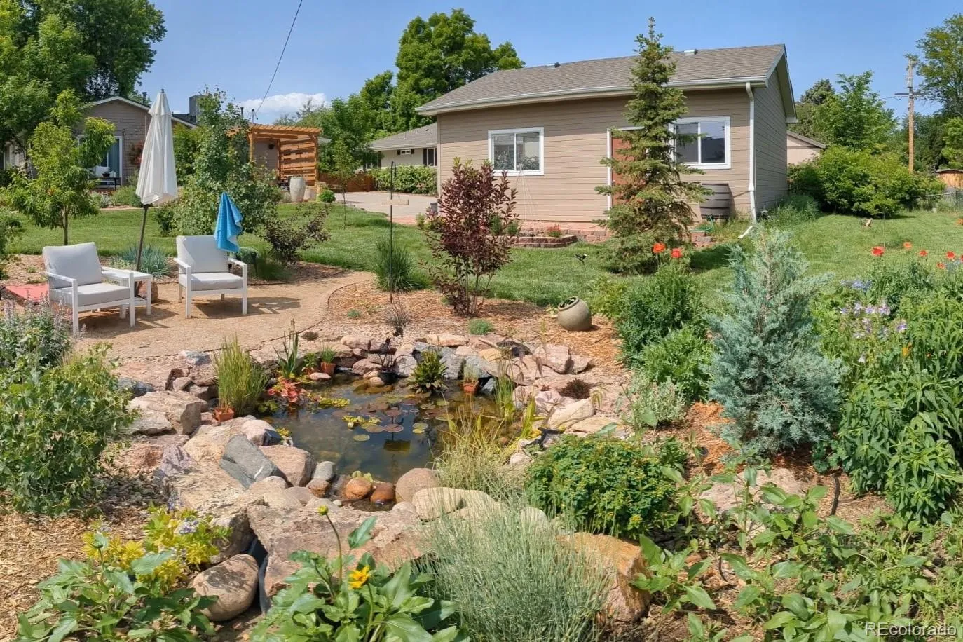 Gorgeous bungalow in the heart of sought-after Wheat Ridge – This beautifully renovated home offers a fantastic, functional floor plan paired with timeless character and beautiful finishes throughout. Gleaming hardwood floors span the entire main level, complemented by crown molding, smooth trowel-textured walls, and an abundance of natural light from large windows in every room. The spacious primary bedroom is a true retreat, featuring dual windows and a sliding glass door that opens to a private deck—perfect for morning coffee or evening relaxation. The updated kitchen is ideal for both everyday living and entertaining, complete with a gas range, ample cabinetry, and newer appliances. Enjoy gathering in the bright dining and great room, where expansive windows and atrium doors seamlessly connect indoor and outdoor living. Secondary bedrooms are generously sized and filled with natural light, while the beautifully updated bathroom features thoughtful finishes. Step outside to a backyard oasis, featuring a deck off the primary suite, a beautiful flagstone patio, custom water feature, garden beds, and mature landscaping. The oversized two-car garage and extended driveway provide plenty of parking and storage. Additional peace of mind with electrical panel, garage door, and appliances within the last year. With fantastic curb appeal this home truly has it all. Located in one of Wheat Ridge’s most desirable and rapidly growing pockets, just minutes from Tennyson Street, the Highlands, and easy access to I-70, Denver, and Golden