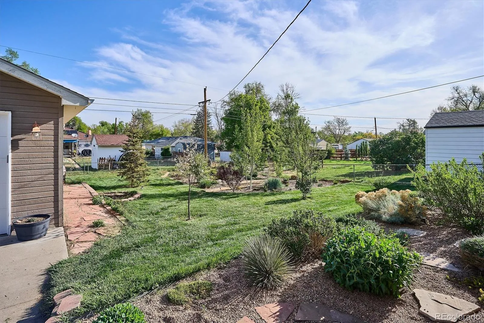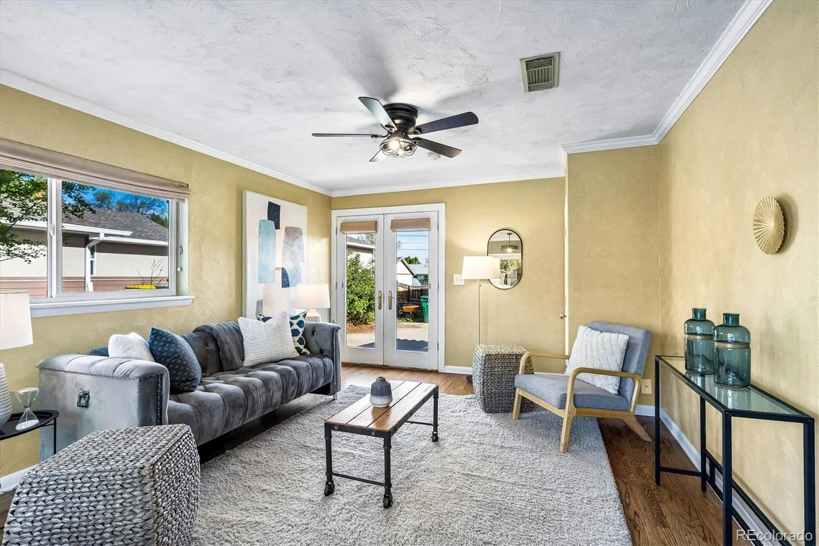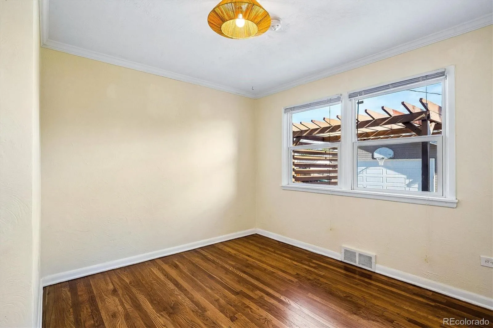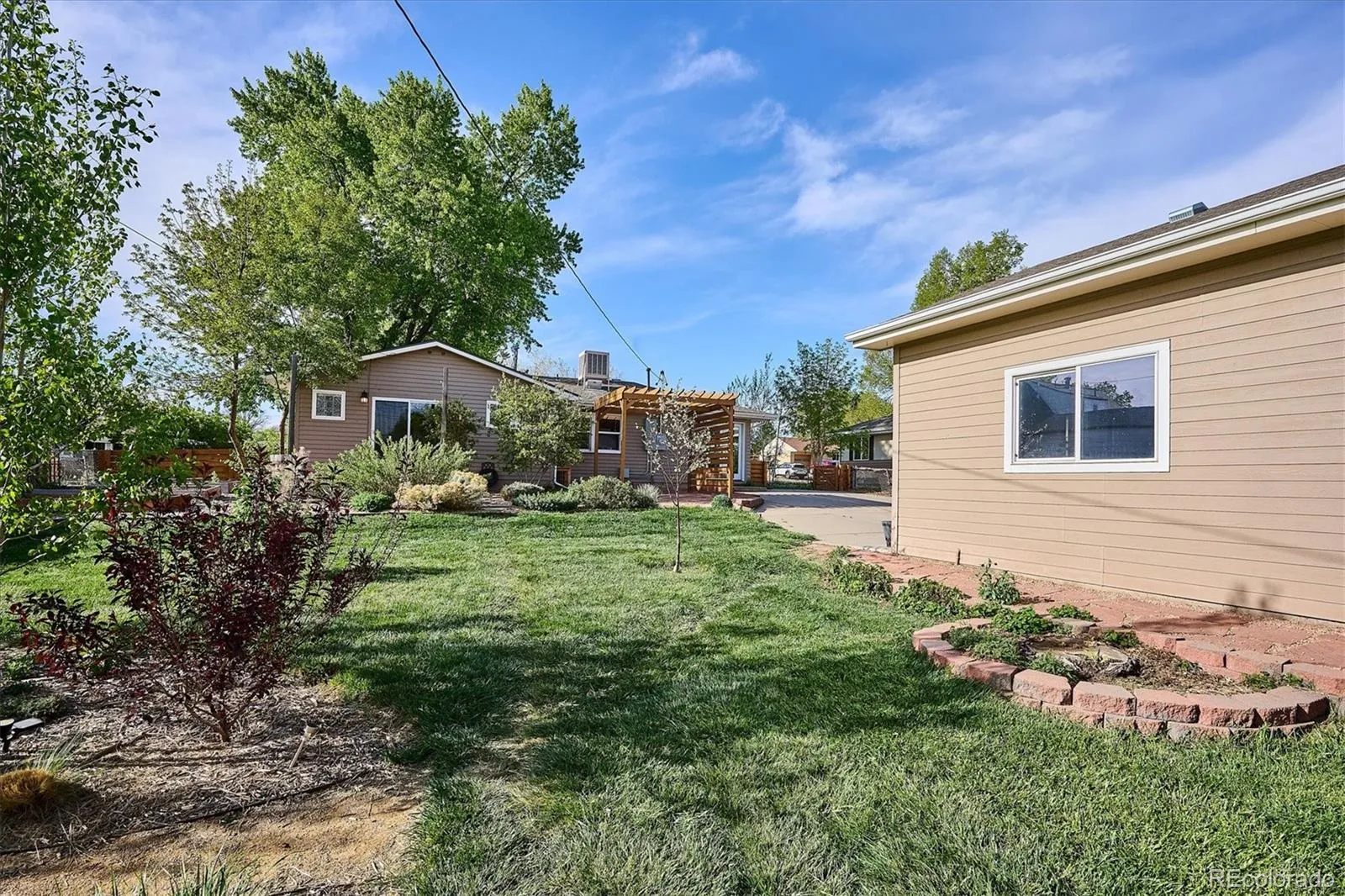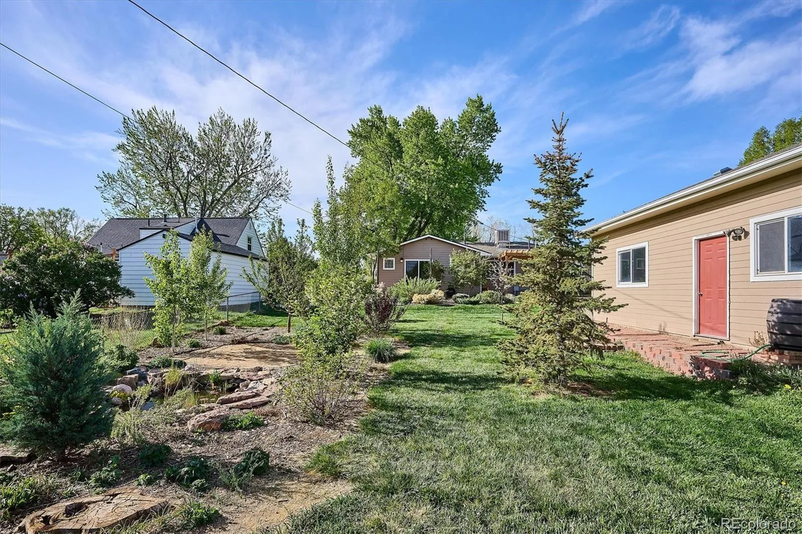 Gorgeous bungalow in the heart of sought-after Wheat Ridge – This beautifully renovated home offers a fantastic, functional floor plan paired with timeless character and beautiful finishes throughout. Gleaming hardwood floors span the entire main level, complemented by crown molding, smooth trowel-textured walls, and an abundance of natural light from large windows in every room. The spacious primary bedroom is a true retreat, featuring dual windows and a sliding glass door that opens to a private deck—perfect for morning coffee or evening relaxation. The updated kitchen is ideal for both everyday living and entertaining, complete with a gas range, ample cabinetry, and newer appliances. Enjoy gathering in the bright dining and great room, where expansive windows and atrium doors seamlessly connect indoor and outdoor living. Secondary bedrooms are generously sized and filled with natural light, while the beautifully updated bathroom features thoughtful finishes. Step outside to a backyard oasis, featuring a deck off the primary suite, a beautiful flagstone patio, custom water feature, garden beds, and mature landscaping. The oversized two-car garage and extended driveway provide plenty of parking and storage. Additional peace of mind with electrical panel, garage door, and appliances within the last year. With fantastic curb appeal this home truly has it all. Located in one of Wheat Ridge’s most desirable and rapidly growing pockets, just minutes from Tennyson Street, the Highlands, and easy access to I-70, Denver, and Golden