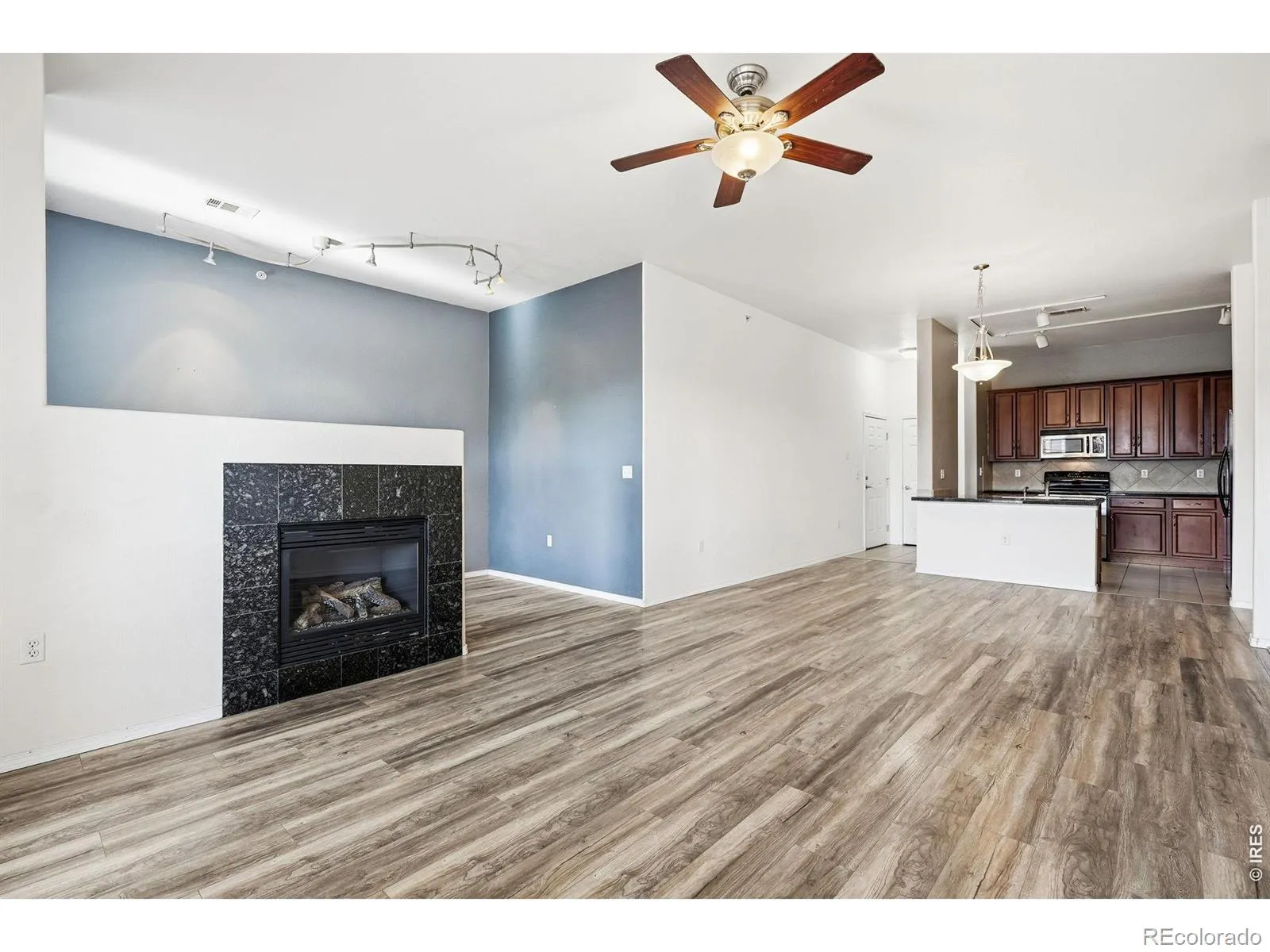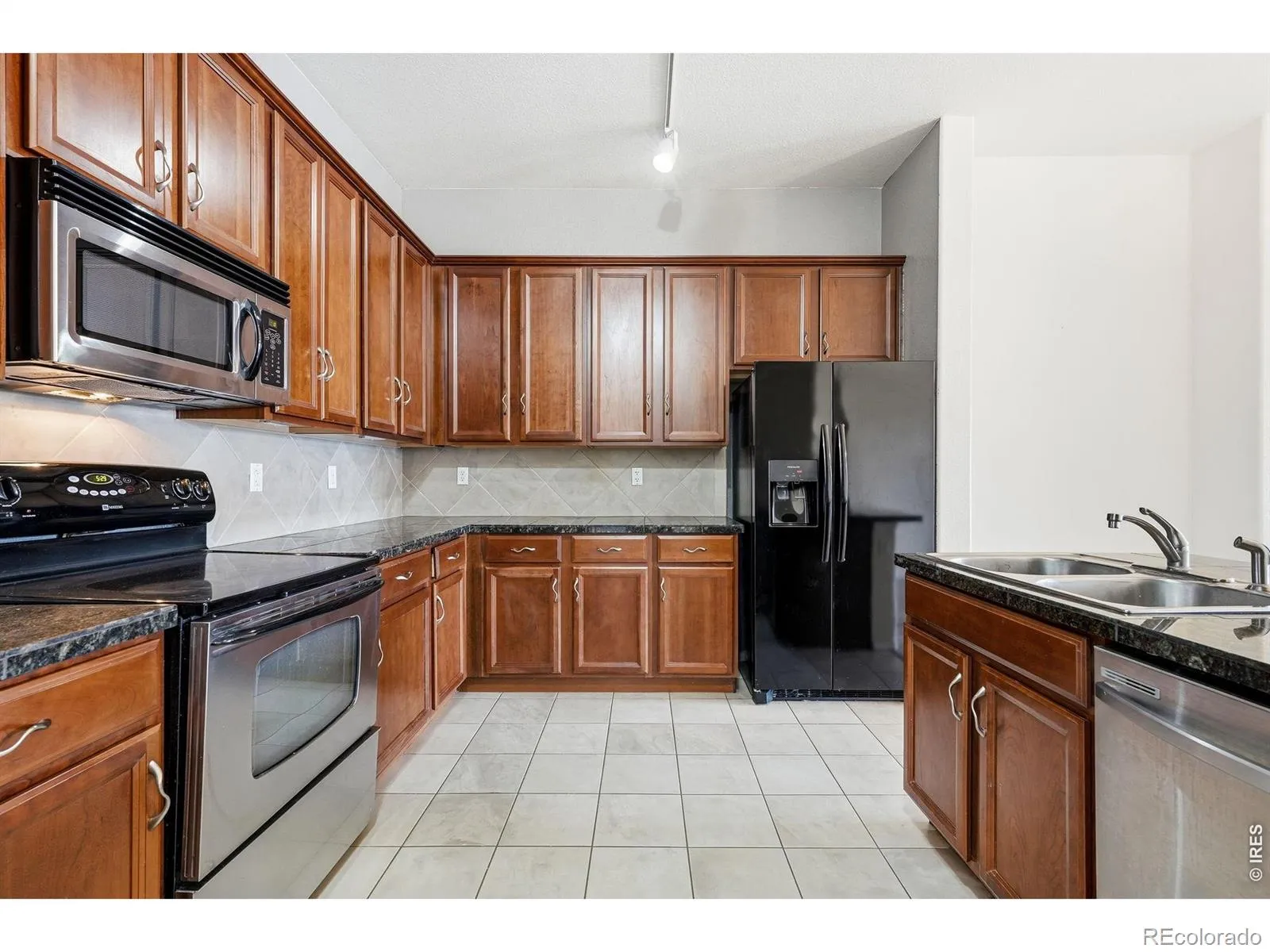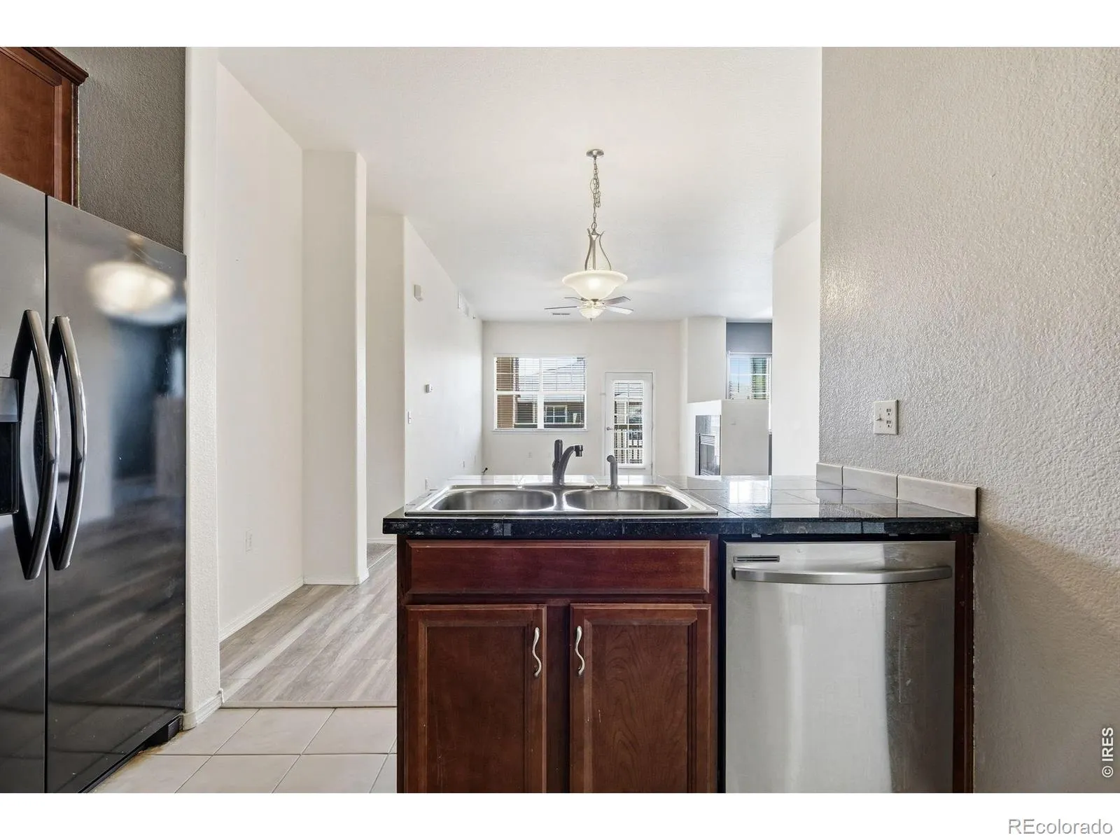Experience the perfect blend of modern elegance and effortless comfort in this beautifully updated third-floor condo. Defined by soaring vaulted ceilings and expansive windows, the home is bathed in natural light that highlights the sophisticated luxury vinyl plank flooring and nine-foot ceilings throughout the open-concept great room. A cozy glass-enclosed fireplace serves as the heart of the living space, while a versatile bonus nook offers the ideal footprint for a professional home office or a quiet reading retreat. The kitchen is a functional masterpiece, featuring a spacious peninsula, stylish cabinetry, and granite tile countertops complemented by modern tile flooring and newer appliances. This culinary space flows naturally into the living areas, making it as suited for quiet evenings as it is for social gatherings. Transition seamlessly to the private patio, which serves as a serene outdoor escape with direct access to the scenic Happy Canyon Trail system for immediate immersion in nature. The primary suite functions as a private sanctuary, complete with a ceiling fan, an oversized walk-in closet, and a meticulously updated five-piece en-suite bath. Additional bedrooms offer remarkable flexibility to suit your specific lifestyle needs, supported by a full secondary bathroom and the convenience of in-unit laundry. Set within a community defined by its attractive brick and stone architecture, the exterior environment features manicured landscaping and communal amenities including BBQ areas and covered gazebos. This prime location provides unparalleled access to the Denver Tech Center, Inverness, and the light rail, ensuring a shortened commute while keeping you moments away from the Parker Center for the Performing Arts and premier local dining. This is a rare opportunity to secure a move-in-ready residence in a highly sought-after enclave.