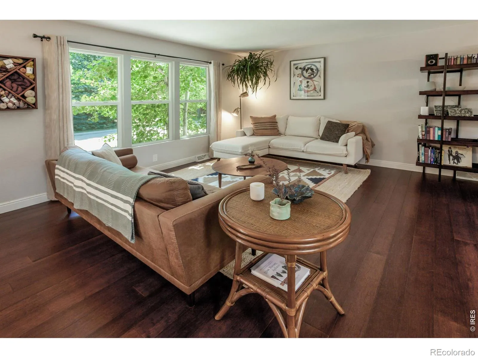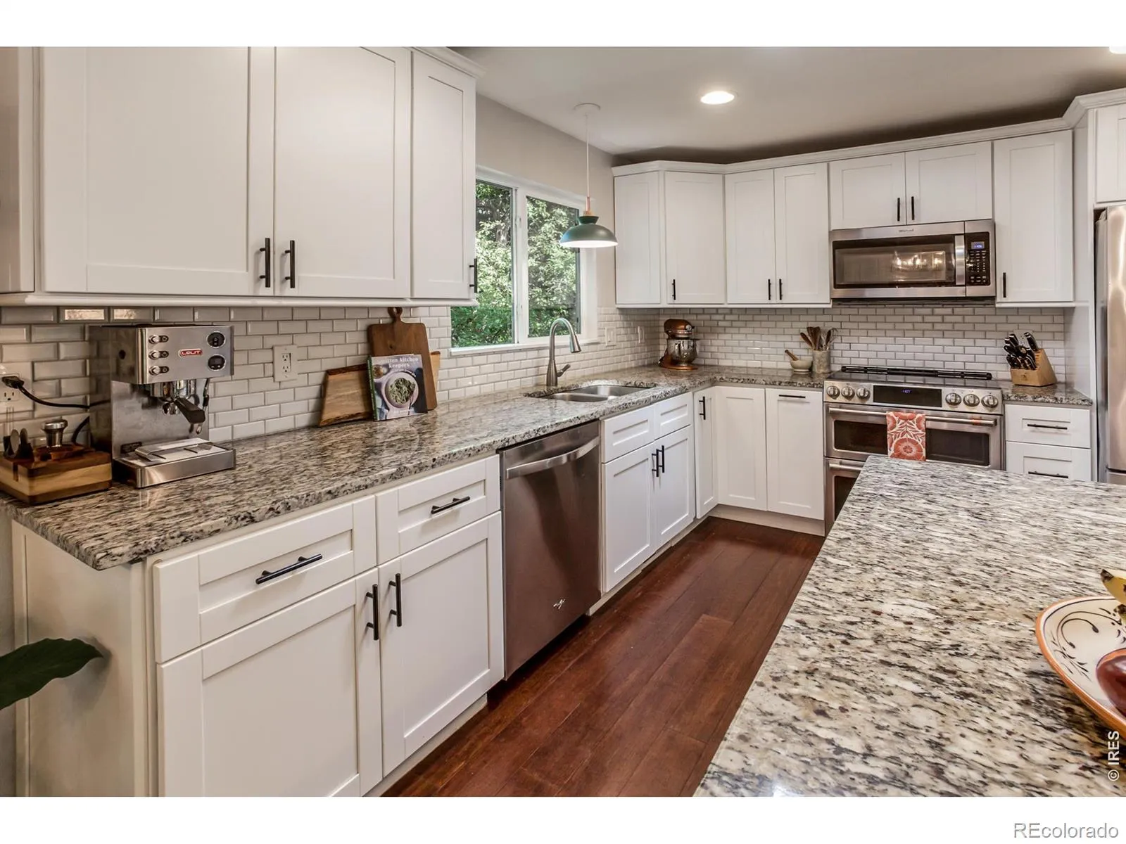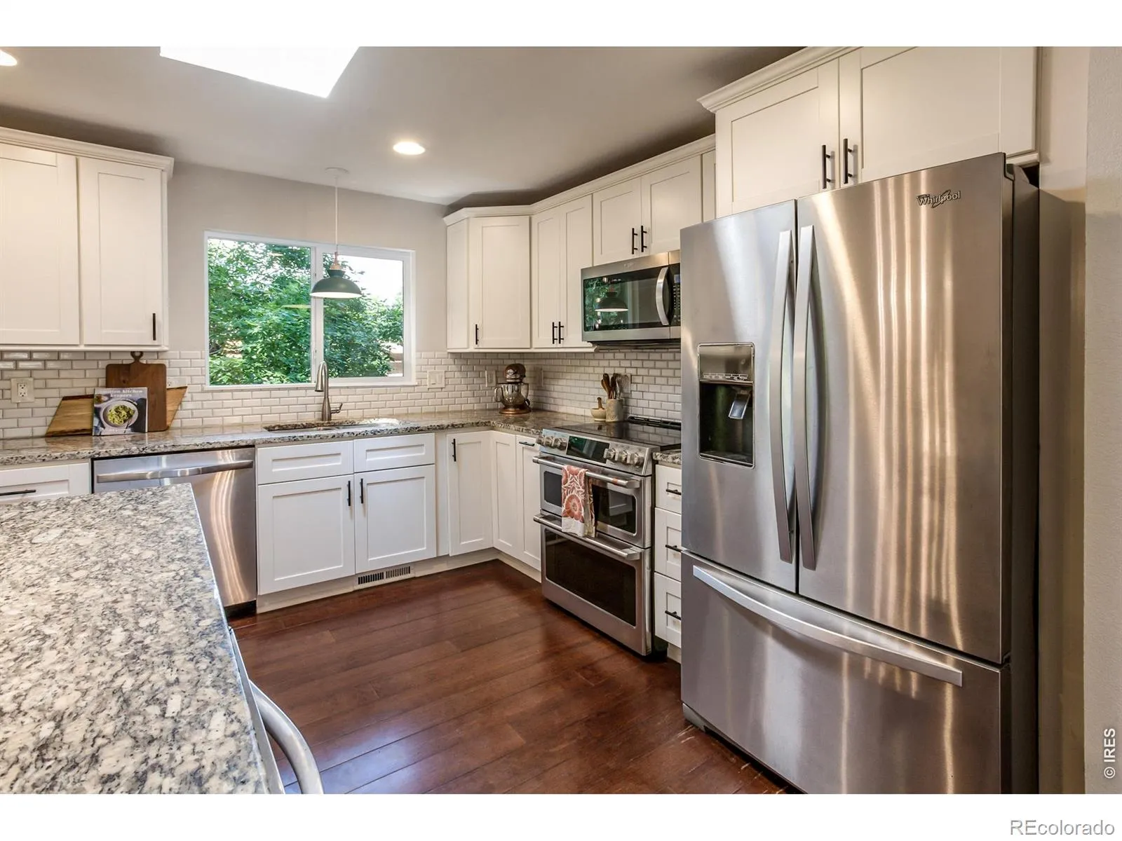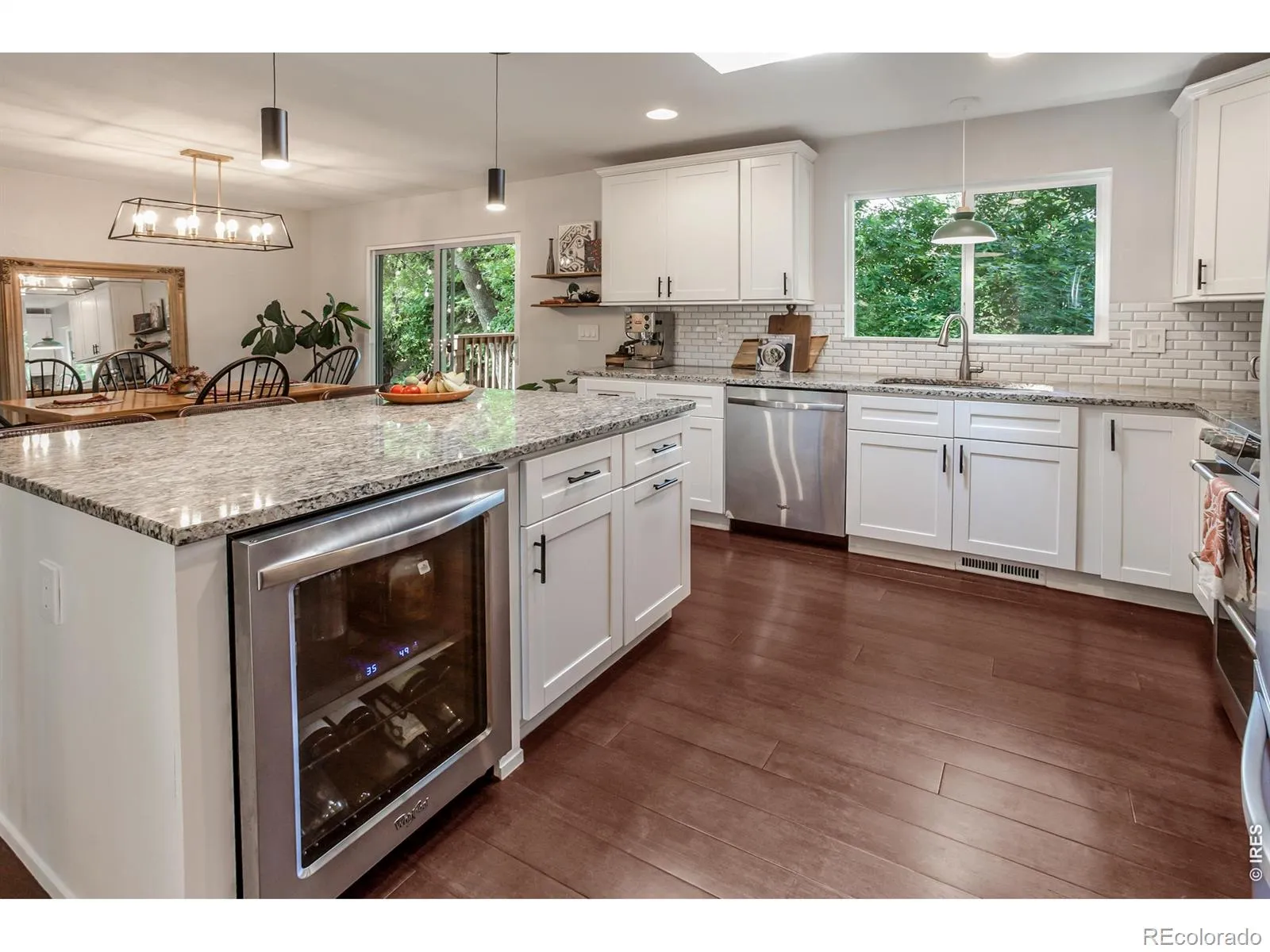 OPEN HOUSE SATURDAY! Welcome to 1413 Constitution Ave – a remodeled and upgraded Fort Collins home featuring professionally updated insulation for exceptional energy efficiency, keeping you comfortable year-round while helping reduce utility costs. Situated in a park-like setting, and offering 2,013 square feet of thoughtfully improved living space, this home includes 4 bedrooms, 2 bathrooms, and two spacious living areas. The main level has been beautifully remodeled and reconfigured into an open-concept layout, seamlessly connecting the kitchen, dining, and living areas-perfect for everyday living and entertaining. Beautiful wood floors run throughout the level, adding warmth and style. The kitchen shines with granite countertops, quality cabinetry, stainless steel appliances, and outstanding storage, including a pantry. The main-level bathroom has been fully remodeled with modern tile and fixtures, and the bedrooms are filled with natural light. The lower level offers a large second living area with a cozy wood-burning fireplace, access to the attached 2-car garage, a laundry area with included washer and dryer, and two additional guest rooms. The downstairs bathroom has also been remodeled, providing updated finishes and added convenience for guests or extended living. Outside, the property continues to impress. The front yard is a gardener’s paradise with multiple irrigated raised beds that enhance curb appeal while producing fresh food. The backyard is a private, wooded retreat-fully fenced, shaded, and backing to a canal. Enjoy the deck, flagstone patio, and lush lawn, plus berry bushes including raspberries, strawberries, and blackberries. Just a quick bike ride to CSU and Old Town, close to the foothills and Horsetooth Reservoir, with easy access to Red Fox Meadows Natural Area, Avery Park, City Park, and Rolland Moore Park. This move-in ready hand the perfect blend of updates, efficiency, and location. Click on the Video/Virtual Tour links for more info.