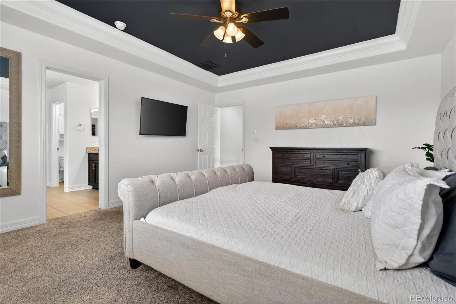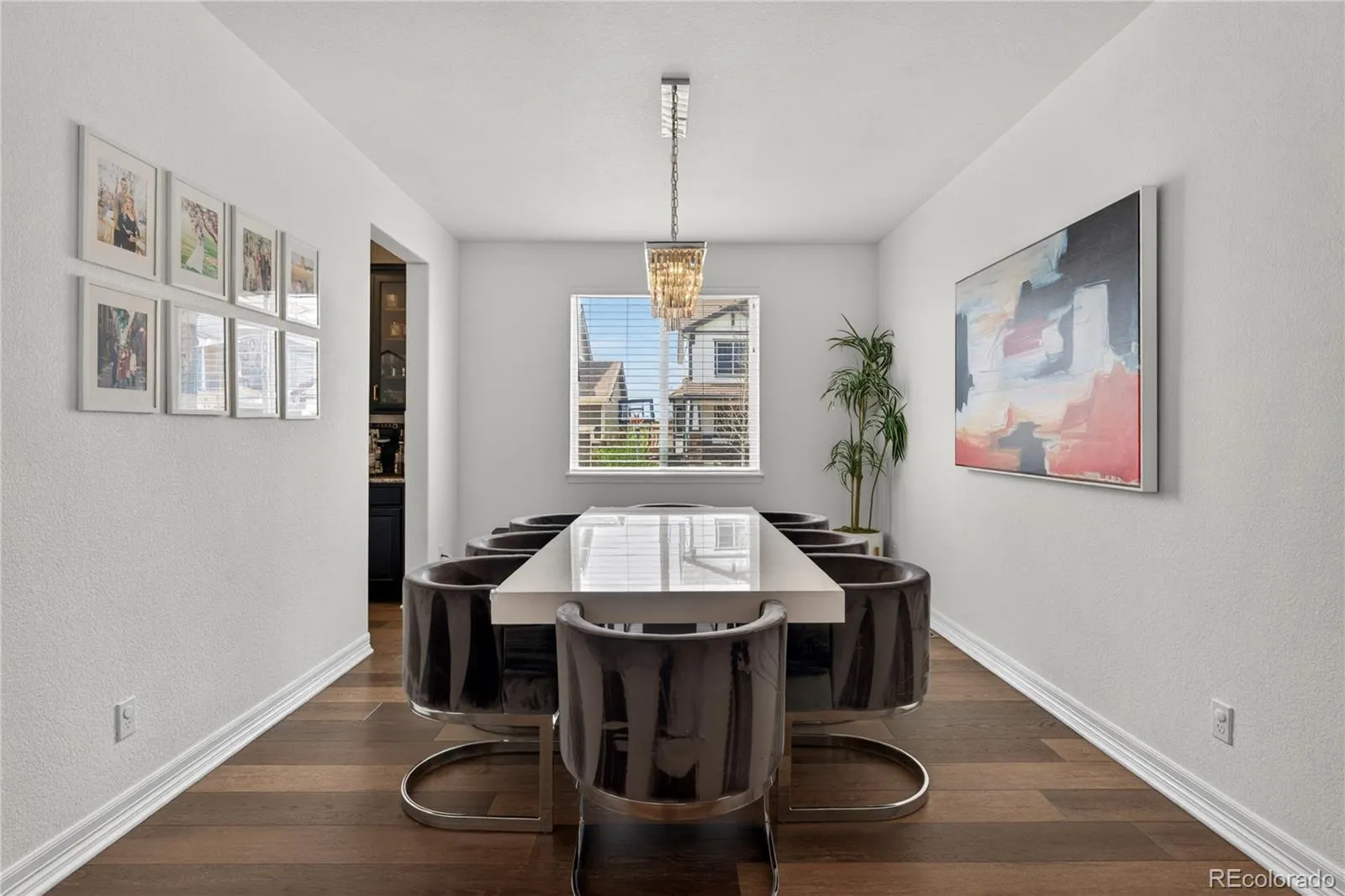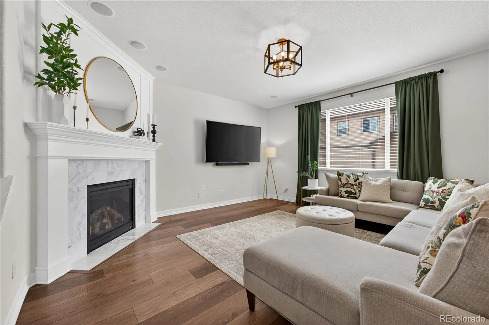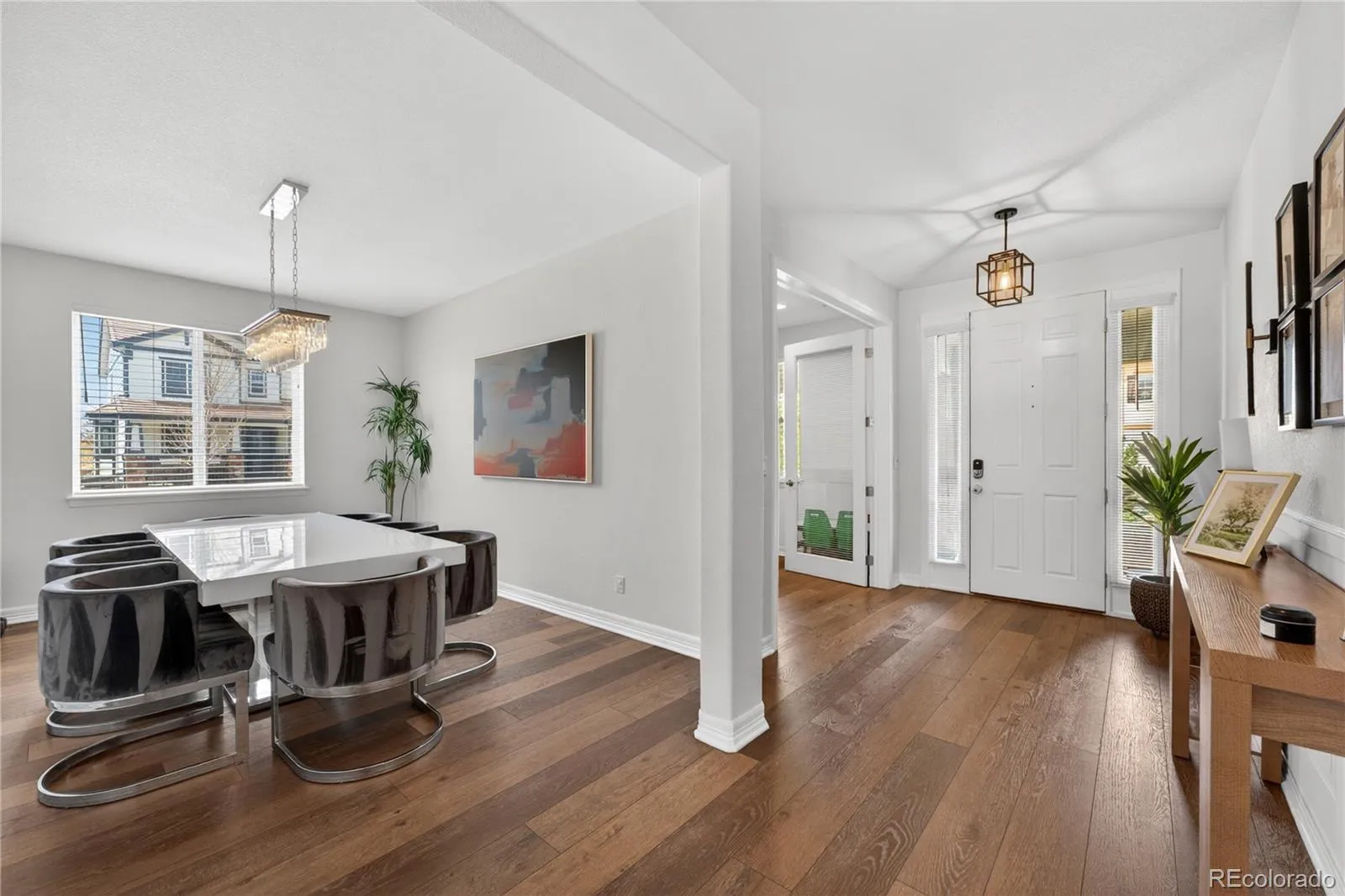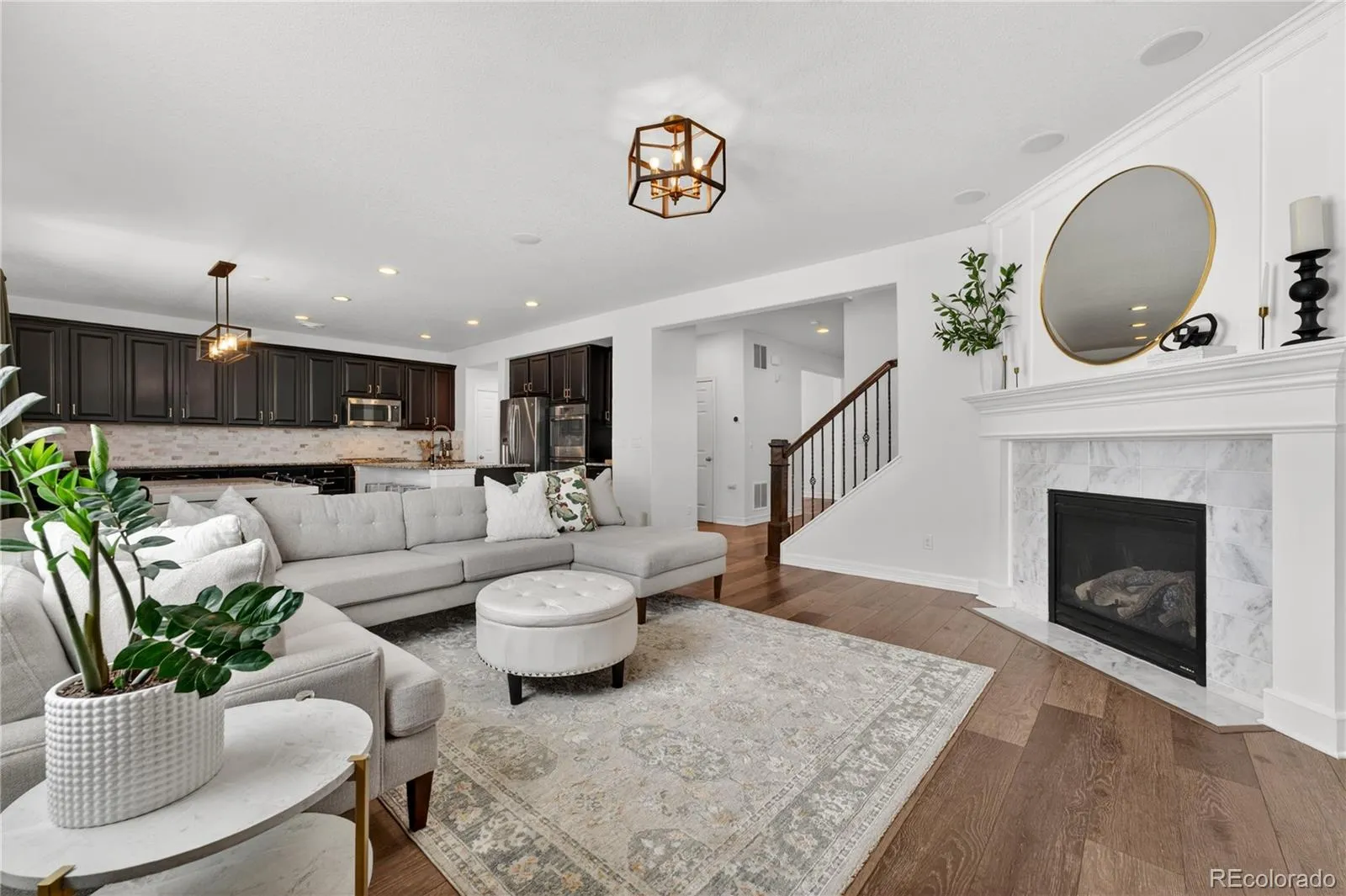 Fantastic, meticulously maintained home in the desirable Meridian Village community! Nestled on a quiet, low-traffic lot with friendly neighbors, this Craftsman-style residence offers charm, space, and everyday comfort. A classic covered front porch creates a warm welcome into a bright, open layout featuring easy-maintenance laminate wood flooring throughout the main living areas. The spacious living room flows seamlessly into the eat-in kitchen, complete with abundant warm wood cabinetry, granite countertops, stainless steel appliances including a 5-burner cooktop, a large center island with seating, and a convenient butler’s pantry. A cozy corner fireplace adds warmth and character, while the formal dining room is perfect for hosting gatherings. A main-level office provides an ideal work-from-home setup. Upstairs, you’ll find four generously sized bedrooms, including a relaxing primary suite with tray ceiling, a 5-piece en-suite bath, and an oversized walk-in closet. Convenient upper-level laundry adds ease to daily living. The finished walk-out basement expands your living space with a large family room, game area, an additional bedroom, and a nearby bathroom—perfect for guests. Enjoy Colorado living year-round with a large covered deck and lower-level covered patio, ideal for dining and relaxing in any weather. The yard is designed for low maintenance and includes garden boxes ready for spring planting. Recent updates include new carpet (2022), a beautifully remodeled basement bathroom (2024), upgraded lighting throughout key living spaces, new kitchen sink and cabinet hardware (2024), stylish backsplash update (2025), and fresh paint. Residents enjoy access to great HOA amenities including a pool, park, playgrounds, and walking paths just steps away. Conveniently located near E-470 and Parker Road for easy commuting, and served by highly regarded Douglas County Schools. Move-in ready and not to be missed!