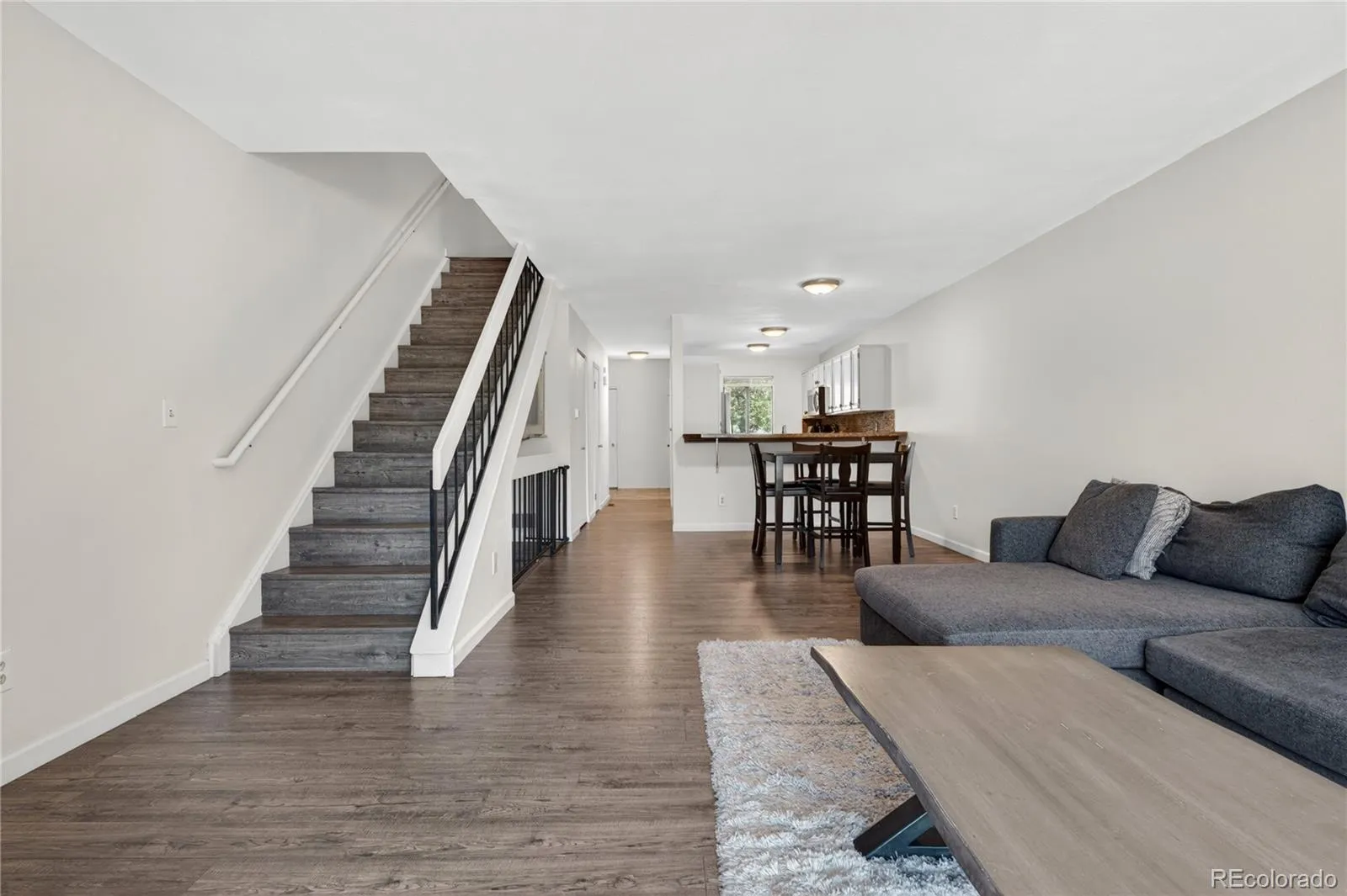 Rare, spacious 3 bed/3 bath townhome in the desirable Tall Pines community, perfectly positioned backing to a beautiful neighborhood green space. Enjoy a vibrant, dog-friendly setting with expansive grassy areas just outside your door—ideal for soaking up Colorado’s springtime and year-round outdoor living. Inside, the open kitchen features crisp white cabinetry, sleek countertops, and a breakfast bar with seating, flowing seamlessly into the dining area for easy everyday living and entertaining. The cozy living room is anchored by a striking floor-to-ceiling stone fireplace and opens to a private deck overlooking peaceful green space. Upstairs offers two generously sized bedrooms connected by an updated Jack-and-Jill bath, plus the convenience of upper-level laundry. The finished basement expands your options with a large family room—perfect for a media space or home office—along with an additional bedroom and bath ideal for guests. Additional highlights include a 1-car attached garage with storage, guest parking, a newer stove, and a 2-year-old air conditioner. Just minutes to Bear Creek State Park for endless outdoor recreation and with easy access to Hwy 285 for quick mountain getaways, this home offers the perfect blend of comfort, convenience, and Colorado lifestyle.