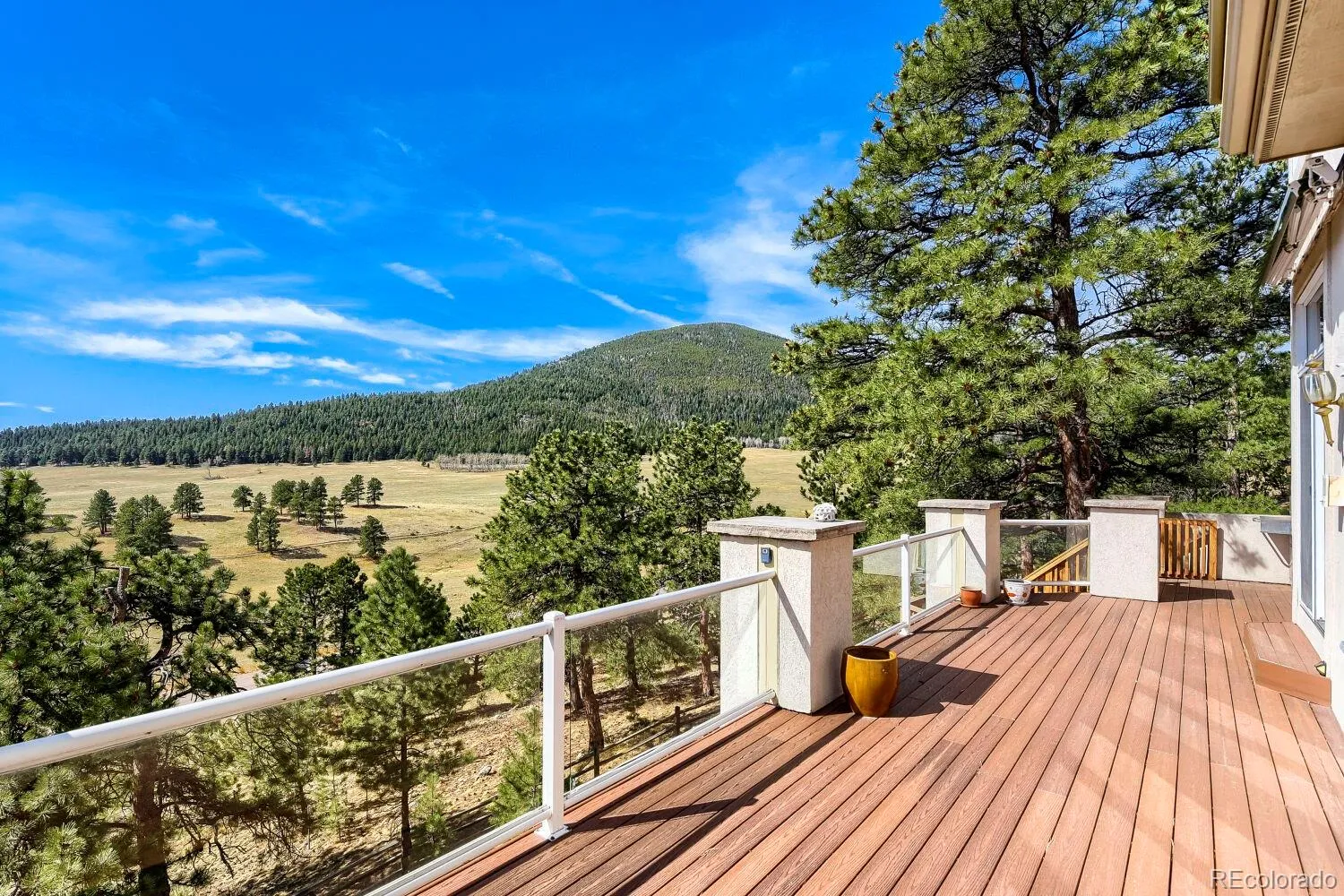 Contemporary mountain home with magnificent views overlooking Elk Meadow and Bergen Peak. Perfectly set in the Promontory at Soda Creek with an open floor plan designed to take in the surrounding landscape. With over 6,500 square feet and a three car garage there is plenty of room to spread out. The kitchen/living room is a wonderful gathering space to entertain or relax. On the upper level is a spacious primary suite with sitting room, full bath and large walk through closet along with three additional bedrooms each with its own private bath. An extra loft area could make a great study area for kids.The walk out basement is ready for fun with a comfortable family room, game area, small bar/refrigerator, and two more bedrooms. There is also a huge 20 x 40 foot utility room for storage or the option to add a workout room, wine cellar, art/craft area, etc. Unbeatable location with access to countless outdoor activities – trails, hiking, biking, fishing, snowshoeing or catch I-70 west to world class skiing. Ideally located away from it all but still minutes to shopping, restaurants, recreation center and only a 30 minute drive to Denver. Comfort, convenience, privacy and an amazing mountain backdrop, this home has it all!
