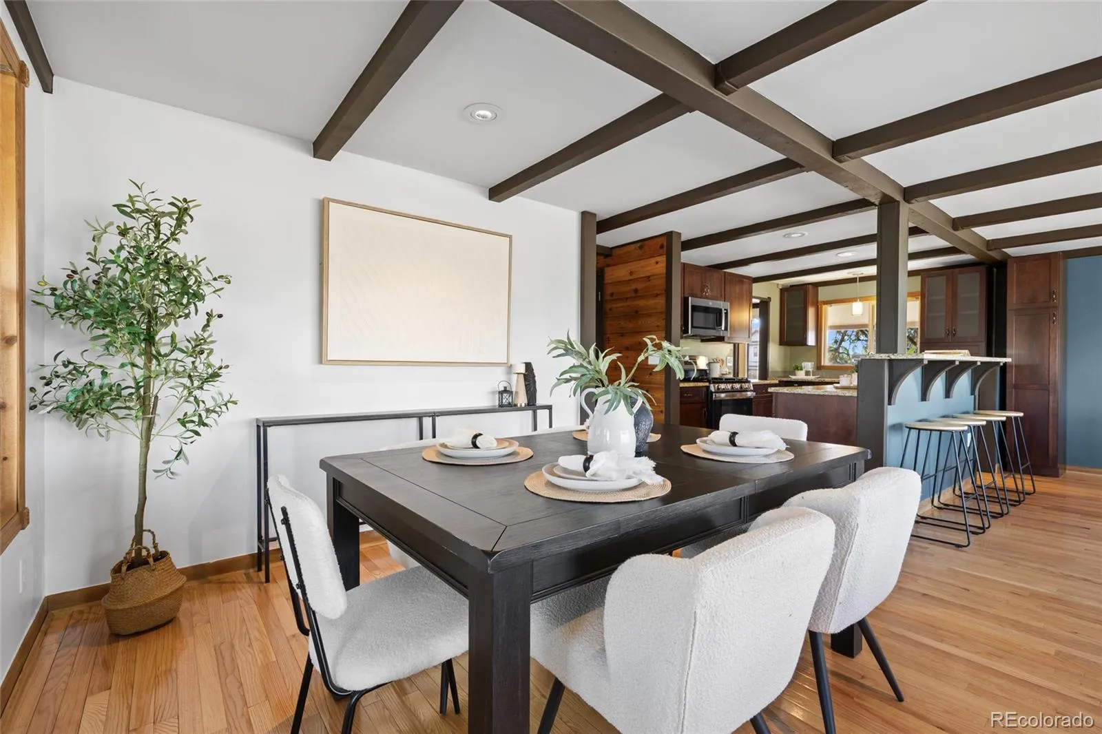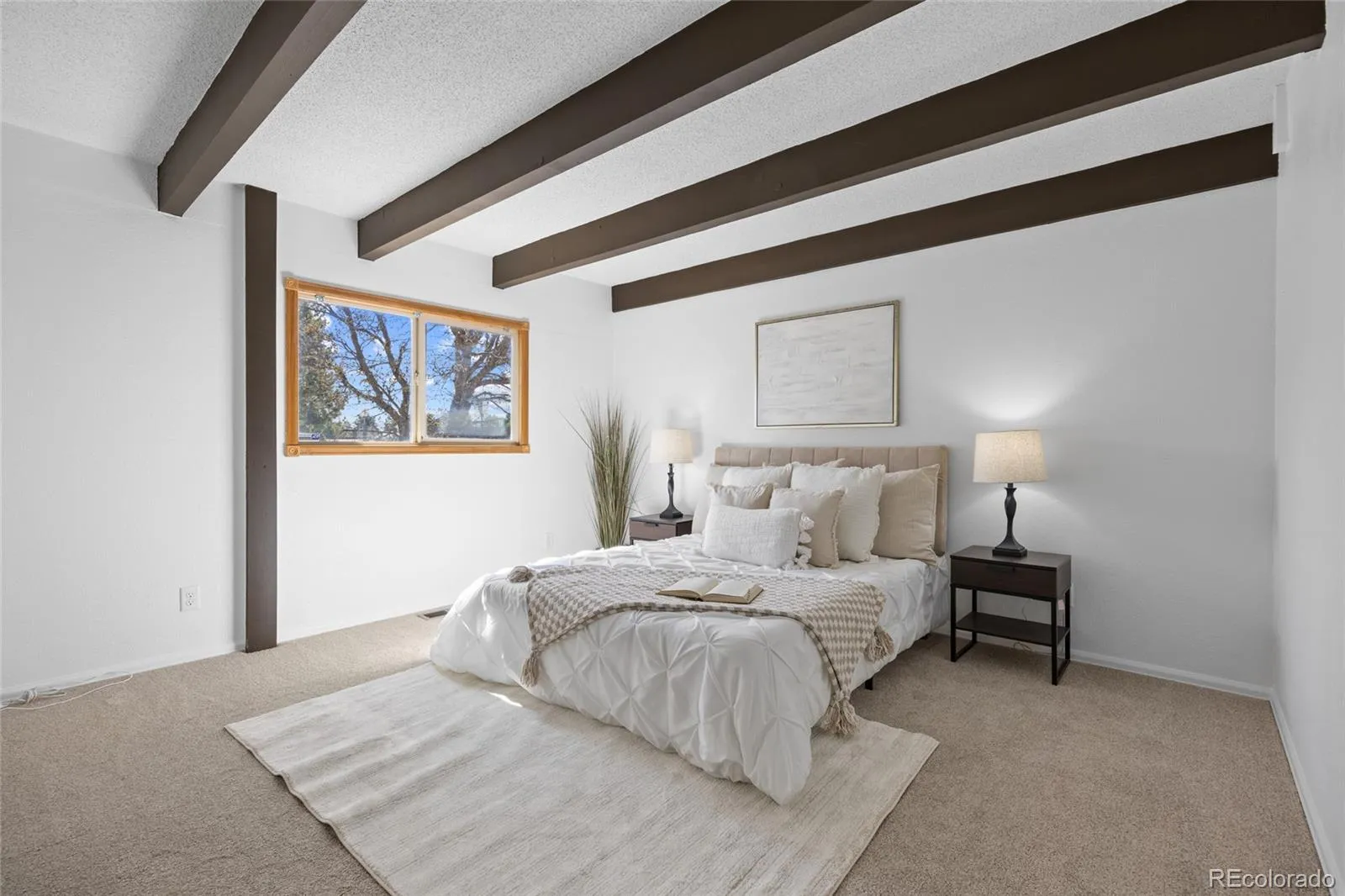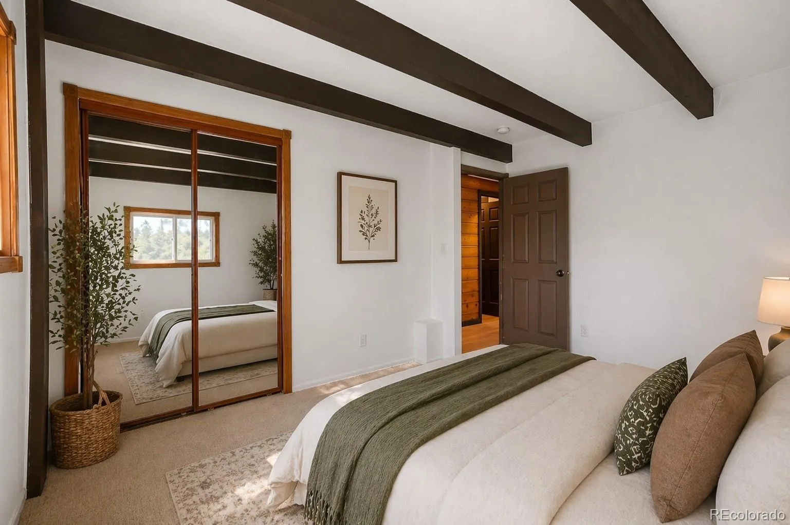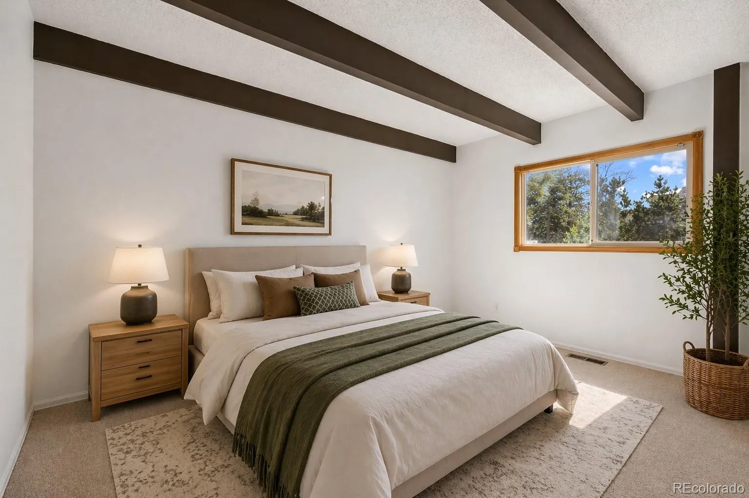 Light-filled great room with exposed beams flows into an updated kitchen with granite countertops, stainless steel appliances, and open layout. Mudroom off kitchen offers added storage and convenient side-yard access. Fresh paint, brand new carpet, refinished floors, updated bathrooms, A/C, and newer roof provide true move-in-ready confidence.