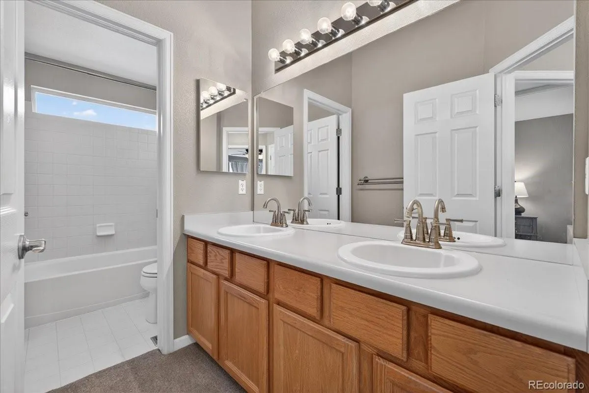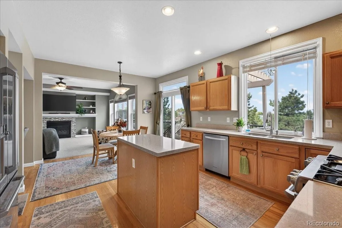 Welcome to this beautifully maintained 5-bedroom, 4-bathroom home in Centennial, offering space, comfort, and stunning mountain views. The main level features a bright living room, formal dining area, and an open eat-in kitchen with island, perfectly positioned to capture the views. A cozy family room with an updated fireplace, along with a main-floor bedroom, bathroom, and laundry, adds flexibility and convenience. Upstairs, a spacious loft provides additional living space, while the primary suite offers vaulted ceilings, mountain views, a walk-in closet, and a fully updated 5-piece bath with freestanding tub and open shower. Two additional bedrooms and a full bathroom complete the upper level. The walkout basement includes a bathroom and multiple rooms ideal for bedrooms, offices, or flex spaces. Enjoy outdoor living with a Trex deck, pergola, covered walkout patio, and fenced backyard—perfect for taking in Colorado’s sunrises and sunsets. Recent updates include a new tankless water heater installed in 2026 and 2023 updates include roof, siding, gutters, downspouts, landscaping, new fence, and exterior improvements. Located in a quiet, welcoming neighborhood with nearby schools, trails, and convenient access to shopping and dining, including Southlands just minutes away.