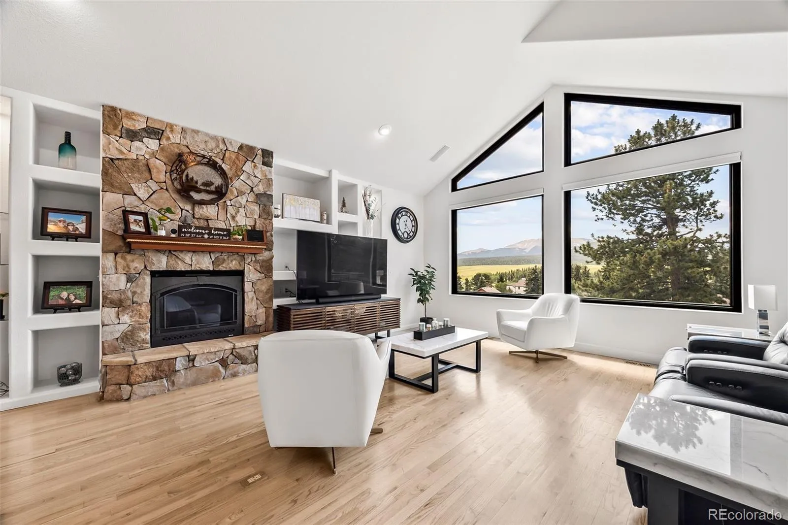 Inside, you’ll find an inviting open-concept layout filled with natural light, thanks to huge picture windows that perfectly frame the majestic scenery. The updated kitchen is both stylish and functional, and the spacious laundry room adds everyday convenience. Whether you’re hosting or just enjoying a cozy evening at home, you’ll love the large theater room, gorgeous hand-carved wood bar, and dart board — all perfect for relaxing or entertaining in style.