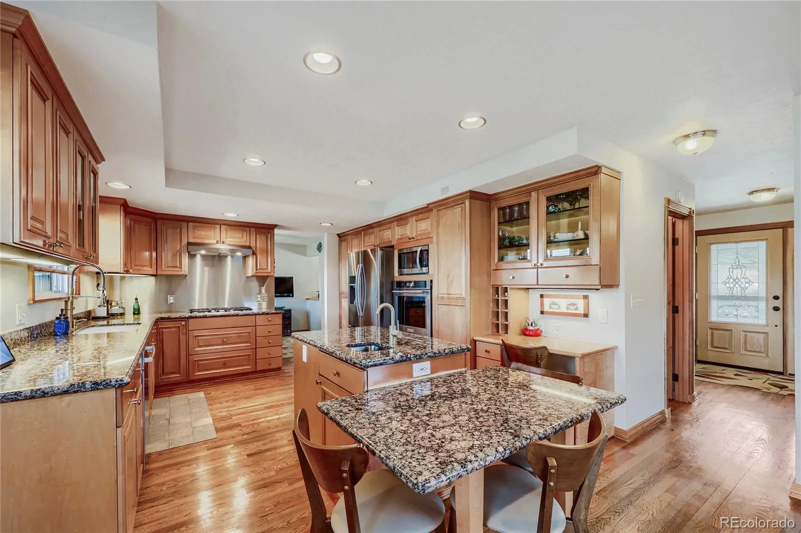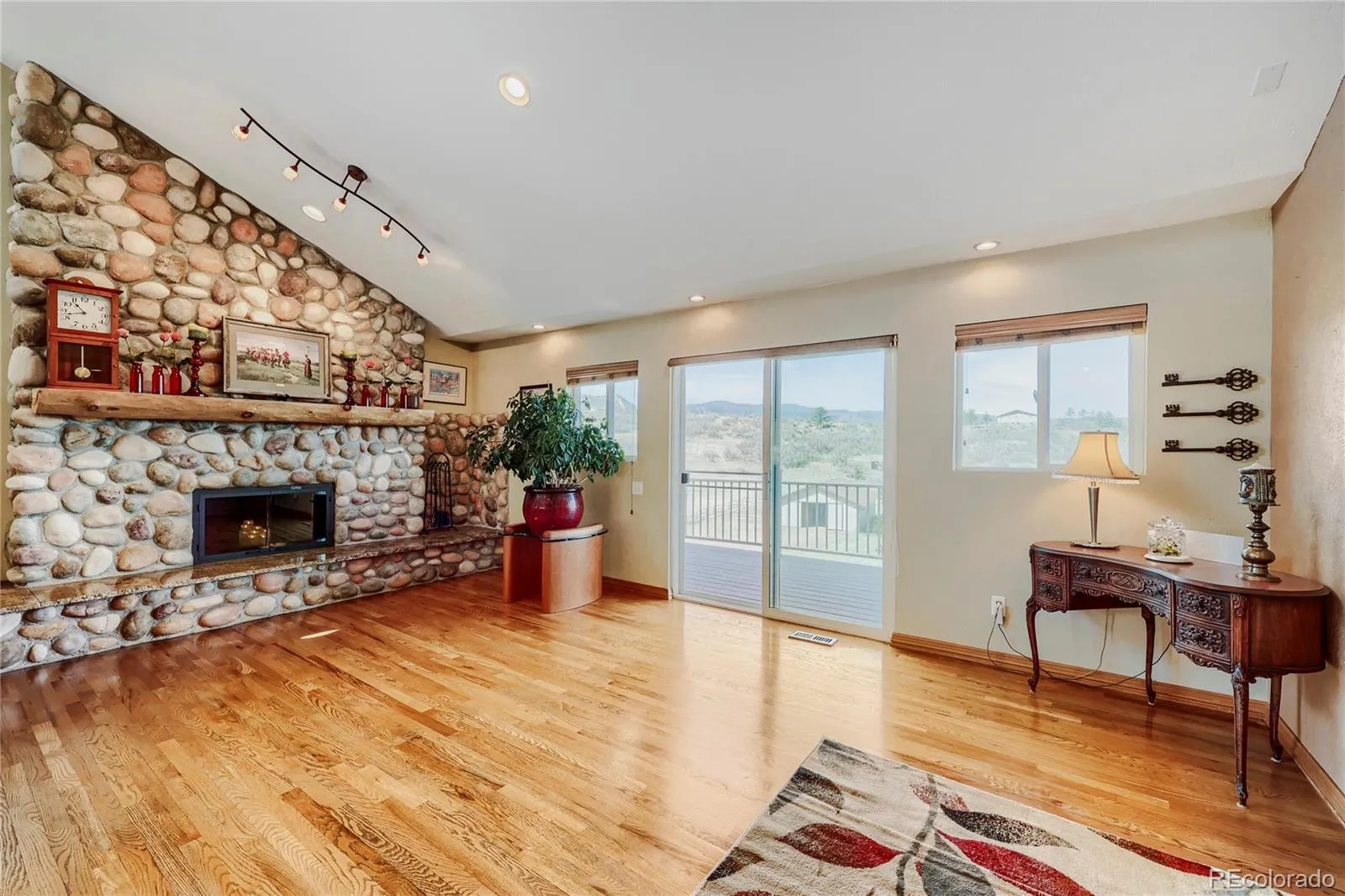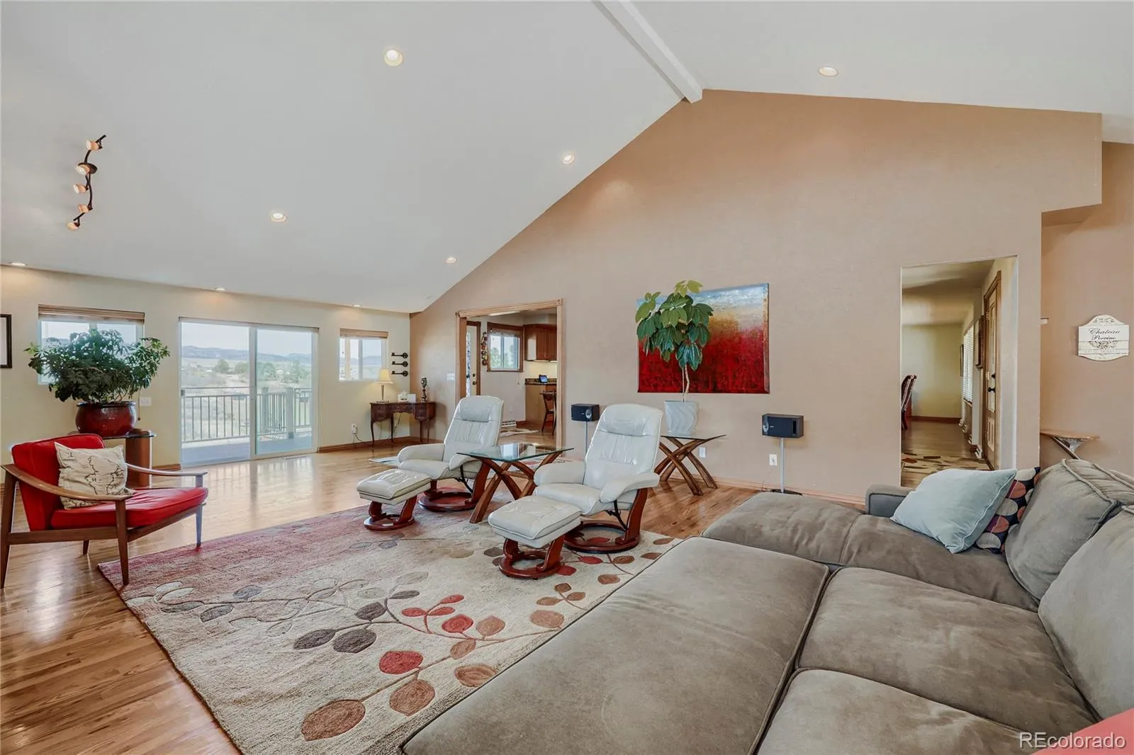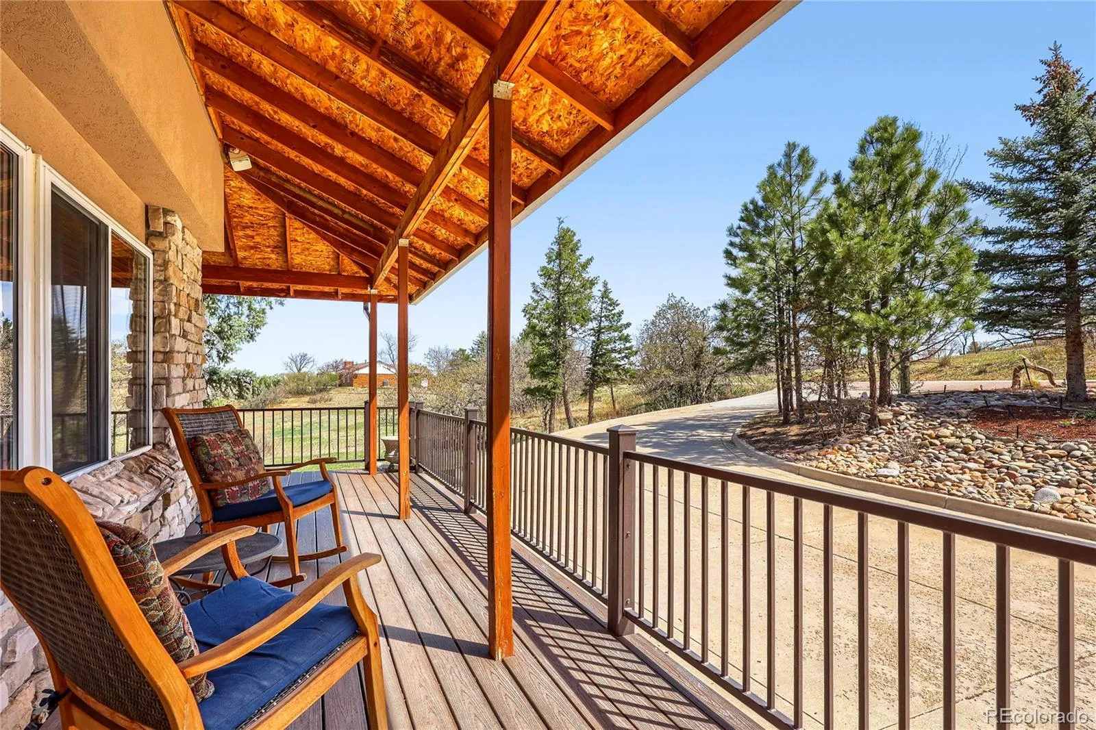 Experience elevated Colorado living with unmatched mountain views in this stunning home on 5.25 acres of pristine, fenced horse property. Perfectly balancing peaceful country living with convenience, this property is just 15 minutes from Castle Rock and within easy reach of both Denver and Colorado Springs. Designed for both lifestyle and functionality, this property is a true haven for equestrian enthusiasts. The impressive 2,000 sq. ft. pole barn features concrete floors, rubber matting, pipe-fenced runs, custom gates, hay storage, and upgraded 220-amp power. Residents also enjoy access to a vibrant community with a clubhouse, arena, playground, and miles of riding and hiking trails. Inside, the home showcases warmth and craftsmanship with solid custom wood doors and rich hardwood floors throughout. The gourmet kitchen features custom maple cabinetry, granite countertops, a gas range, and a high-end wall oven, perfect for everyday living and entertaining. The expansive family room offers vaulted ceilings and a cozy fireplace, flowing seamlessly into a walk-out basement ideal for guests or recreation. Flexible living spaces, including two home offices, provide versatility for today’s lifestyle. The oversized primary suite serves as a private retreat with a luxurious five-piece bath and a custom walk-in closet. Step outside to enjoy Colorado’s beauty from the wraparound covered Trex deck with custom wrought iron railings and a gas fire pit, perfect for year-round relaxation. The landscaped yard and decorative concrete patio create an ideal setting for entertaining while taking in breathtaking mountain vistas. Additional features include natural gas, underground utilities, a whole-house water filtration system, sprinkler system, and a community well. This is more than a home—it’s a lifestyle. Don’t miss this rare opportunity to own in a sought-after equestrian community. Clubhouse, community arena and playground located at 7149 Cherokee Dr, Sedalia, CO 80135