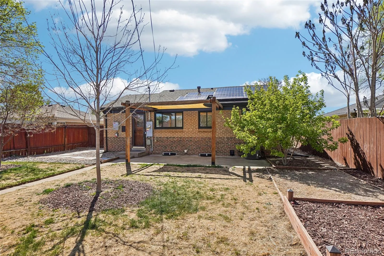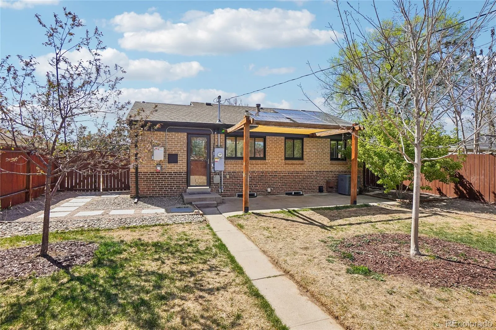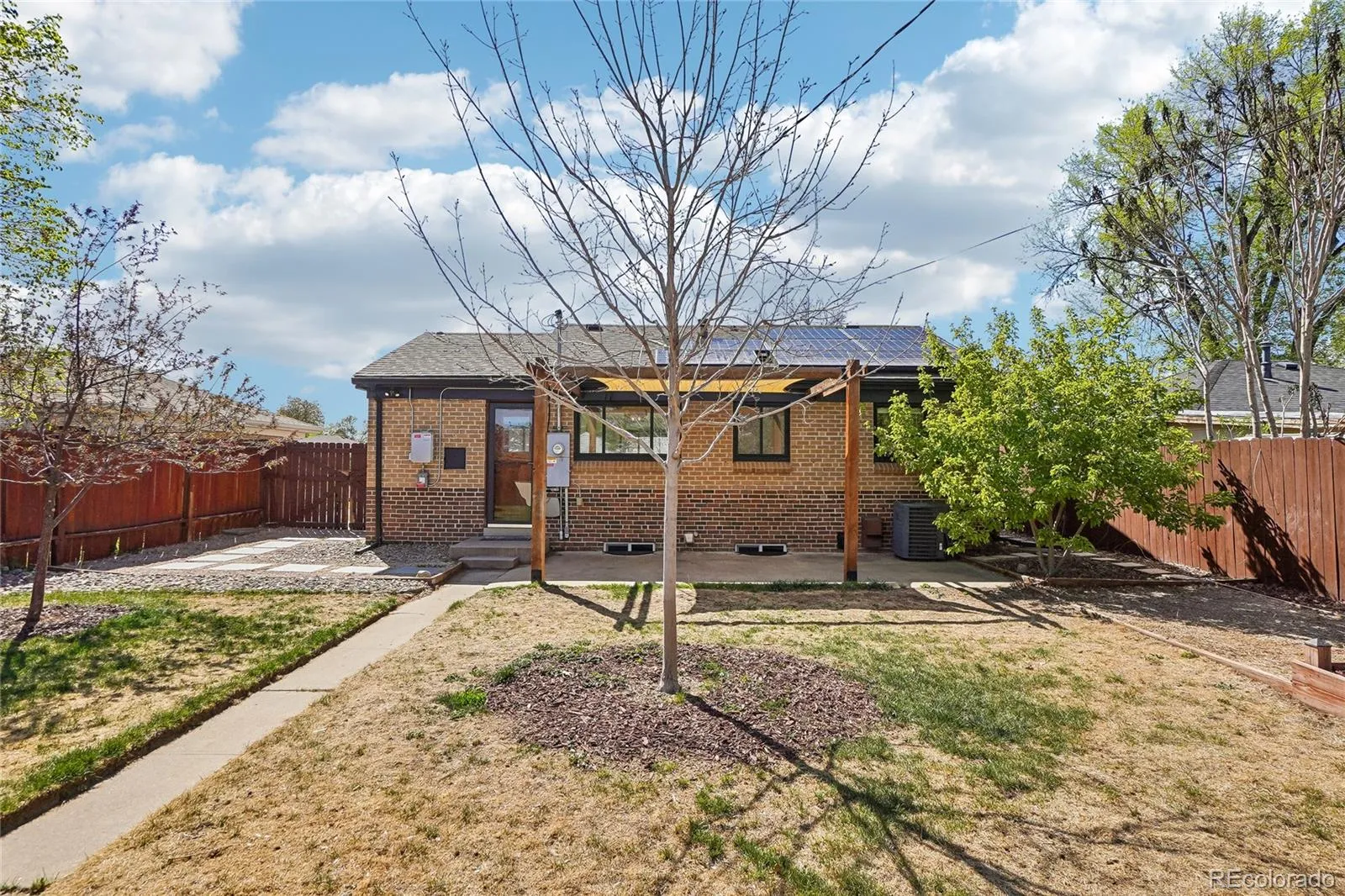 Welcome home to this inviting residence in the heart of the sought-after North Park Hill neighborhood. A beautifully landscaped front yard and charming covered porch welcome you inside, where a bright, open main floor awaits. Featuring beautiful wood flooring throughout, the layout flows seamlessly from the living and dining areas into a kitchen designed for both style and utility, complete with butcher block countertops, a classic farmhouse sink, and a convenient breakfast bar. Two sunny bedrooms and a full bath round out the main level, offering a perfect setup for all. The lower level has been transformed into a private sanctuary, featuring a massive primary bedroom suite. This quiet retreat includes a spacious en-suite bath with a large, modern walk-in shower, with direct access to the laundry room and extra storage space for ultimate convenience. Step outside to discover a fully fenced backyard oasis. Whether you are hosting a summer barbecue under the sun-shaded patio, tending to the garden beds, or enjoying the expansive lawn, this space is built for outdoor living. For the eco-conscious buyer, the home features seller-owned solar panels, offering significant energy efficiency and savings. Located in one of Denver’s most beloved quiet pockets, this home offers the best of both worlds: peace and quiet at home with the vibrancy of the city just minutes away. You can easily bike to local shops, breweries, and City Park, or take advantage of the unbeatable proximity to Downtown Denver, the A-Line train, and I-70 for effortless commuting. This is a rare opportunity to own a charming, updated home in a truly connected community.