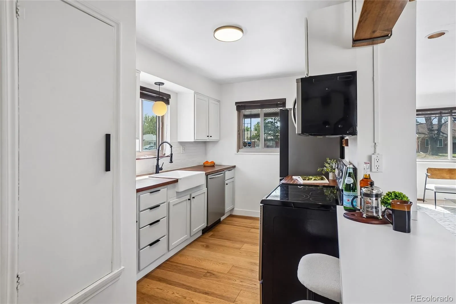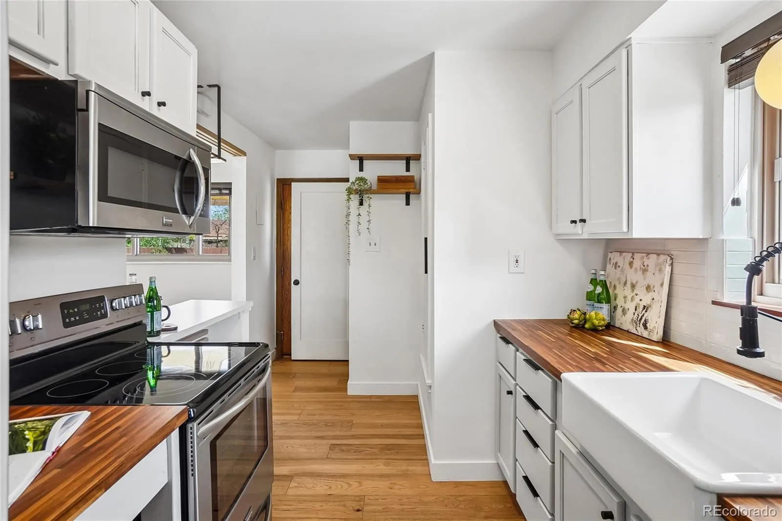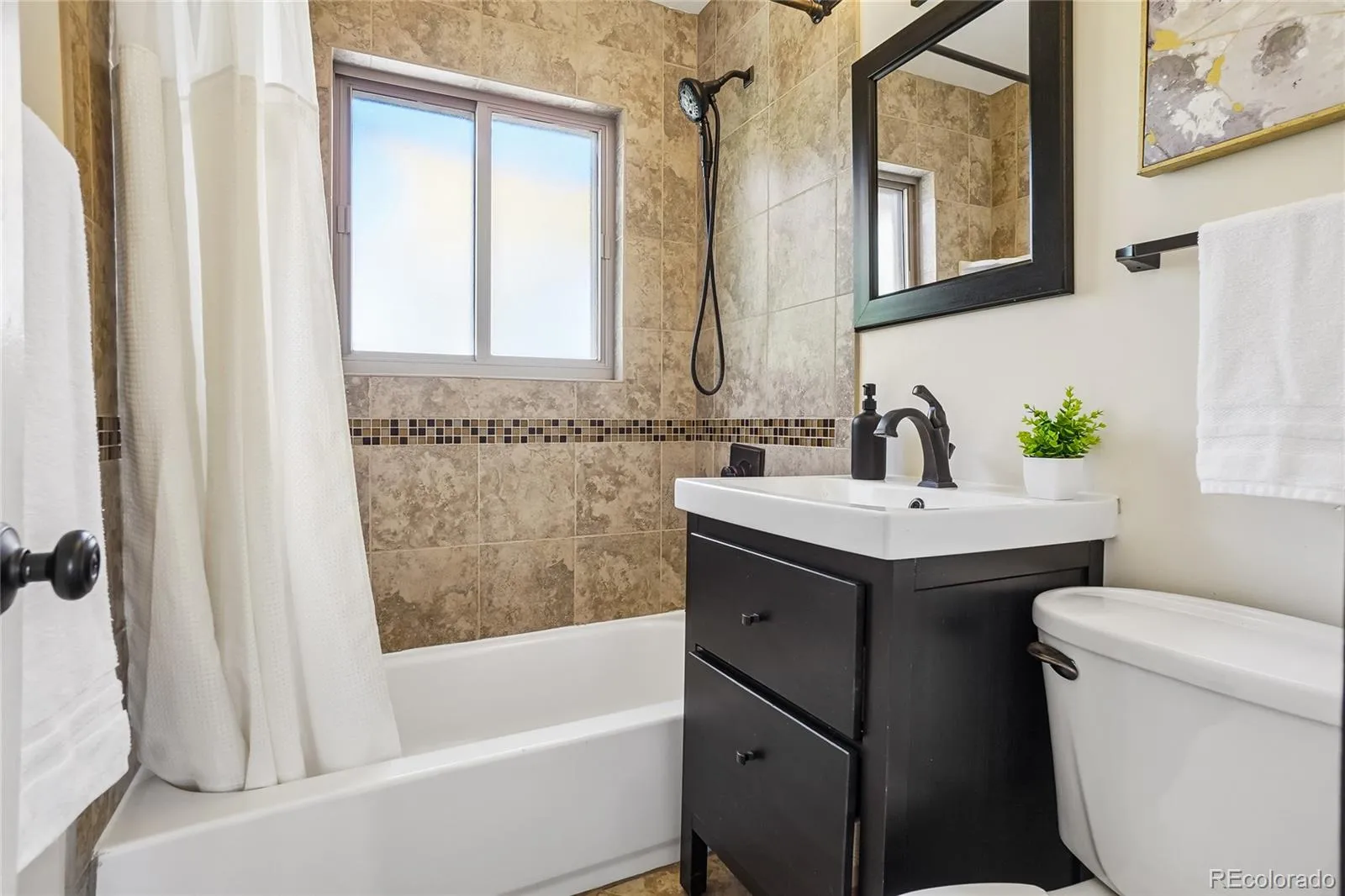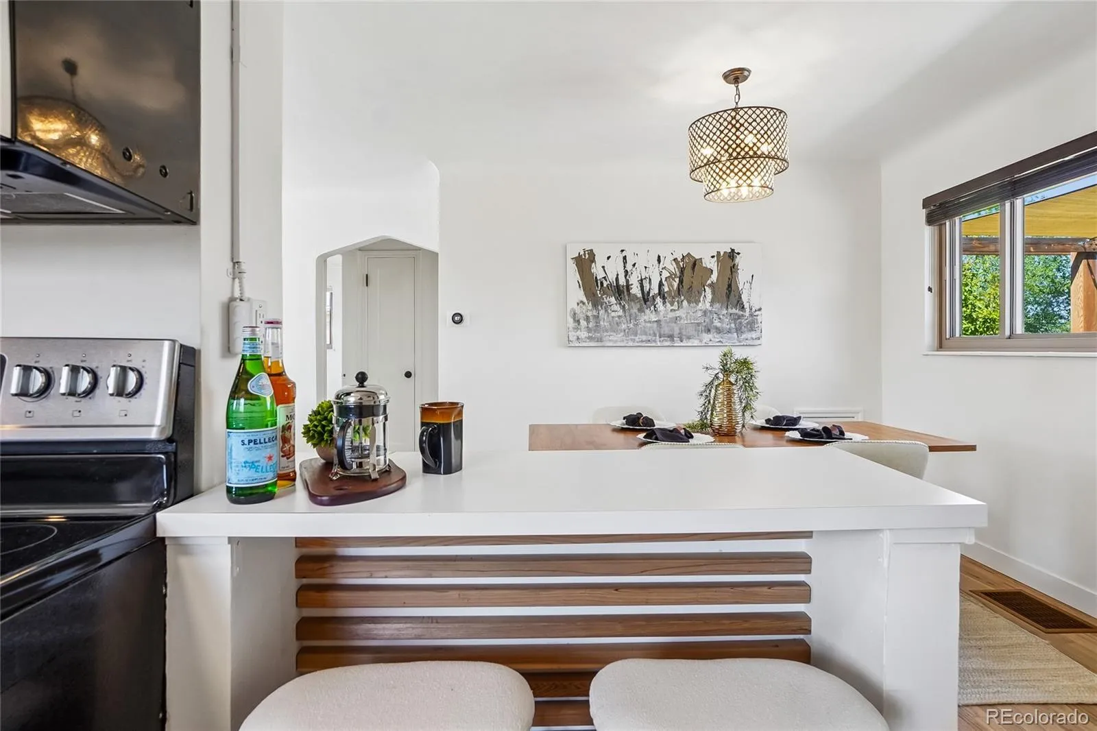 Welcome home to this inviting residence in the heart of the sought-after North Park Hill neighborhood. A beautifully landscaped front yard and charming covered porch welcome you inside, where a bright, open main floor awaits. Featuring beautiful wood flooring throughout, the layout flows seamlessly from the living and dining areas into a kitchen designed for both style and utility, complete with butcher block countertops, a classic farmhouse sink, and a convenient breakfast bar. Two sunny bedrooms and a full bath round out the main level, offering a perfect setup for all. The lower level has been transformed into a private sanctuary, featuring a massive primary bedroom suite. This quiet retreat includes a spacious en-suite bath with a large, modern walk-in shower, with direct access to the laundry room and extra storage space for ultimate convenience. Step outside to discover a fully fenced backyard oasis. Whether you are hosting a summer barbecue under the sun-shaded patio, tending to the garden beds, or enjoying the expansive lawn, this space is built for outdoor living. For the eco-conscious buyer, the home features seller-owned solar panels, offering significant energy efficiency and savings. Located in one of Denver’s most beloved quiet pockets, this home offers the best of both worlds: peace and quiet at home with the vibrancy of the city just minutes away. You can easily bike to local shops, breweries, and City Park, or take advantage of the unbeatable proximity to Downtown Denver, the A-Line train, and I-70 for effortless commuting. This is a rare opportunity to own a charming, updated home in a truly connected community.