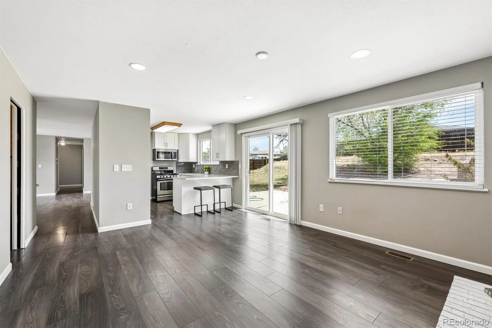 Welcome to this thoughtfully updated and well-maintained home, ideally situated on a large corner lot with no HOA—a rare and valuable find. Featuring a 2-car attached garage, newer windows, and fresh exterior paint, this property offers both curb appeal and long-term peace of mind. Inside, you’re greeted by a versatile great room just off the entry, perfect for a variety of living or entertaining needs. The dining room is conveniently located next to the beautifully remodeled kitchen, which showcases soft-close cabinetry, quartz countertops, and a custom backsplash for a clean, modern look. Just beyond the kitchen, the inviting family room features a cozy wood-burning fireplace and direct access to the backyard patio, creating a seamless indoor-outdoor living experience. Laminate flooring runs throughout the home, enhancing both durability and style. The laundry room is neatly tucked away and includes cabinetry for additional storage. The home offers two well-sized secondary bedrooms—one spacious and flexible, the other bright and open—along with a full bathroom that has been updated with new tile and a modern vanity. The primary bedroom provides a comfortable retreat with ample closet space, while the en-suite 3/4 bathroom features a walk-in shower, new tile, and updated finishes for a contemporary feel. Downstairs, a huge basement awaits your personal touch, offering endless possibilities for expansion or customization. Major systems have been updated, including the furnace and A/C, and the roof was replaced in 2024, adding to the home’s overall value and reliability. Step outside to enjoy a large backyard complete with a storage shed and mature trees, providing both privacy and shade. Conveniently located near public transit, parks, and the scenic W. Toll Gate Creek Trail, this home also offers easy access to major routes like Hampden Avenue and Parker Road—making commuting and everyday errands a breeze.