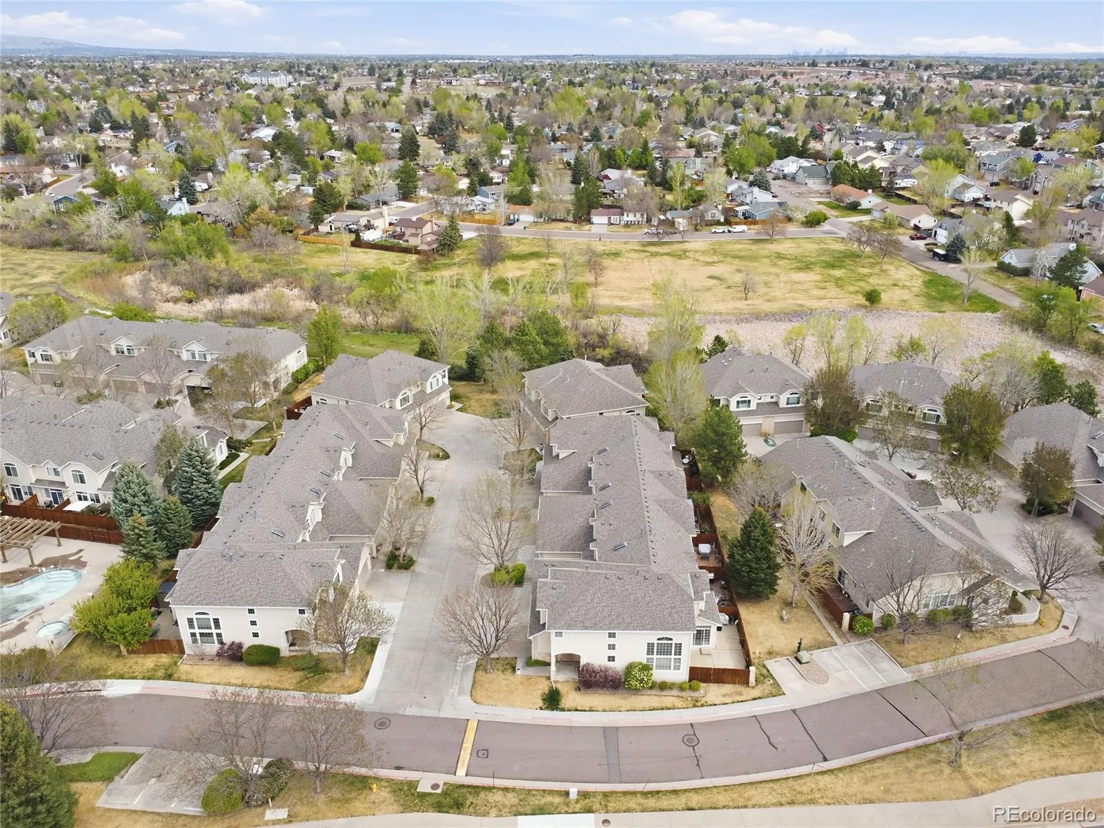 Low-maintenance living with the space and feel of a single-family home. This end-unit townhome is one of the largest in the community and is filled with natural light thanks to its desirable south-facing exposure. The main level offers an open, airy layout with vaulted ceilings in the living room, seamlessly connecting to the dining area and kitchen, perfect for both everyday living and entertaining. A convenient powder room, laundry area, and direct access to the private back patio complete the main floor. Upstairs, double doors lead to the spacious primary suite featuring a five-piece ensuite bath and an oversized walk-in closet. Two additional bedrooms and a full hall bathroom provide flexibility for guests, family, or a home office. Enjoy the convenience of an attached two-car garage and additional storage in the fully lined crawl space. Recent updates include fresh interior paint and newer carpet. Plus, the roof was recently replaced in 2025! Community amenities include exterior maintenance, a pool and spa, and access to Willow Creek Park just steps away. Chatfield State Park and the Botanic Garden’s Chatfield location are within a 5 minute drive. All of this with easy access to shopping, dining, and major highways. Comfort, convenience, and space – this home checks every box.
