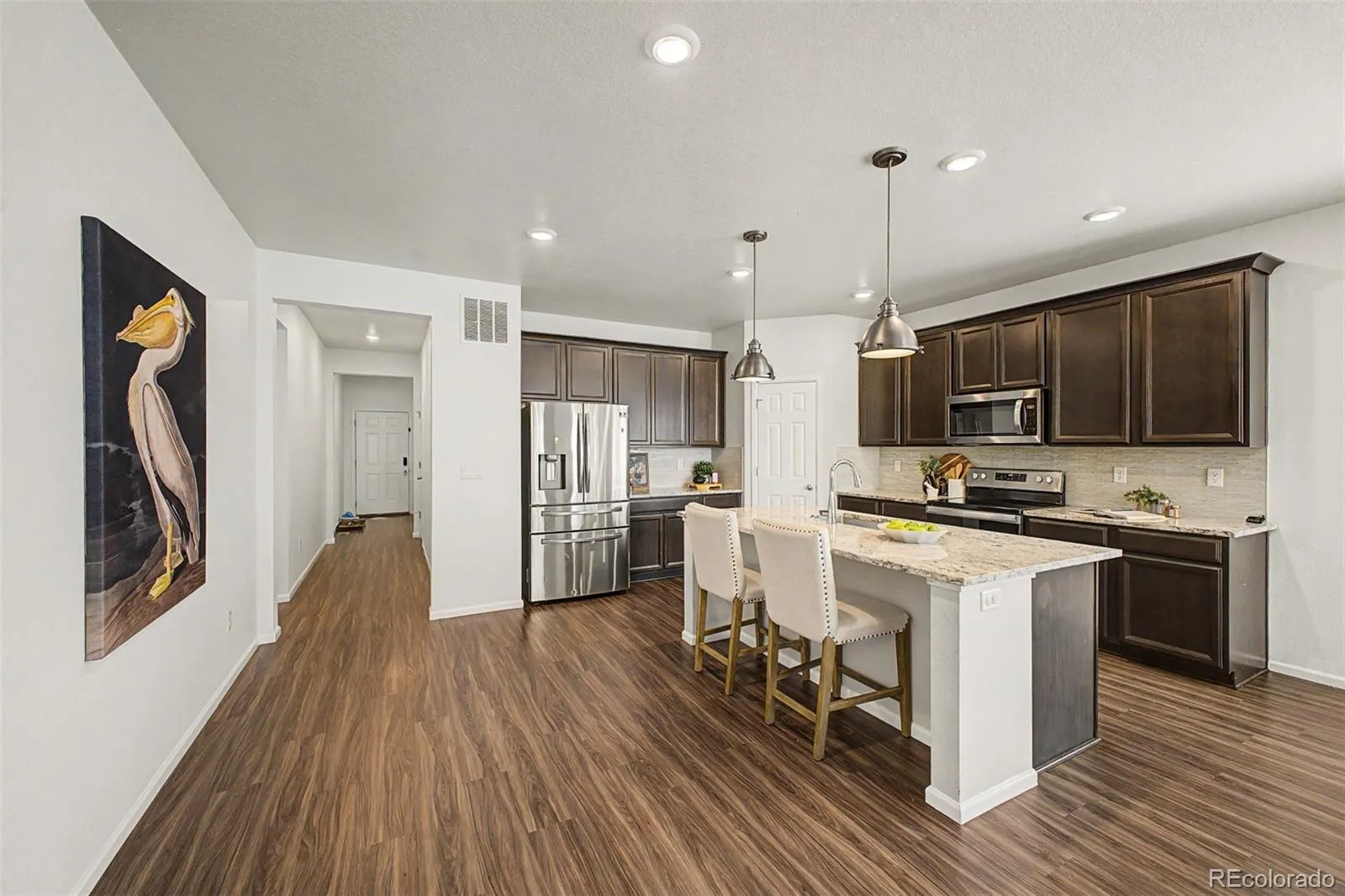 Welcome to this beautiful ranch-style home in the desirable Harvest Junction neighborhood of Longmont. Built in 2020, this thoughtfully crafted 5-bedroom, 3-bathroom residence offers over 3,000 square feet of finished living space, blending modern comfort with timeless style.