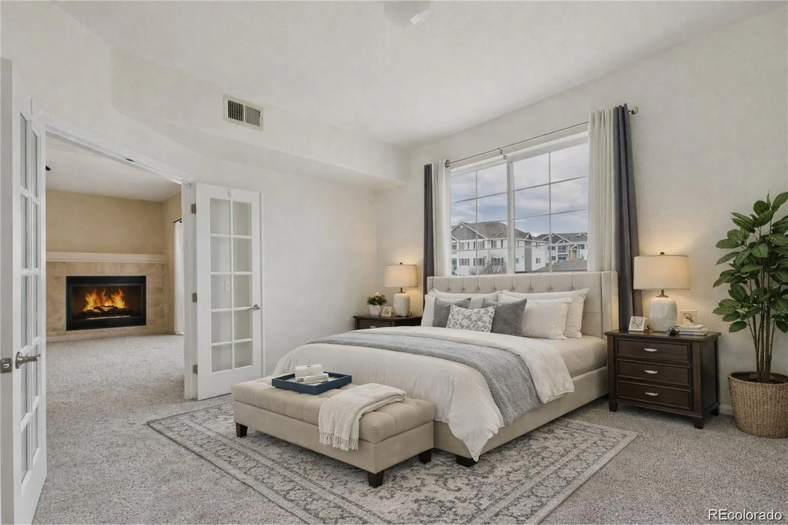 This beautiful, south-facing residence seamlessly blends comfort, style, and spaciousness. Enhanced by fresh new carpet throughout, the open-concept layout is defined by high ceilings and an abundance of natural light that creates a vibrant, welcoming atmosphere. The inviting living area, featuring a sleek fireplace, leads naturally to a private balcony and into the kitchen, making it a perfect hub for both lively entertaining and quiet relaxation. The thoughtful floor plan is designed for intuitive everyday living, offering generous storage, three full bathrooms, spacious rooms, walk-in closets, and a dedicated in-unit laundry closet. Step outside onto your choice of two private balconies to enjoy peaceful views and fresh air, the ideal spot for a morning coffee or winding down at the end of the day. Residents also benefit from the exclusive amenities of this secure, gated community, which includes a fitness center, swimming pool, and scenic walking trails. Parking is remarkably stress-free, featuring a detached garage, an additional reserved space, and ample parking for guests. Located in a prime area with quick access to local shops, dining, and major roadways, the home is also situated within the highly coveted Cherry Hills School District. Whether you’re looking for a peaceful retreat or a welcoming home base for your next chapter, this residence truly offers the perfect combination of comfort and convenience. Welcome home!