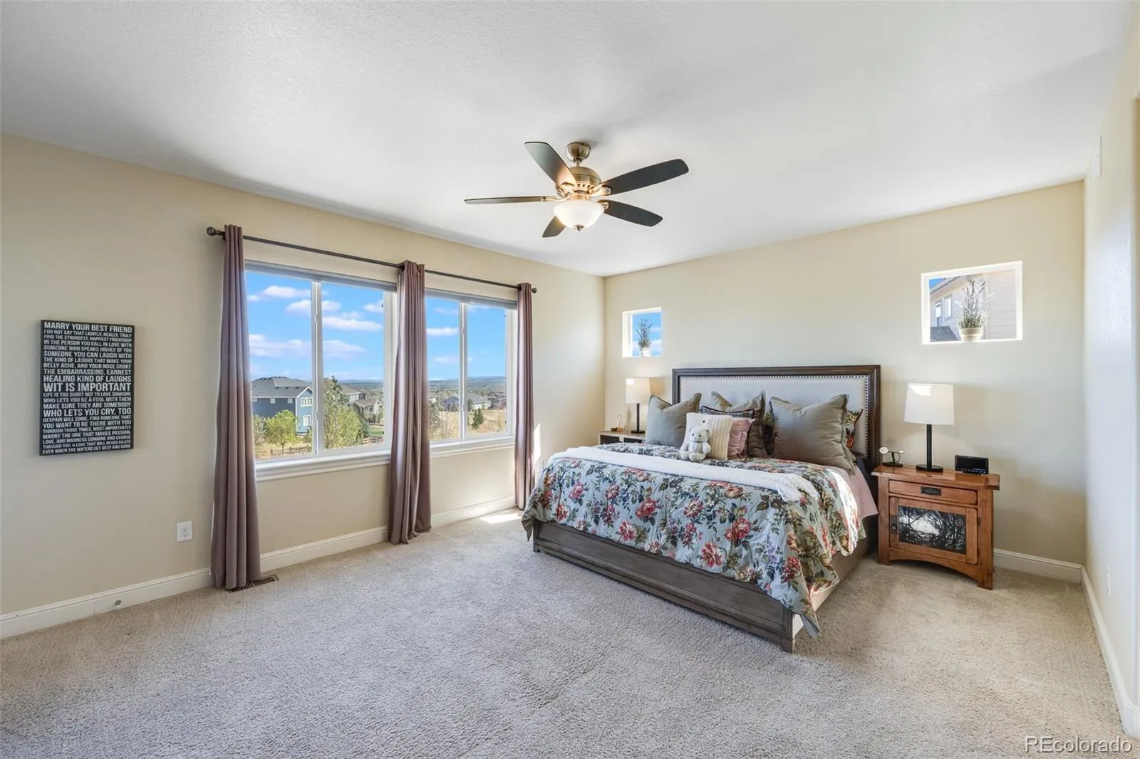 This well-maintained home features a highly desirable main-floor primary suite, offering convenience and a private retreat all in one. The layout is both functional and inviting, with bright living spaces filled with natural light and designed for easy everyday living. The kitchen provides ample counter space and storage, making it a natural hub for gathering. Downstairs, the home really separates itself from the pack with a full second kitchen in the basement—perfect for entertaining, hosting, or creating a flexible living setup that adapts to your needs. Throughout the home, you’ll enjoy mountain views from every level—because in Colorado, that’s not a luxury, it’s a lifestyle requirement. Step outside and it only gets better. The backyard backs directly to open green space and trails, offering privacy, peaceful surroundings, and easy access to the outdoors right out your back door. With generously sized bedrooms and flexible spaces for work, hobbies, or guests, this home gives you options without sacrificing comfort.