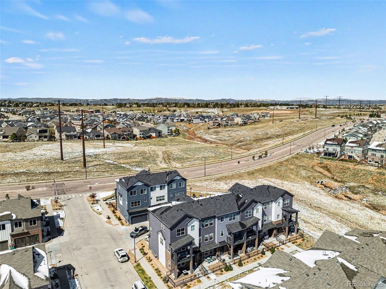 Fantastic 3-Story Luxury Townhome in beautiful Skyline Ridge in Castle Pines! This rare 2 bed, 3 bath Jamestown model by Century Communities is ideally positioned (not backing to I-25), offering added privacy and tranquility. The open, light-filled floor plan showcases a modern chef’s kitchen with gas range, 42” white cabinetry, quartz countertops, and stainless-steel appliances, seamlessly flowing into the spacious living area—perfect for entertaining. Upstairs features new luxury vinyl plank flooring, a generous primary suite with walk-in closet, plus a secondary bedroom and full bath. The entry level offers a versatile office/flex space and direct access to the single car garage. LOCATION, LOCATION, LOCATION! Quick access to I-25 and Castle Pines, Lone Tree and Castle Rock with great local shopping and dining. Lock and Leave Low maintenance living at its best! Your outdoor adventures await with miles of nearby scenic hiking and biking trails including Daniels Park, the East West Trail, Bluffs Regional Park and more! Don’t wait to build and miss this opportunity to make this move in ready home yours!