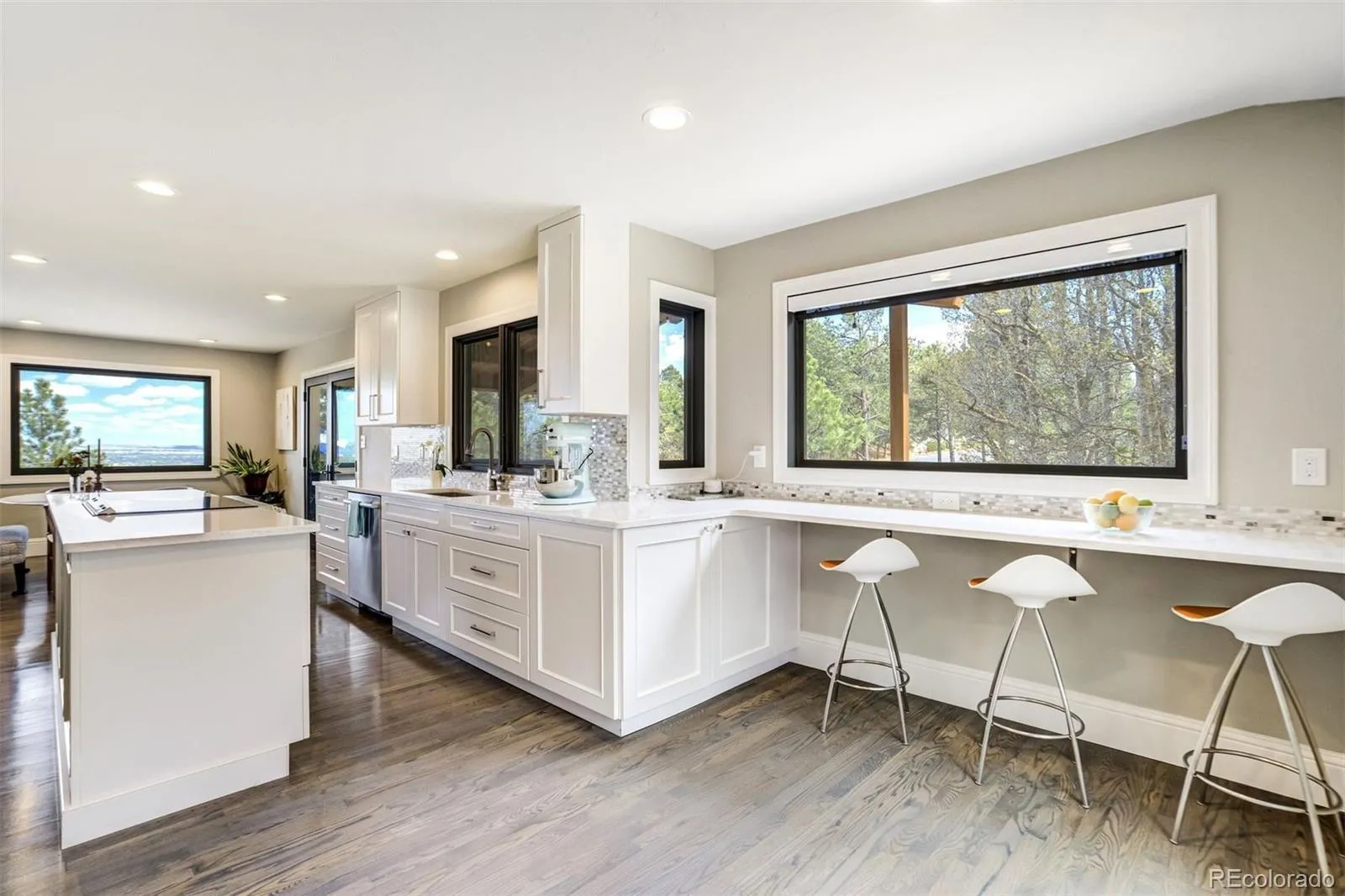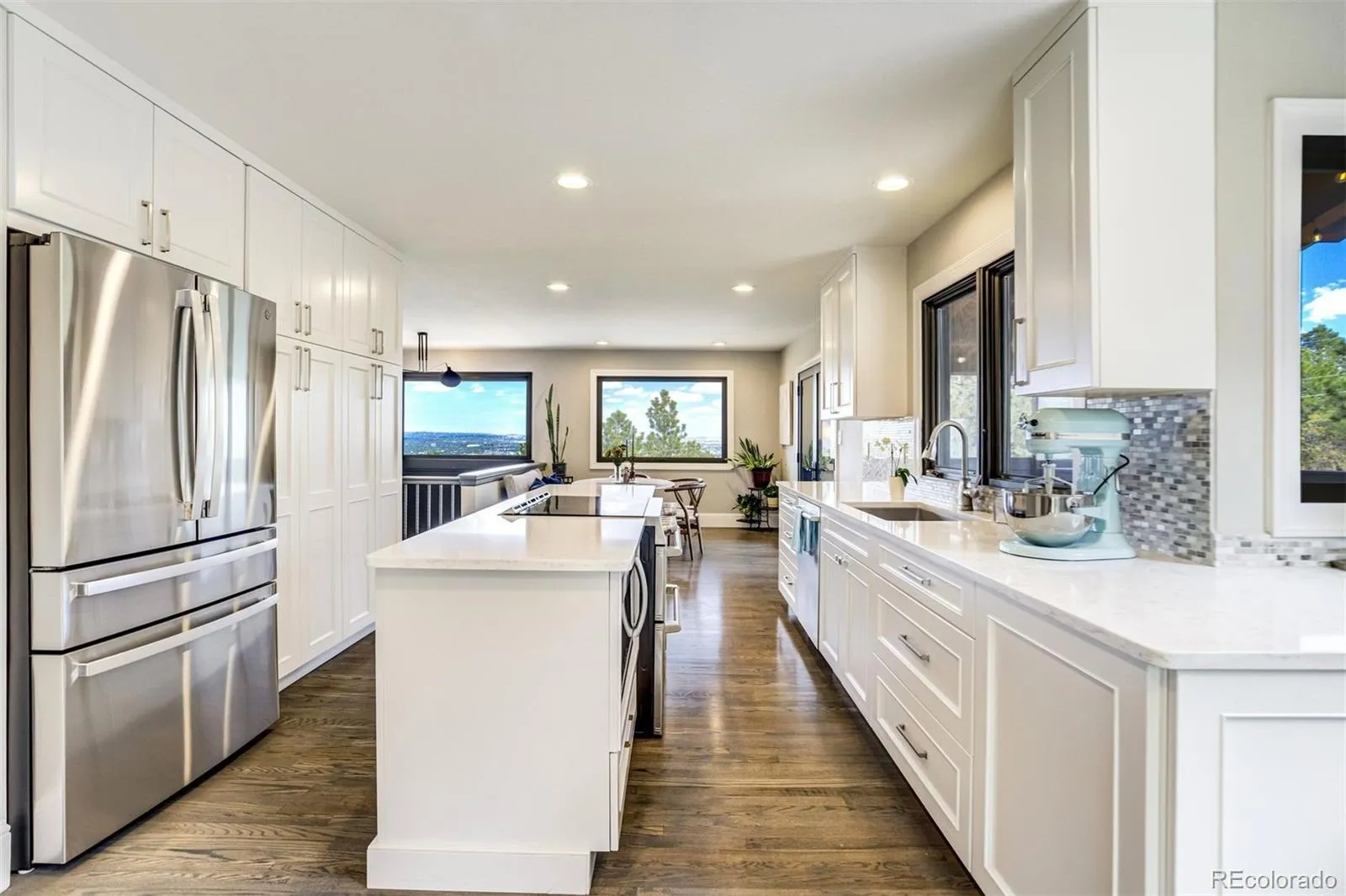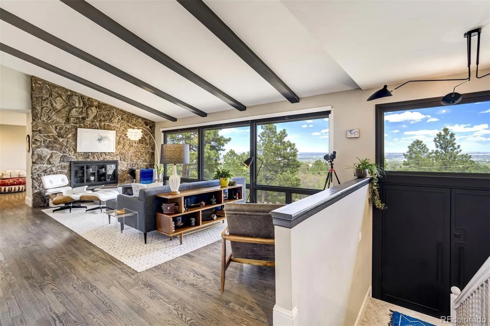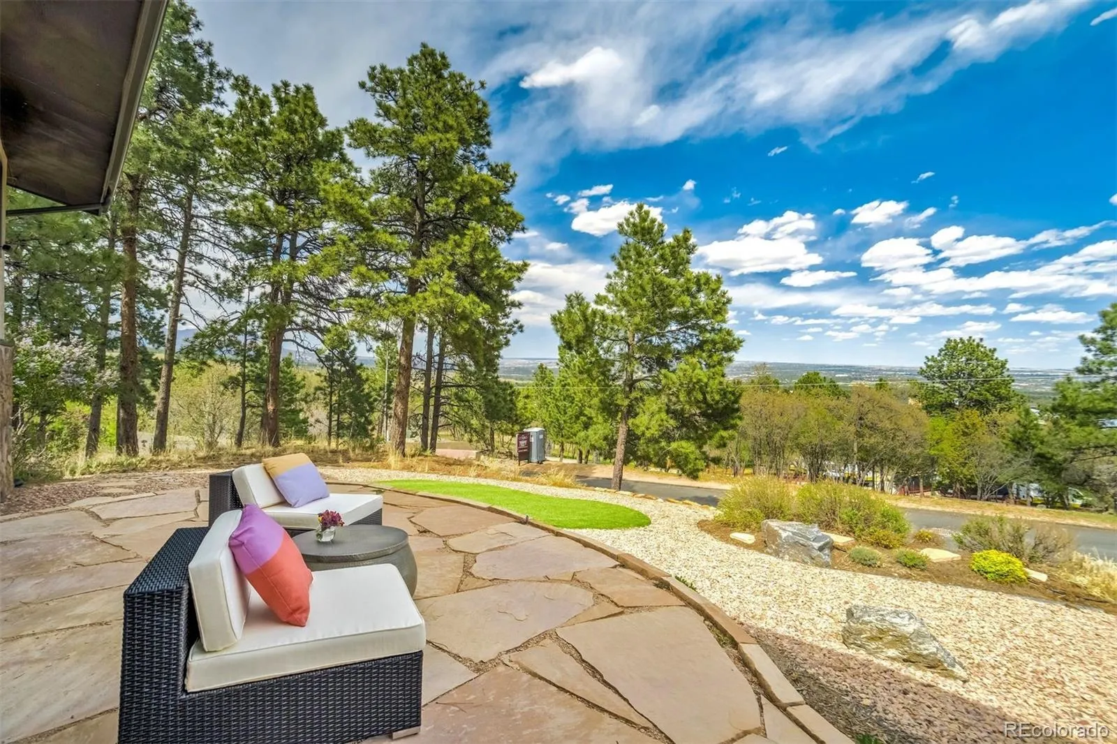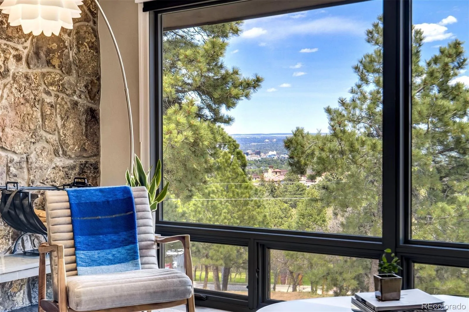 The timeless views. The sense of serenity. The wide open living. Enduring materials that express beauty today and tomorrow. Welcome to Broadmoor Heights. Blocks away from Strawberry Fields and Cheyenne Cañon Trails and treehouse-like views of the five-diamond/five-star gem The Broadmoor Hotel as well as a canvas of city lights, this mid-century modern home designed by acclaimed local architect Don Price has been lovingly restored. Moss Rock Fireplace. Beamed Living Room Ceilings. Matte-Finish Hardwood Flooring. Modern Quartz Kitchen with premium appliances (Induction GE Café, Bosch). Extensive cabinetry by Aspen Kitchens. Tongue & Groove Covered Deck. Marvin Windows and Doors. Exceptional Lighting. An ideal home office environment is bathed in natural sunlight. Primary suite with thoughtful built-ins and storage. A second fireplace in the basement. Walkout lower level. Custom Metal Double Entry Door, custom metal work on deck railings, and custom woodgrain-style steel plank garage doors, all amplify the beauty of the home’s original design. Garage Shop (third bay sized). Newer (2020) composite shingle roof. Kohler sinks, custom window coverings in the living room and walkouts strategically placed around the residence invite the outdoors, in, to a harmonious, unhurried pace of life awaits. The abundance of thoughtful details continues outdoors in the low impact yard, where premium stone steps, synthetic turf in front and back, thoughtfully mitigated evergreens, a fenced-in backyard, front yard patio for views, an extensive circular asphalt driveway to the side of the residence, 2 additional gas lines on deck, and perennial raised beds all enjoy the charm of the Will Rogers’ Shrine’s Bells. Set in the hills above the Broadmoor Hotel, and within the prestigious Cheyenne Mountain District 12 school system, access to downtown is a short 15-minute drive through the canvas of one of Colorado’s most cherished locations. Urban chic and mountain charm have converged at last.