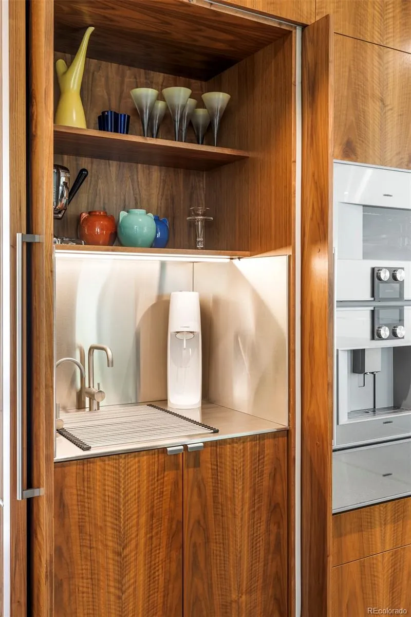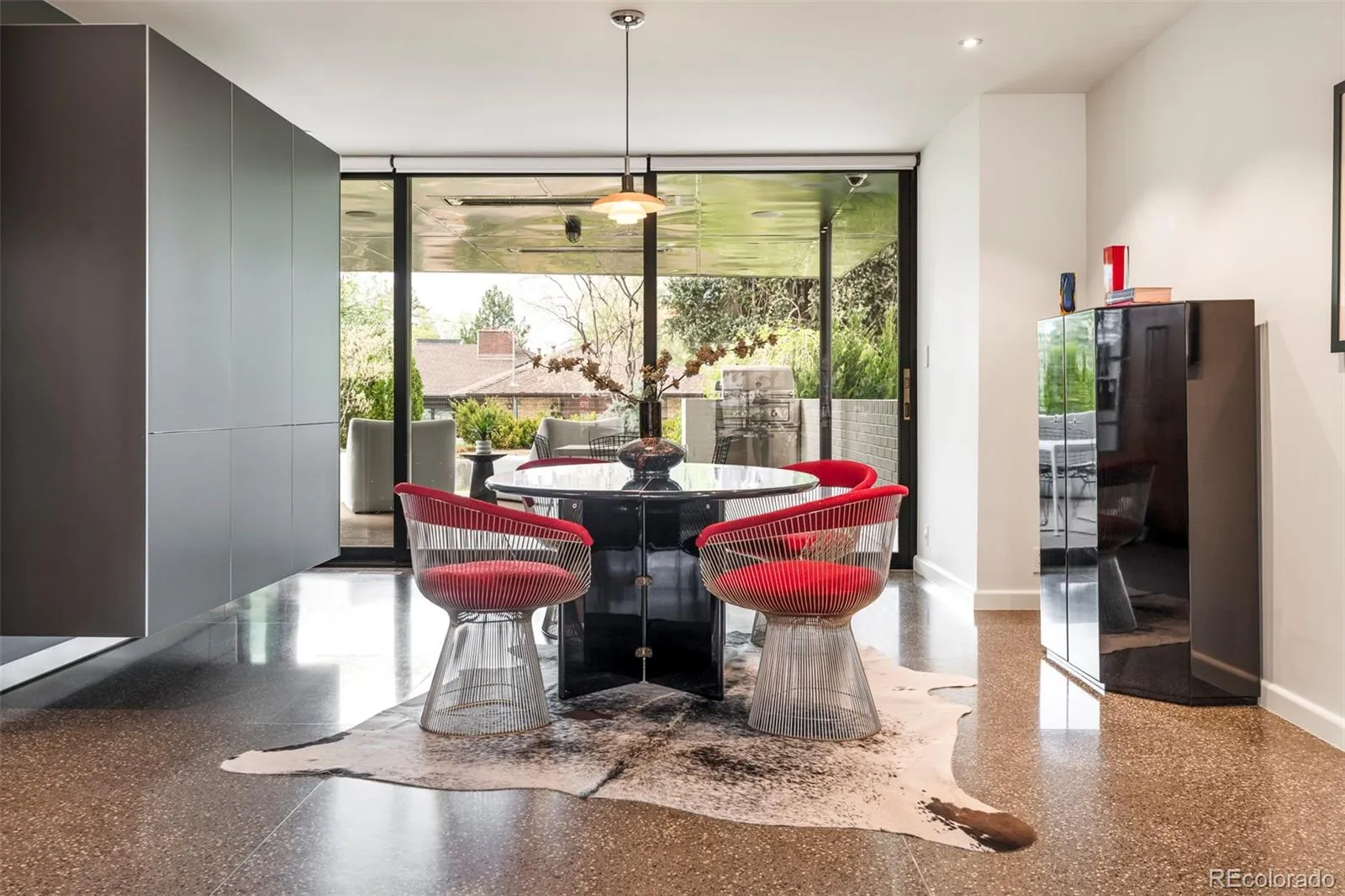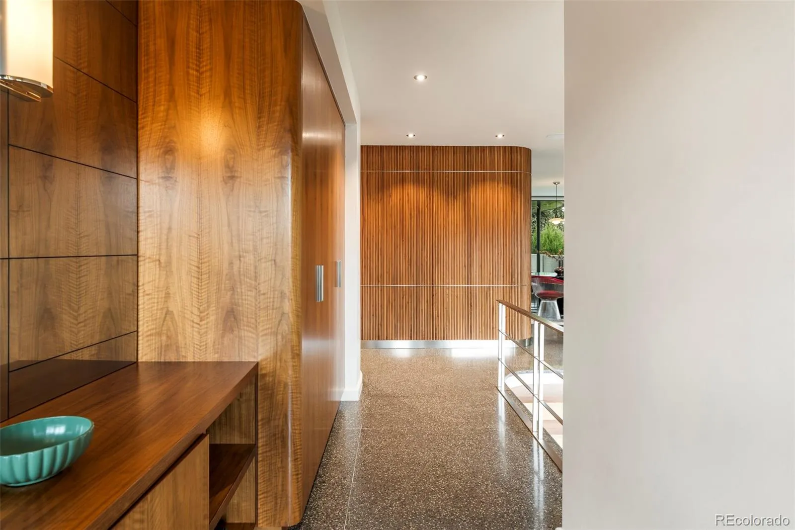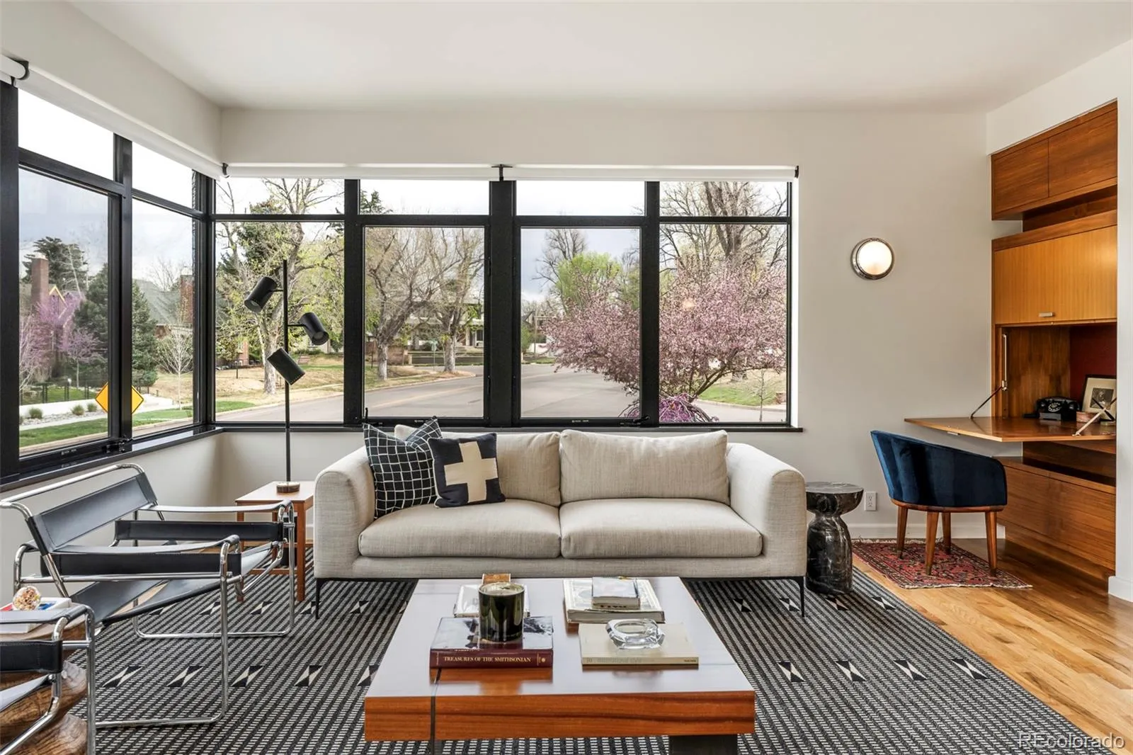 Overlooking Ellipse Park from a premier corner lot in Bonnie Brae – this home offers a rare blend of era-specific architecture and sophisticated modern design. Built in 1939 with Post–Art Deco influence, this residence was fully reimagined in 2018 by its designer-owner in collaboration with Boss Architecture. The home features a clean aesthetic with poured terrazzo floors, expert millwork, and abundant natural light through modernist-style windows. Rounded architectural details soften the lines, while custom built-ins, polished concrete and rich hardwood floors create a timeless feel. The Bulthaup kitchen is designed for both everyday living and entertaining, featuring stainless steel countertops, dual cooktops, and a full suite of Gaggenau, Miele, and Sub-Zero appliances. Additional highlights include integrated storage, built-in espresso system, and island seating for casual meals. The primary suite offers a peaceful retreat with a rooftop terrace overlooking the park, fireplace, spacious walk-in closet and a dedicated laundry area. Bathrooms are finished with high-end materials including Vitraform glass countertops, quartzite surfaces, radiant heated floors, steam shower, and soaking tub. Indoor-outdoor living is seamlessly integrated with a heated, covered patio, built-in Lynx grill, and elevated backyard. The lower level provides additional flexible space with custom storage, cedar closets, and built-in seating. Two attached garages accommodate three vehicles, along with additional off-street parking. Smart home features include Savant automation, Lutron lighting, and hardwired window coverings. The home also includes advanced wellness systems such as whole-house humidification, water purification, hot water recirculation, and water softening. Located in the much coveted heart of Bonnie Brae, this home is just minutes from Cherry Creek and Washington Park, offering convenient access to shopping, dining, and outdoor recreation.