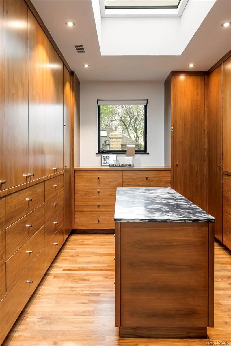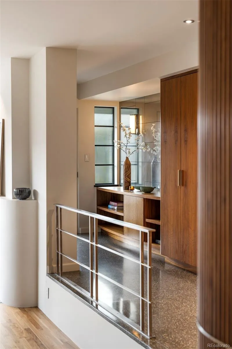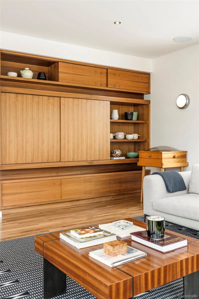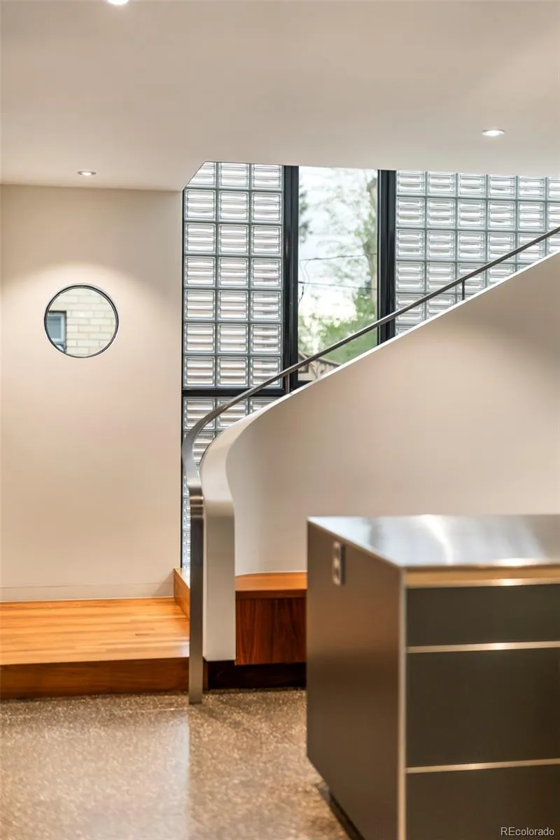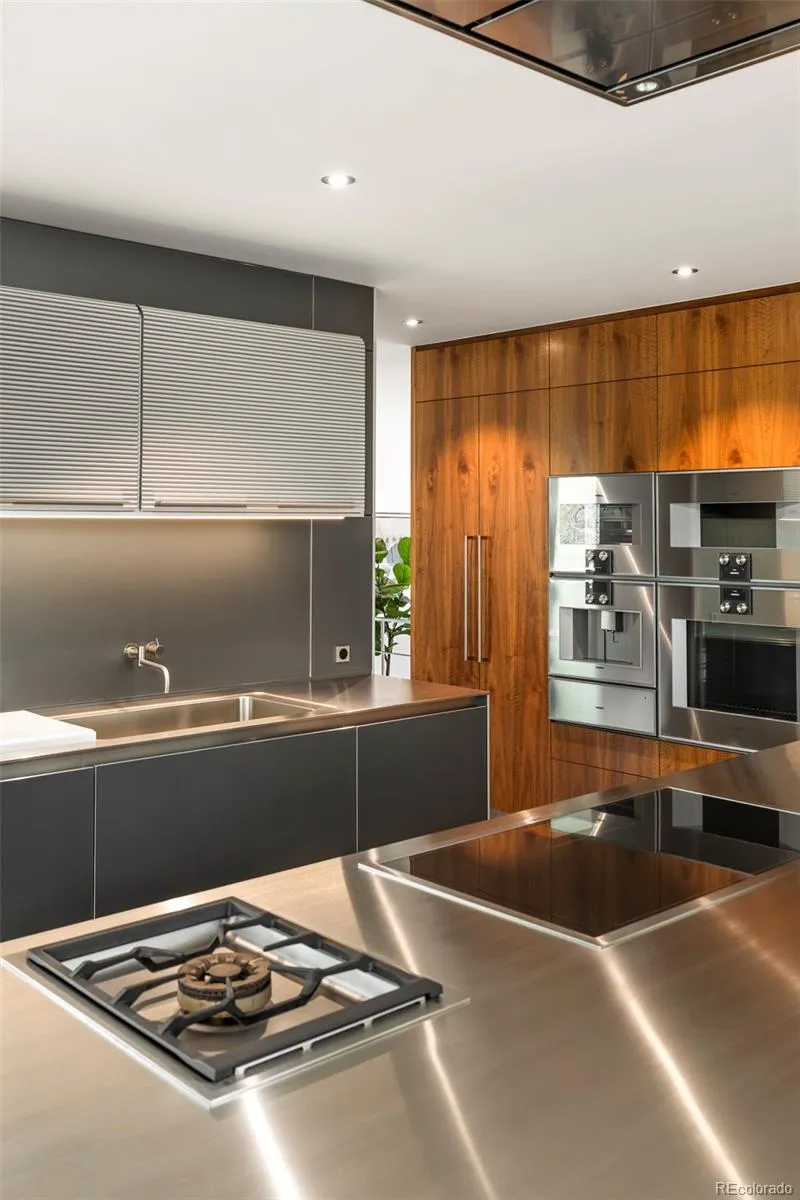 Overlooking Ellipse Park from a premier corner lot in Bonnie Brae – this home offers a rare blend of era-specific architecture and sophisticated modern design. Built in 1939 with Post–Art Deco influence, this residence was fully reimagined in 2018 by its designer-owner in collaboration with Boss Architecture. The home features a clean aesthetic with poured terrazzo floors, expert millwork, and abundant natural light through modernist-style windows. Rounded architectural details soften the lines, while custom built-ins, polished concrete and rich hardwood floors create a timeless feel. The Bulthaup kitchen is designed for both everyday living and entertaining, featuring stainless steel countertops, dual cooktops, and a full suite of Gaggenau, Miele, and Sub-Zero appliances. Additional highlights include integrated storage, built-in espresso system, and island seating for casual meals. The primary suite offers a peaceful retreat with a rooftop terrace overlooking the park, fireplace, spacious walk-in closet and a dedicated laundry area. Bathrooms are finished with high-end materials including Vitraform glass countertops, quartzite surfaces, radiant heated floors, steam shower, and soaking tub. Indoor-outdoor living is seamlessly integrated with a heated, covered patio, built-in Lynx grill, and elevated backyard. The lower level provides additional flexible space with custom storage, cedar closets, and built-in seating. Two attached garages accommodate three vehicles, along with additional off-street parking. Smart home features include Savant automation, Lutron lighting, and hardwired window coverings. The home also includes advanced wellness systems such as whole-house humidification, water purification, hot water recirculation, and water softening. Located in the much coveted heart of Bonnie Brae, this home is just minutes from Cherry Creek and Washington Park, offering convenient access to shopping, dining, and outdoor recreation.