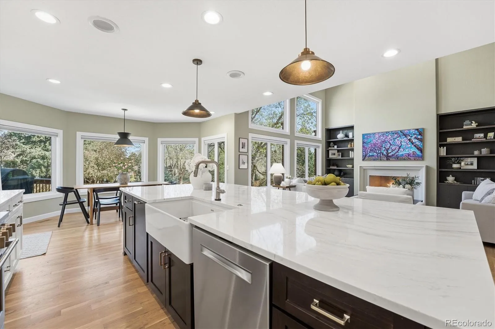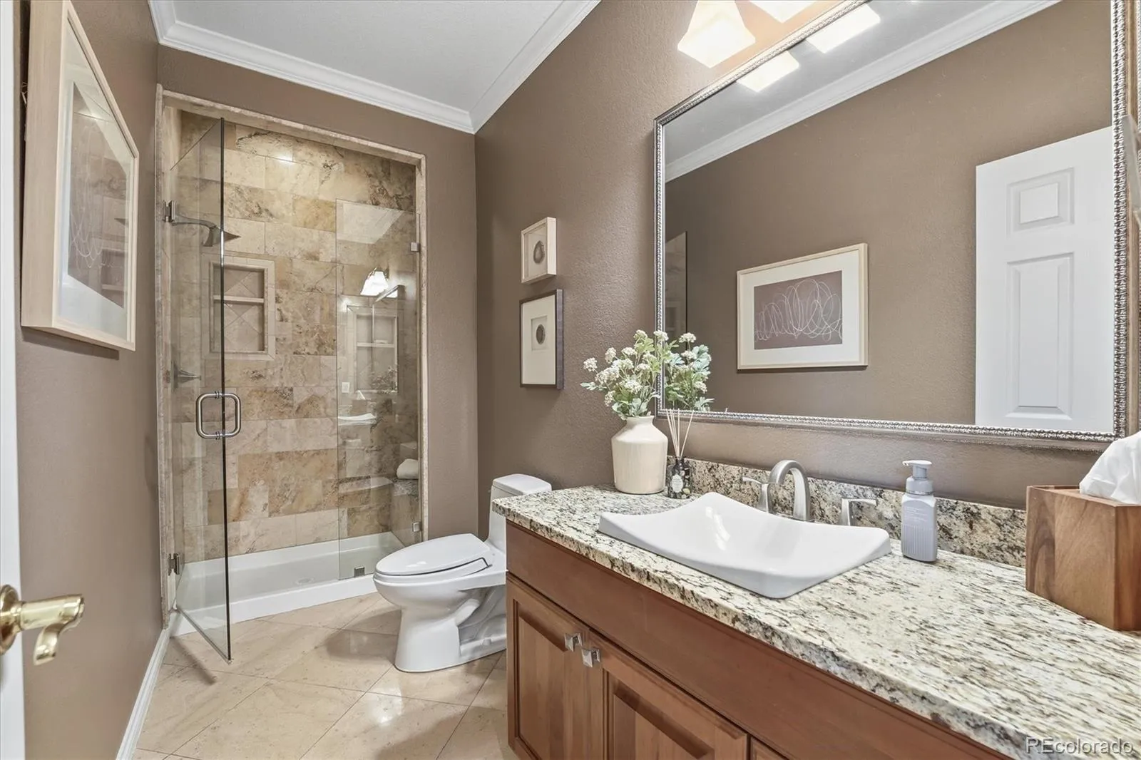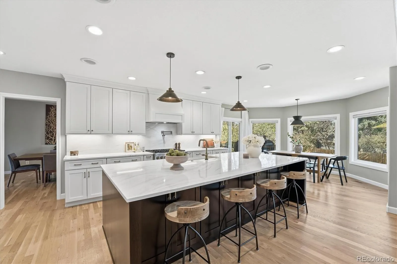Experience elevated living, where timeless design, exceptional scale, & luxurious comfort come together in the heart of Greenwood Village. This beautifully upgraded residence offers a floorplan that is both elegant and highly functional. Every detail has been thoughtfully curated to create a home that feels grand in presentation yet warm in everyday living. Designed to impress at every turn, the home features richly appointed interiors, expansive gathering spaces, and a seamless blend of sophistication and comfort. 3 fireplaces anchor the home with warmth & architectural presence, while the spacious layout offers the ideal backdrop for both refined entertaining and relaxed private living. The stunning new kitchen & numerous upgrades throughout enhance the home’s character and quality, creating an atmosphere of understated luxury. The lower level is an exceptional extension of the home’s living space, offering a full basement with a generous great room, a gym area & a dedicated home theater that transforms everyday evenings into an elevated entertainment experience. Whether hosting guests, enjoying film nights, or creating the ultimate recreation retreat, this level adds impressive versatility and lifestyle appeal. The luxurious primary suite is a true sanctuary—spacious, serene & has radiant heated flooring, designed to provide a sense of retreat from the pace of daily life. Outdoors, a private fenced yard offers beauty, privacy, and room to enjoy quiet moments. This is a home that lives beautifully in every season & location, this is a rare offering for the buyer seeking a residence of true distinction. All New Windows, Newer HVAC, Home Warranty. There is a 4th garage bay off the back yard ideal for yard & sporting gear, Built-in basketball hoop in the garage which has high ceiling and lots of built-in storage,. Gated Community surrounded by many parks and trails. Easy access to light rail and the many wonderful restaurants and amentias of the Denver Tech Center.