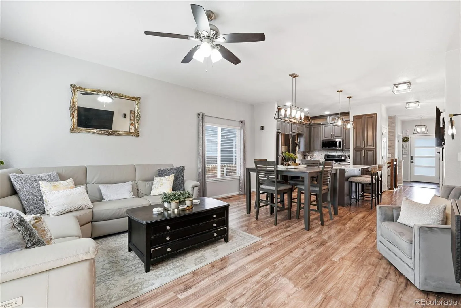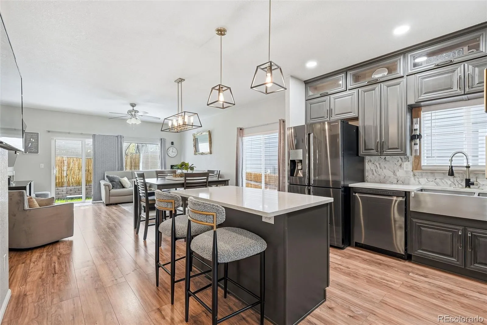 Discover the epitome of effortless living in this meticulously updated Green Valley Ranch home, where every major system has been modernized for your peace of mind. This stylish ranch-style property stands out with a collection of high-end upgrades, including a nearly new roof, furnace, central air conditioning, and a tankless hot water heater. The interior flows seamlessly from the front entry into an open-concept living and dining area, centered around a gourmet kitchen remodeled just five years ago. Outfitted with abundant cabinetry, premium quartz countertops, a spacious pantry, and high-quality appliances, the kitchen serves as a natural gathering point for daily life.