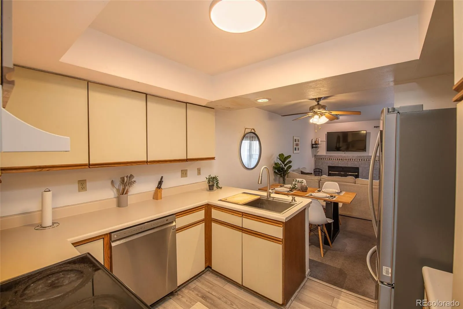 Designed for ultimate convenience, this move-in-ready townhouse comes fully furnished, allowing you to simply unpack and enjoy. The main level features a bright, modern kitchen that flows into a spacious dining and living area, complete with a cozy wood-burning fireplace and large sliding doors opening to a private back patio. A convenient half-bath is also located on this level.Upstairs, you will find two generously sized bedrooms and a full bathroom. The primary bedroom offers direct bathroom access and ample closet space, while the laundry closet is ideally situated on the same floor for easy access. Complete with an attached one-car garage, this home is perfectly positioned on Colorado Springs’ Westside near Garden of the Gods and Jackson Park.