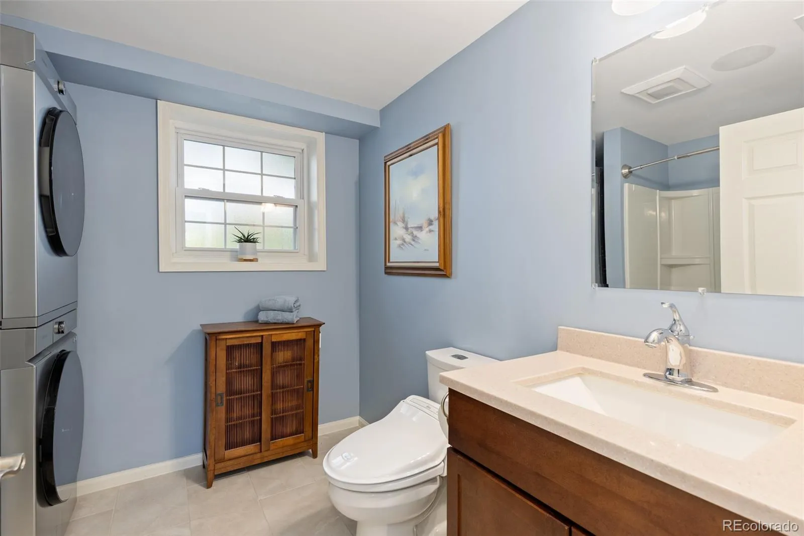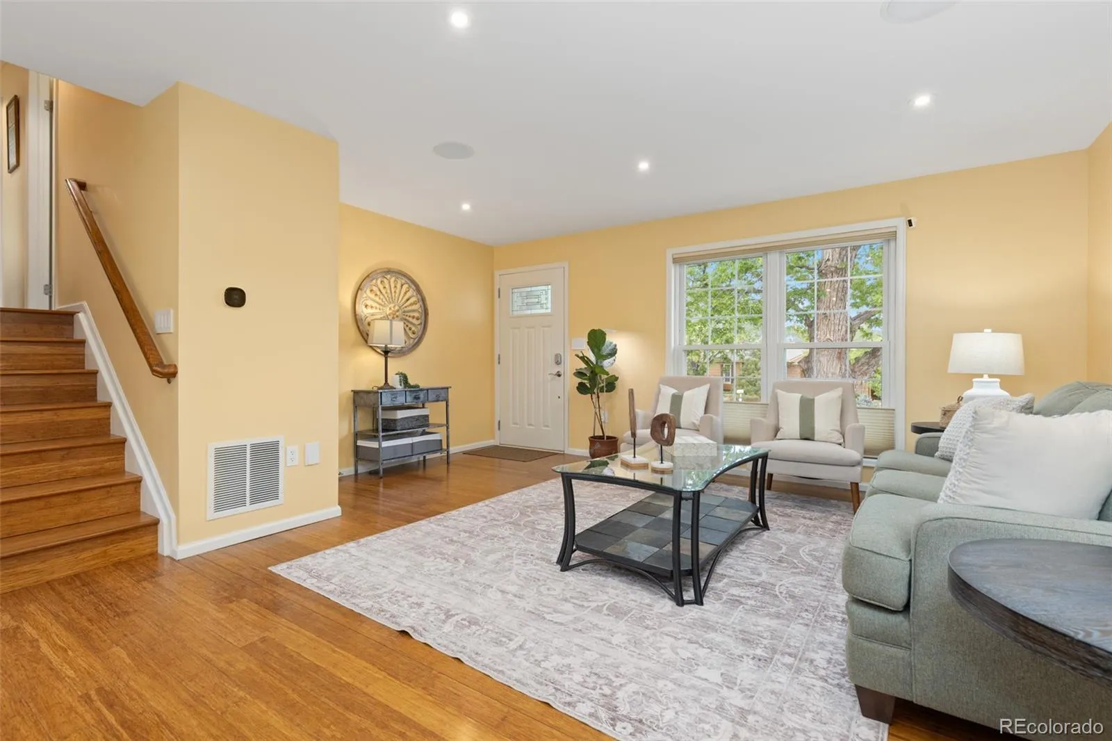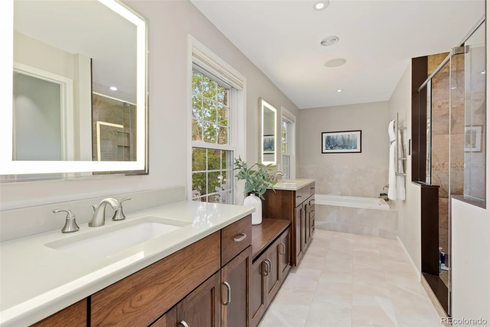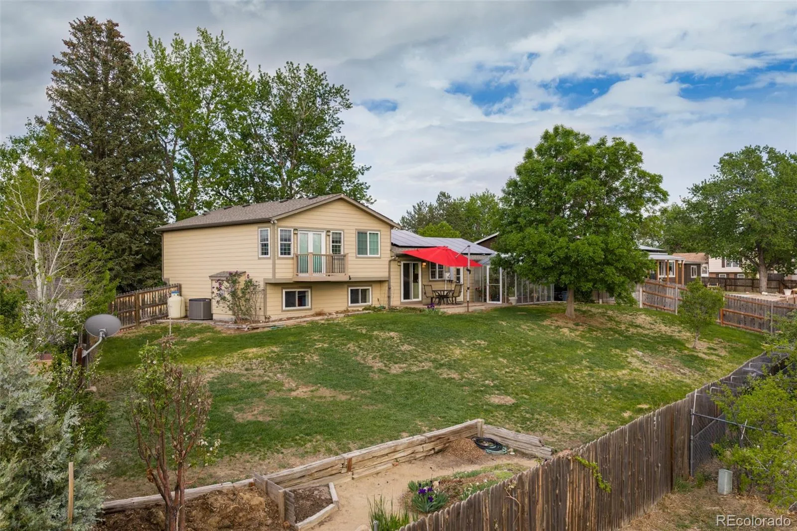 Welcome to this truly one-of-a-kind home in the desirable Lac Amora with unobstructed mountain views! Thoughtfully redesigned, this home features *owned* 7.2kW solar, level 2 EV charger, smart home tech, roof (2025), upgraded plumbing, electrical, central vac + forced-air HVAC, delivering modern comfort + efficiency. From the moment you step inside, notice the meticulous craftsmanship, highlighted by bamboo wood flooring + smooth walls. The inviting front family room flows seamlessly into the fully remodeled kitchen, complete with custom cabinetry, granite counters + high-end JennAir appliances including an induction cooktop + double ovens. The oversized island provides seating for 5—perfect for entertaining or everyday living. Thoughtfully expanded mudroom to create a highly functional space with heated floors, pantry storage + convenient owner’s entry from the garage or yard. The lower level offers a spacious + cozy family room with gas fireplace + custom built-ins, along with a bright bedroom, full bath + stacked washer/dryer. An accessible crawlspace provides ample + accessible storage. Upstairs, you’ll find another bedroom with beautiful mountain views + full hall bath. Retreat to the private primary suite where a balcony showcases breathtaking mountain views. Luxurious 5-piece primary bath features dual vanities, soaking tub perfectly positioned by a window + a spa-like shower with dual independently controlled shower heads. Primary walk-in closet includes Elfa storage system + 2nd laundry area conveniently accessible from both the primary + hall. Fenced backyard offers a brick patio, garden boxes + heated greenhouse—an ideal setting for relaxing or cultivating your own garden oasis. Perfectly located with easy access to Denver, Boulder, + DIA, this home also enjoys proximity to exceptional amenities, including expansive trail systems, rec centers, playgrounds + more. This is a rare opportunity to own a home of this caliber in Broomfield with stunning views!