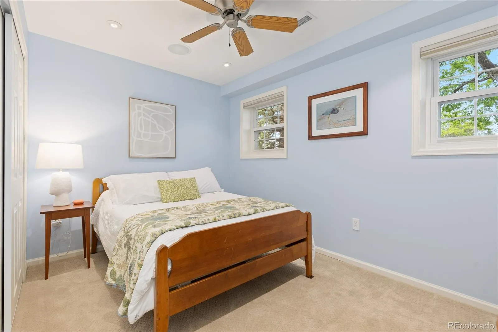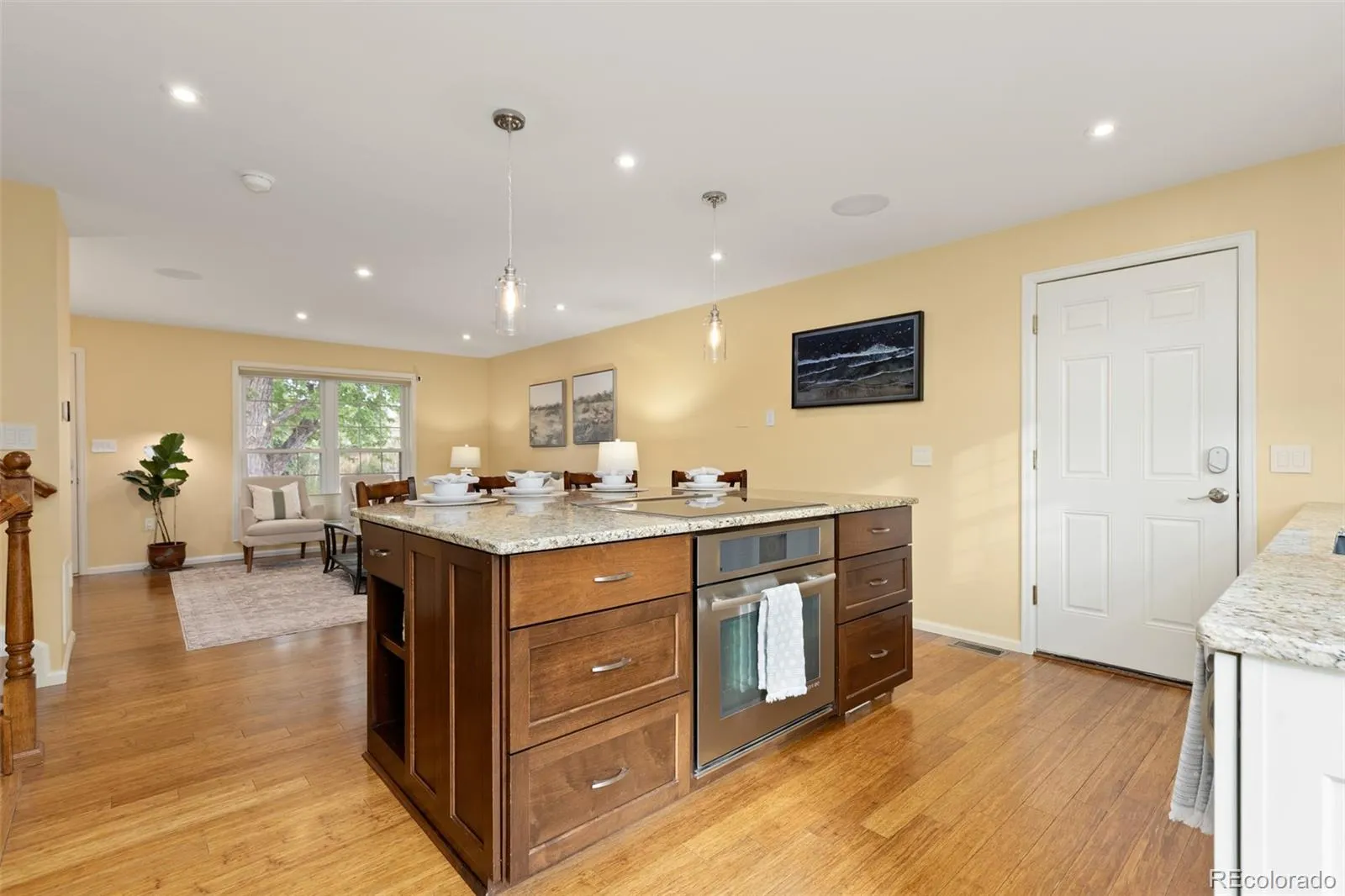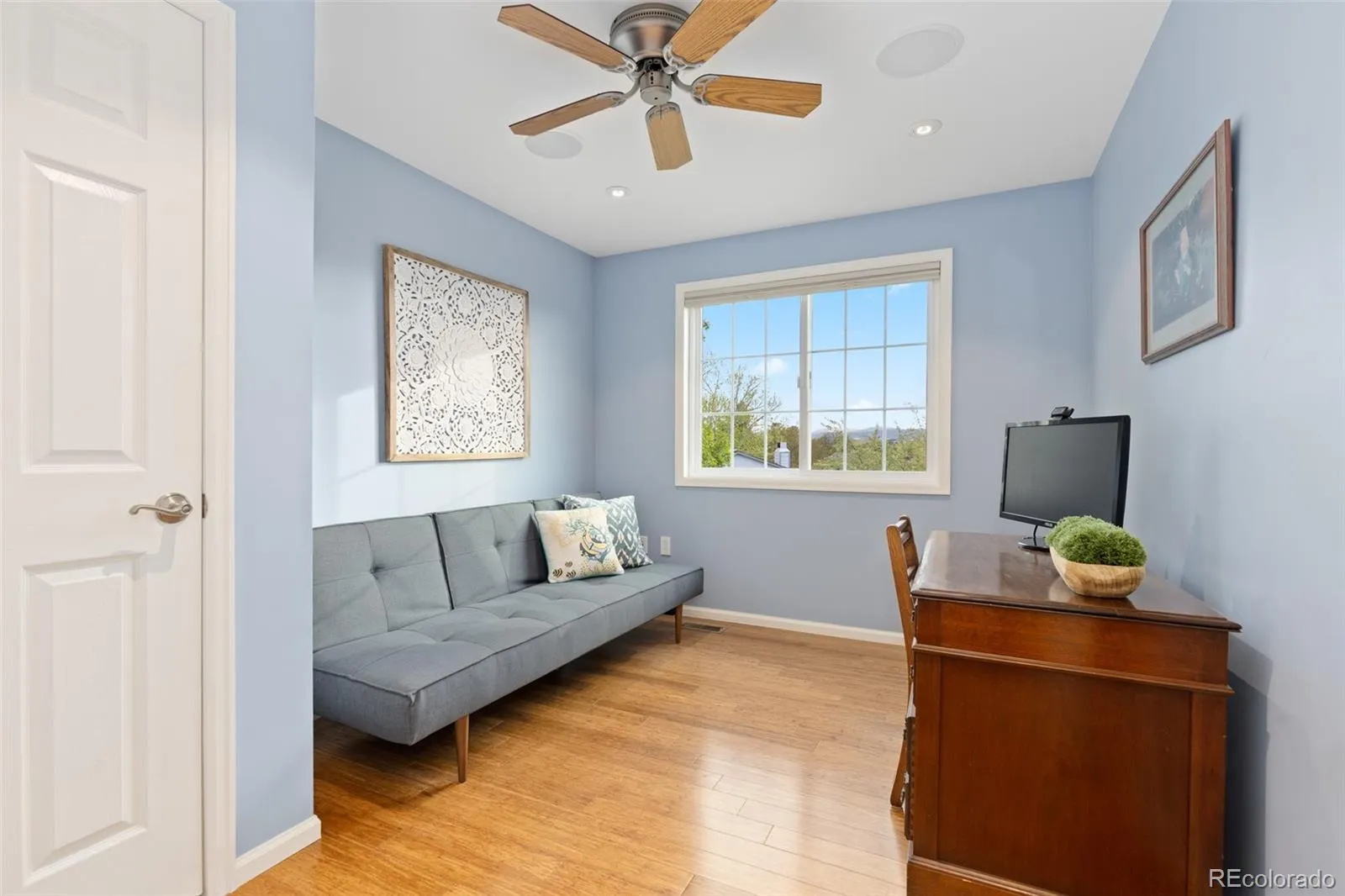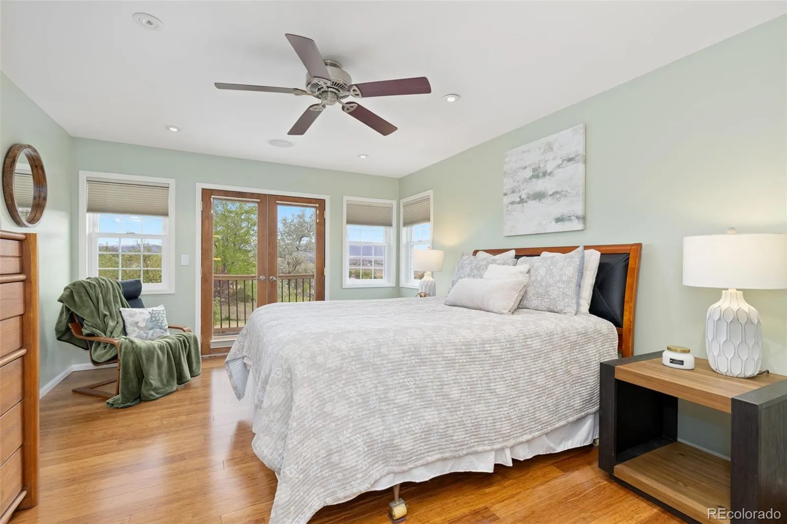 Welcome to this truly one-of-a-kind home in the desirable Lac Amora with unobstructed mountain views! Thoughtfully redesigned, this home features *owned* 7.2kW solar, level 2 EV charger, smart home tech, roof (2025), upgraded plumbing, electrical, central vac + forced-air HVAC, delivering modern comfort + efficiency. From the moment you step inside, notice the meticulous craftsmanship, highlighted by bamboo wood flooring + smooth walls. The inviting front family room flows seamlessly into the fully remodeled kitchen, complete with custom cabinetry, granite counters + high-end JennAir appliances including an induction cooktop + double ovens. The oversized island provides seating for 5—perfect for entertaining or everyday living. Thoughtfully expanded mudroom to create a highly functional space with heated floors, pantry storage + convenient owner’s entry from the garage or yard. The lower level offers a spacious + cozy family room with gas fireplace + custom built-ins, along with a bright bedroom, full bath + stacked washer/dryer. An accessible crawlspace provides ample + accessible storage. Upstairs, you’ll find another bedroom with beautiful mountain views + full hall bath. Retreat to the private primary suite where a balcony showcases breathtaking mountain views. Luxurious 5-piece primary bath features dual vanities, soaking tub perfectly positioned by a window + a spa-like shower with dual independently controlled shower heads. Primary walk-in closet includes Elfa storage system + 2nd laundry area conveniently accessible from both the primary + hall. Fenced backyard offers a brick patio, garden boxes + heated greenhouse—an ideal setting for relaxing or cultivating your own garden oasis. Perfectly located with easy access to Denver, Boulder, + DIA, this home also enjoys proximity to exceptional amenities, including expansive trail systems, rec centers, playgrounds + more. This is a rare opportunity to own a home of this caliber in Broomfield with stunning views!