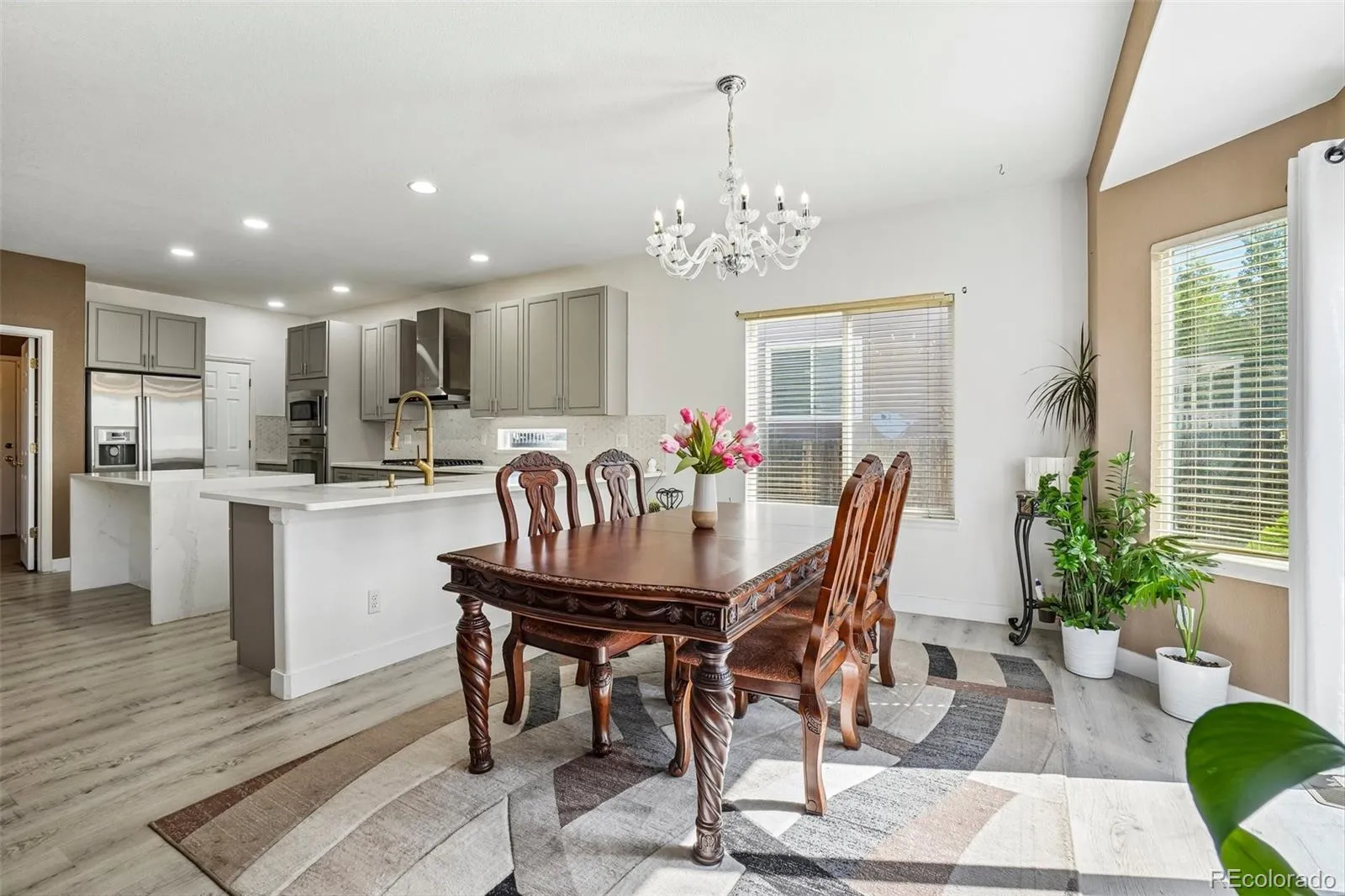 Additional highlights include luxury flooring, updated finishes, open layout, and move-in ready condition.
