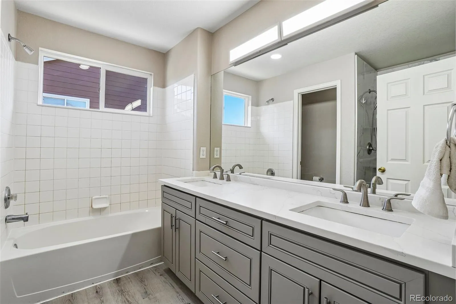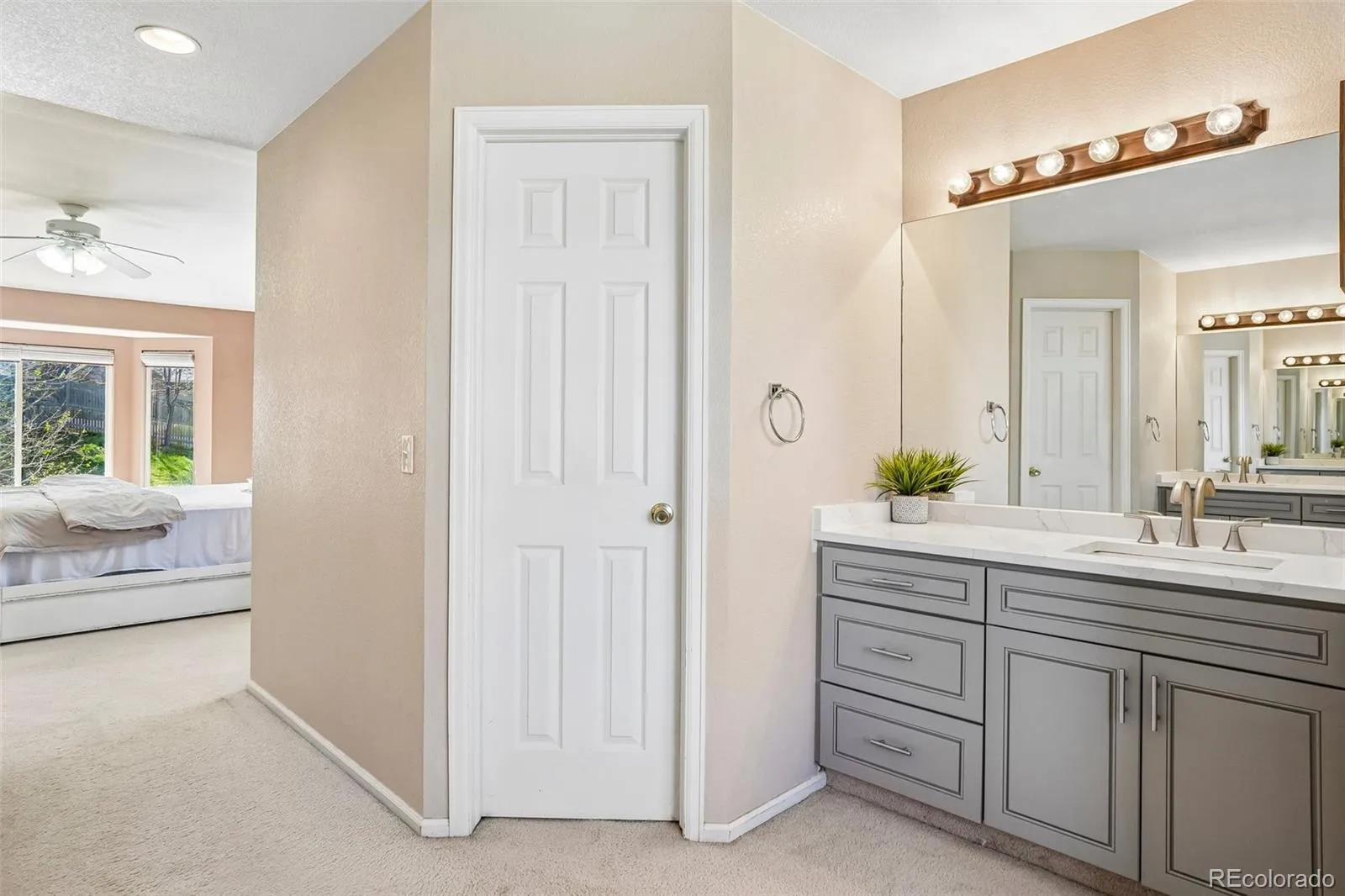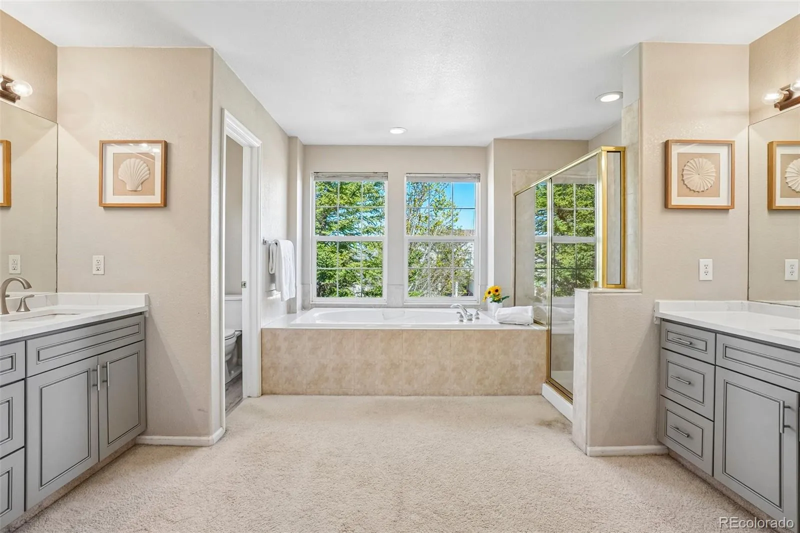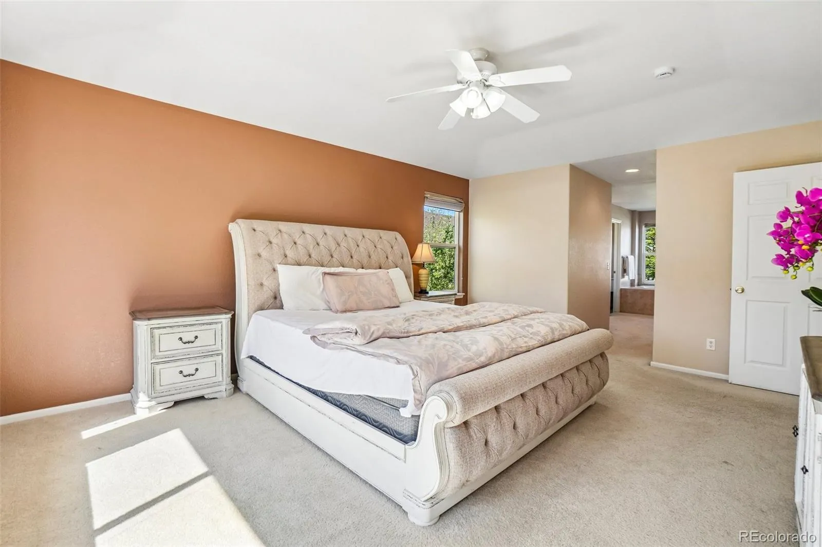 The primary suite serves as a private retreat with a bay window, generous layout and two walk-in closets. The luxurious five piece bath features an updated vanity with dual sinks and Quartz countertops, soaking tub, and separate shower. A rare and functional bonus, the home also includes an updated five piece hall bath, providing added convenience. With a main floor bedroom and adjacent powder bath, there’s flexibility for a home office, guest room, or multi-generational living. Enjoy Colorado outdoor living in the private backyard with extended patio, offering space to relax, garden, or entertain.