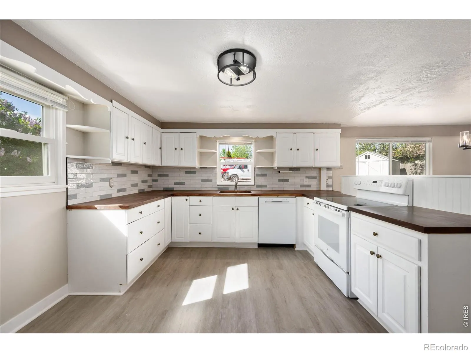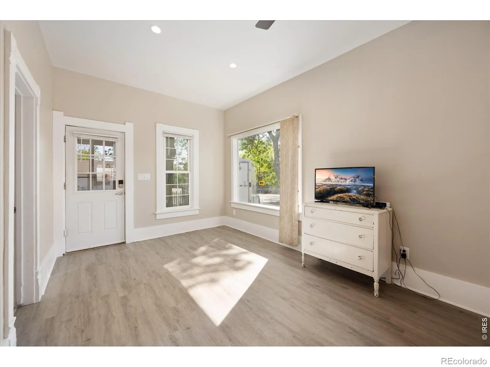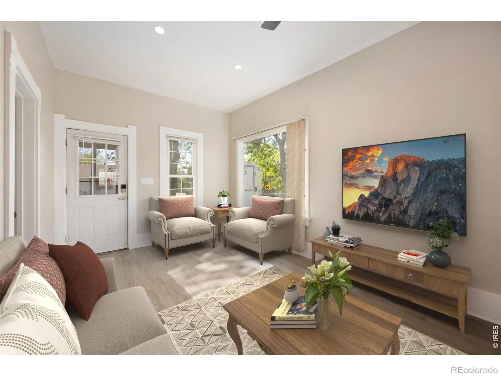 This charming turn-of-the-century cottage is tailor made for first time buyers or folks looking to downsize. The seller is offering a $10,000 concession to help with closing costs with a full priced offer. Situated on a nearly quarter acre lot shaded by mature trees in a quiet, tucked away neighborhood close to downtown, this home features a bright, open layout and loads of character! The home is approached through a cute white picket fence leading to a covered front porch. Upon entry, you are greeted with an expansive main living area featuring a large picture window that floods the home with natural light and much of the original late 19th century style trim. The large kitchen has ample counter space and is open to the expansive dining area, and features plenty of room for a coffee nook. Mini-splits installed in 2023 provide cooling and heating, and there’s also a wall-mount furnace for those really cold nights. There’s off-street parking in front and plenty of room for your toys behind the property. There is a fully fenced yard featuring a fire pit in the rear for outdoor living. About half the property is not fenced and faces Railroad Ave, making access for large vehicles easy! A pad for a future garage already exists. This well cared for home features several updates. The roof is 5 years old, the mini-splits are 3 years old, the kitchen features new butcher block countertops, a new modern stainless sink and a new dishwasher, and you will find new light fixtures, new interior paint and new flooring throughout the home. The sewer line was replaced in 2025. You won’t find more value at this price point in Loveland. Don’t miss this one-of-a-kind home!