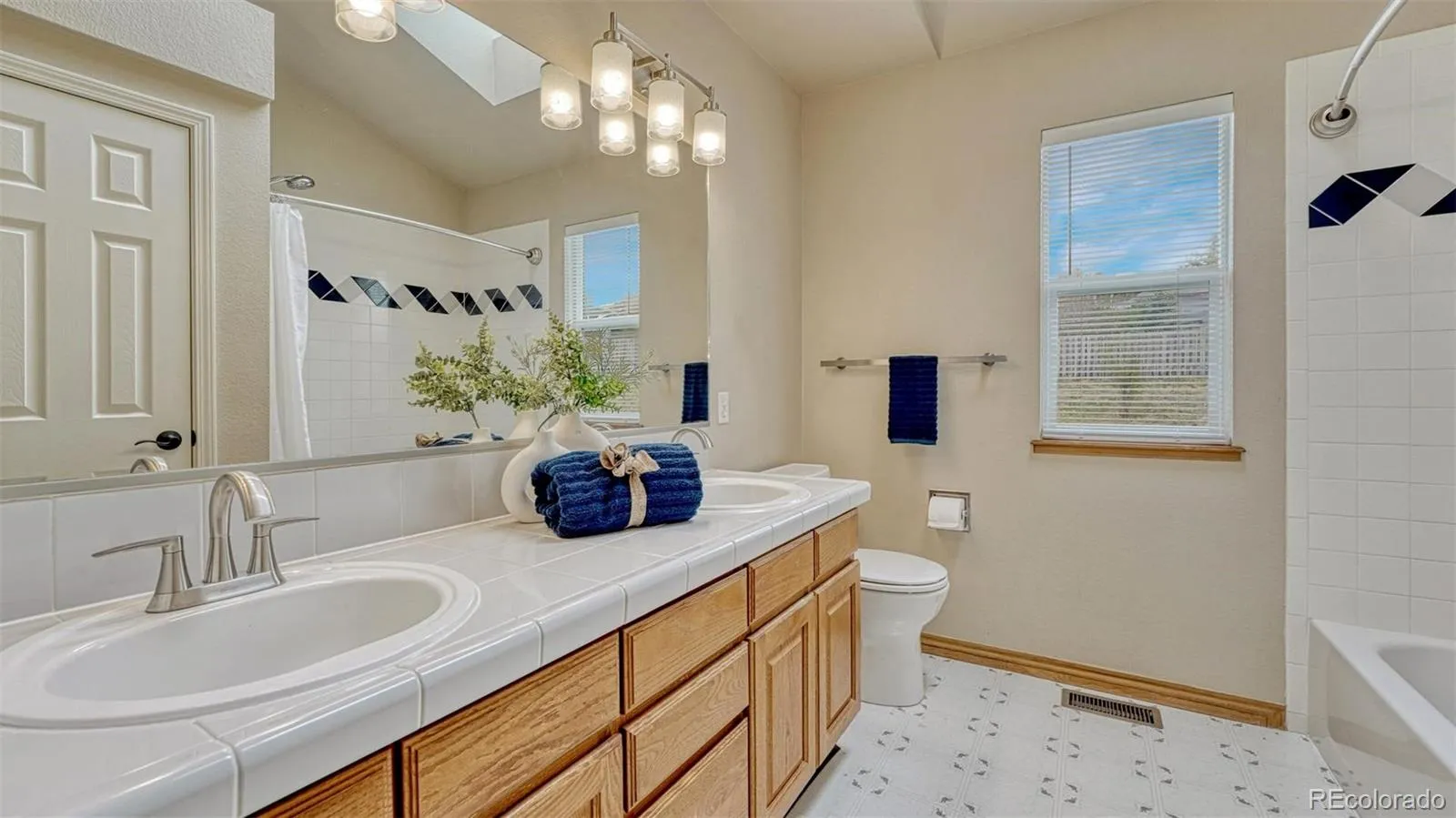 luxe 5-piece bath with double vanities, massive tub, and shower. Three additional bedrooms and a full bath complete the