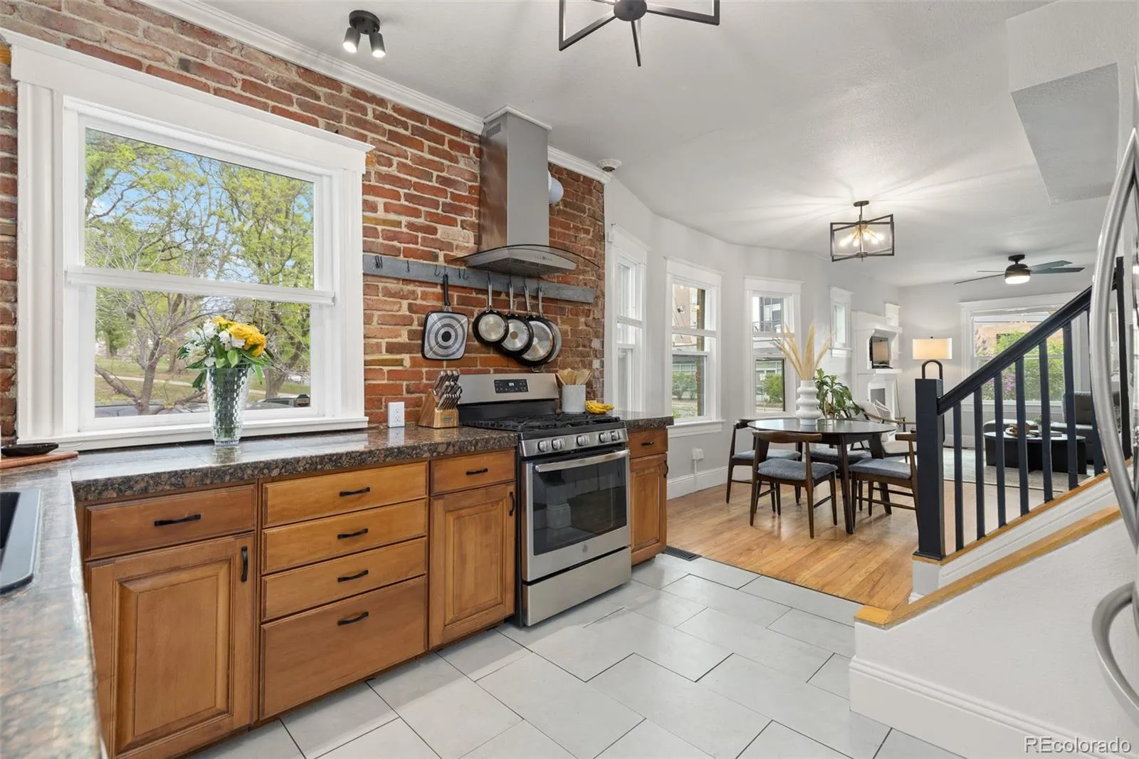 Rare opportunity to own a historic corner-lot home directly on Jefferson Park – offering unobstructed views, unbeatable walkability, and iconic Denver lifestyle. Situated just steps from Empower Field at Mile High, this 4 bedroom, 2 bath home blends timeless character with an irreplaceable location. From the front porch, take in sweeping city views, ideal setting for morning coffee, evening sunsets or game-day energy right outside your door. Once inside, you’re welcomed by an open floor plan filled with natural light and modern living. The thoughtfully updated kitchen features exposed brick, stainless steel appliances, and a seamless flow into the main living space- ideal for both everyday living and entertaining. The main level includes a bedroom and an updated full bathroom, offering flexibility for guests or convenient main-floor living. Upstairs, the primary bedroom offers 3 closets and a large, updated bathroom. A second spacious bedroom features its own balcony overlooking the park. The basement provides a versatile 4th bedroom-perfect for a home office, gym, or additional guest space. Live just minutes from downtown Denver while enjoying direct access to green space, restaurants and entertainment. Whether you’re drawn to the views, the location, or the character, this Jefferson Park home delivers a truly unique opportunity.