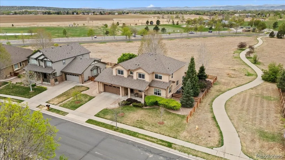 Rare opportunity to own a stunning home in the highly sought-after Redleaf neighborhood in Broomfield! This exceptional property backs directly to Broomfield Commons—over 300 acres of open space—offering breathtaking views of the mountains, Denver skyline, and peaceful meadow.