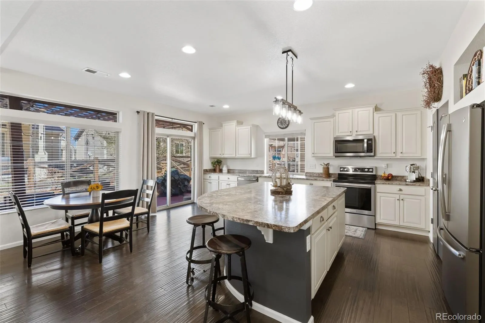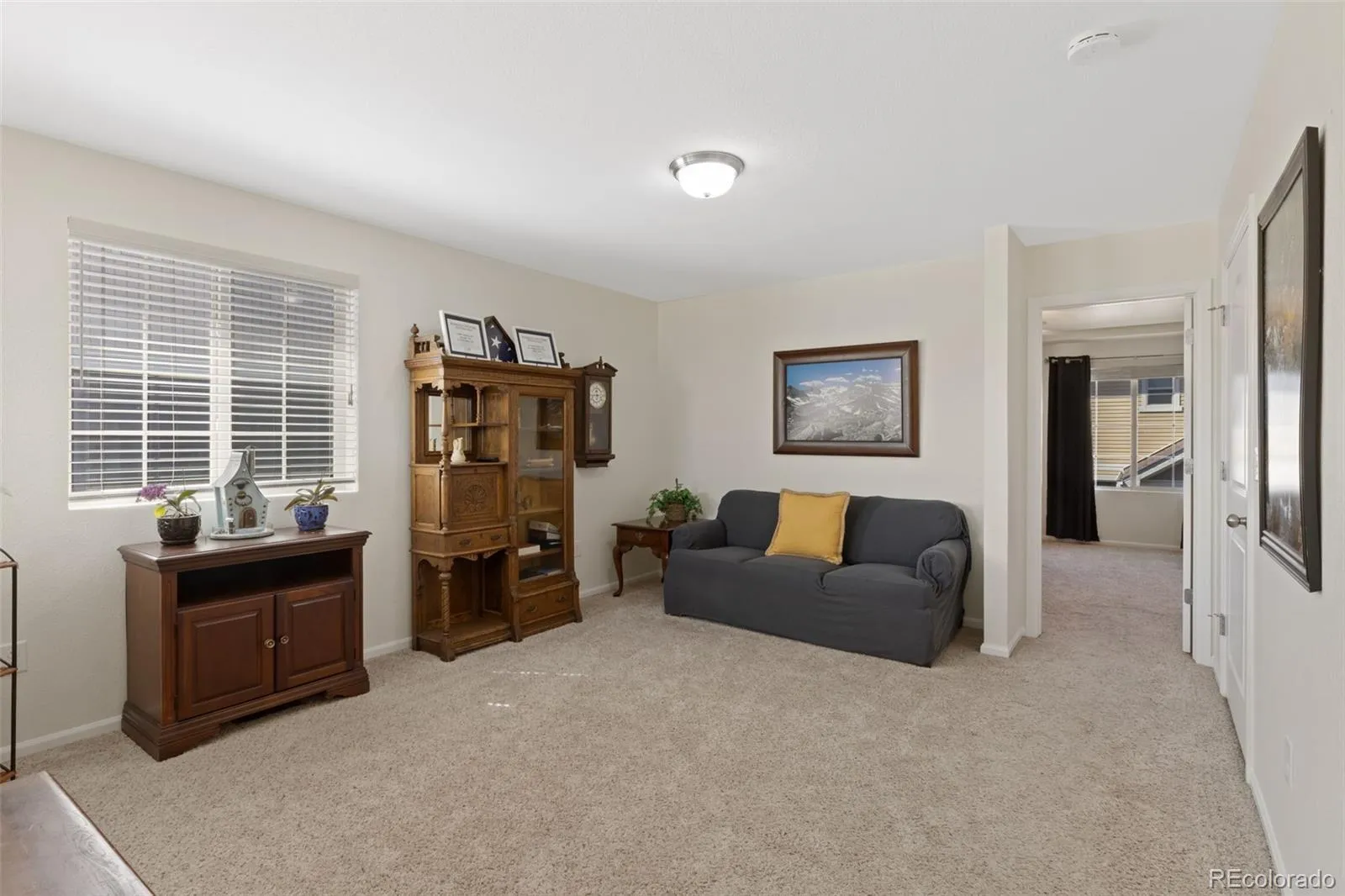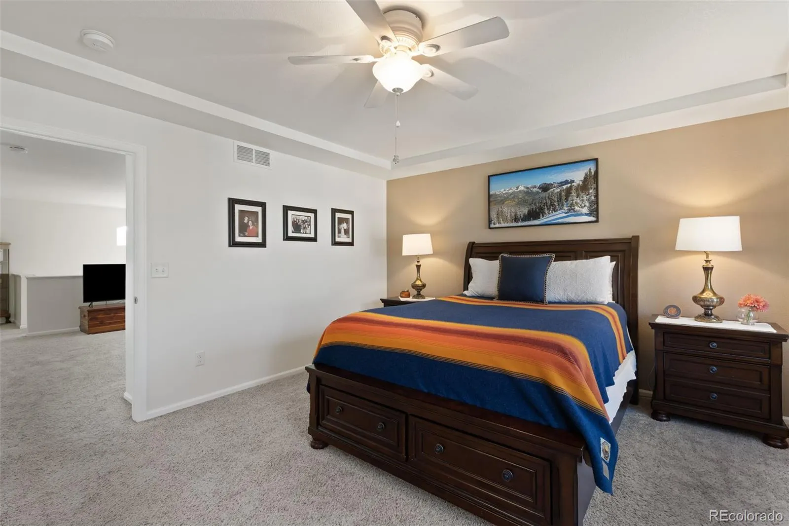 Discover this beautifully maintained, move-in ready home in Banning Lewis Ranch. Located just steps from Climbers Park, across from Cottonwood Preserve, and a short walk to the water park, gym, and Banning Lewis Academy K-5, this home combines comfort with convenience. Enjoy extra space throughout, with solid flooring on the main level. The covered front porch is perfect for relaxing and taking in the meticulously landscaped front yard. Inside, you’ll be greeted by a welcoming entryway, a private powder bath, and an open dining area that accommodates a large table. The bright family room flows into the kitchen, which features generous counter space, cabinets with pullouts, and stainless steel appliances—making it an ideal hub for cooking and gathering. Upstairs, a spacious loft offers flexibility for work or play, while a cozy nook adds more possibilities. Retreat to the primary suite complete with a double vanity and a large walk-in closet. Two additional bedrooms and a hall bath provide comfortable spaces for family or guests, and the laundry room is conveniently located on the upper floor. This home includes air conditioning and ceiling fans for added comfort. The backyard features a spacious patio with a pergola, and all rear-facing windows have a special tint for privacy and sun protection.