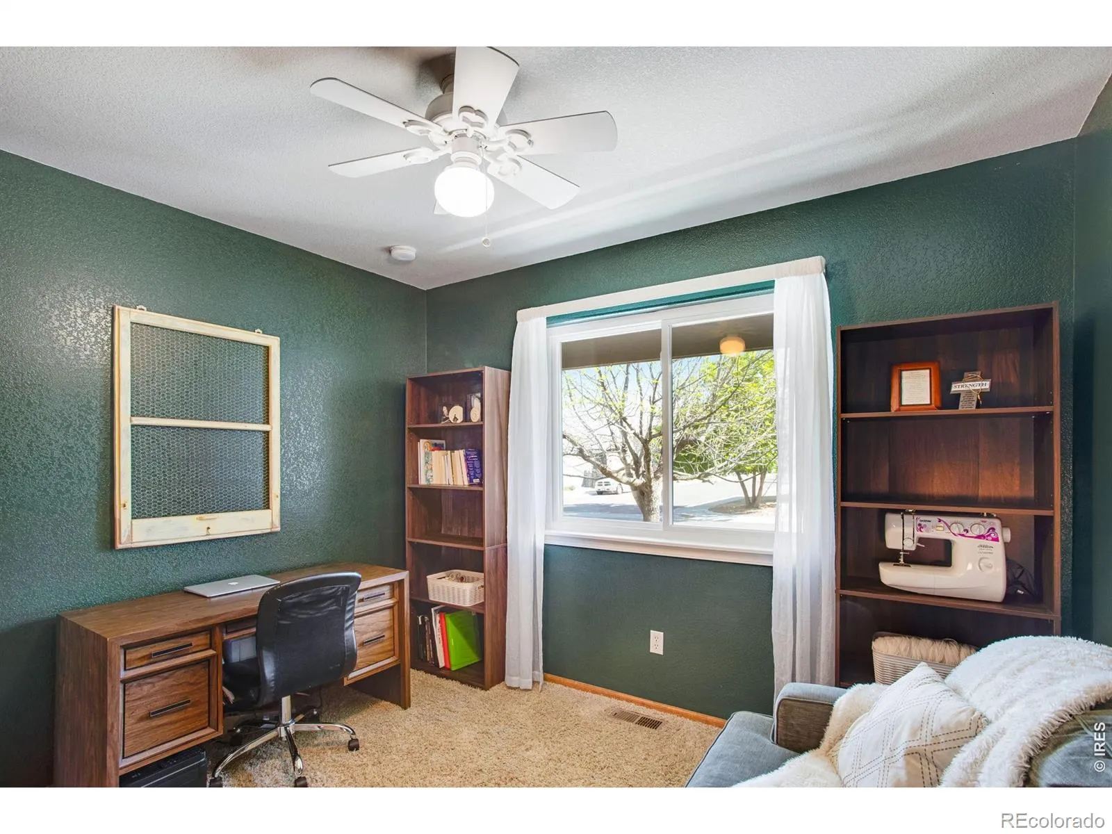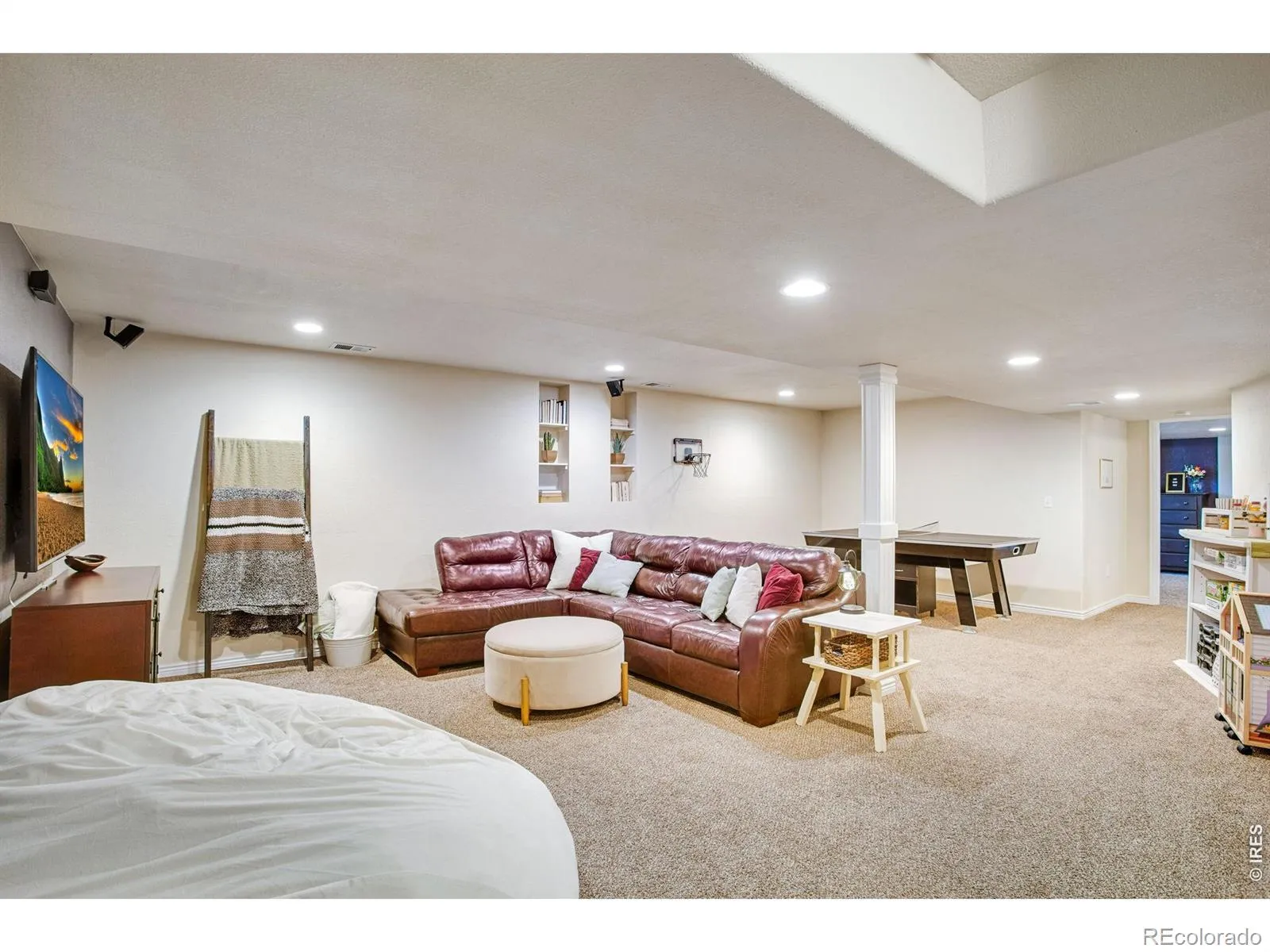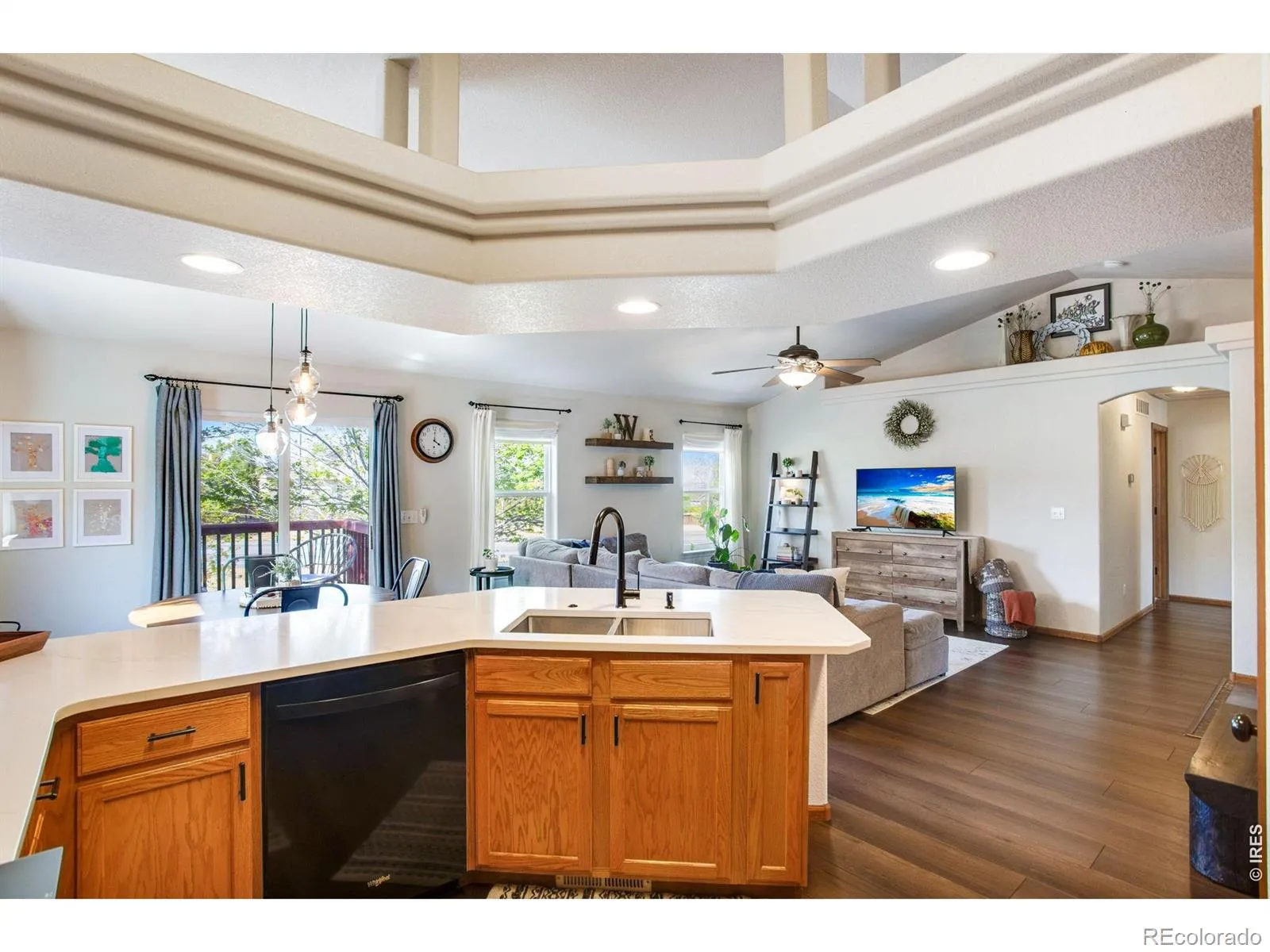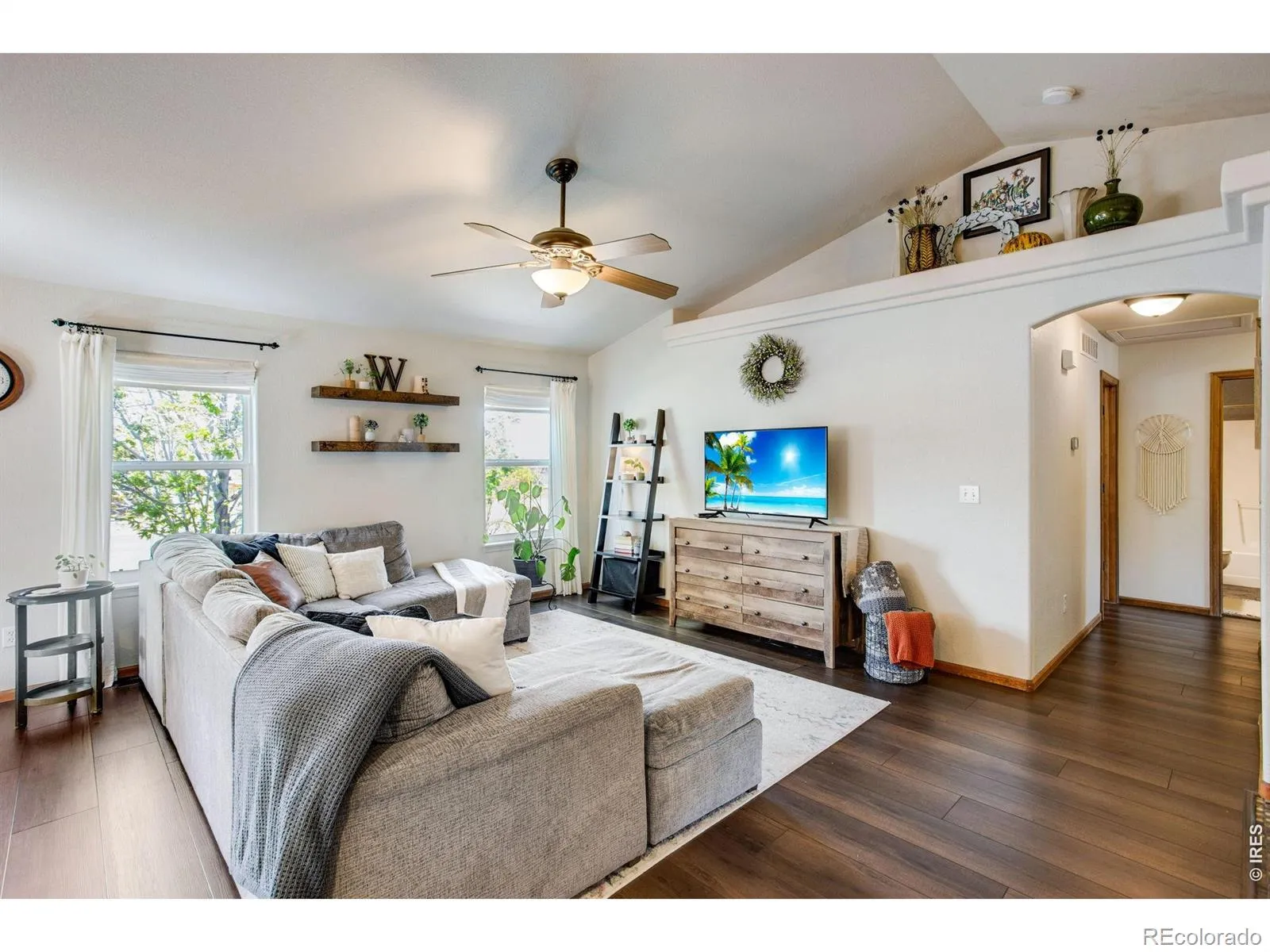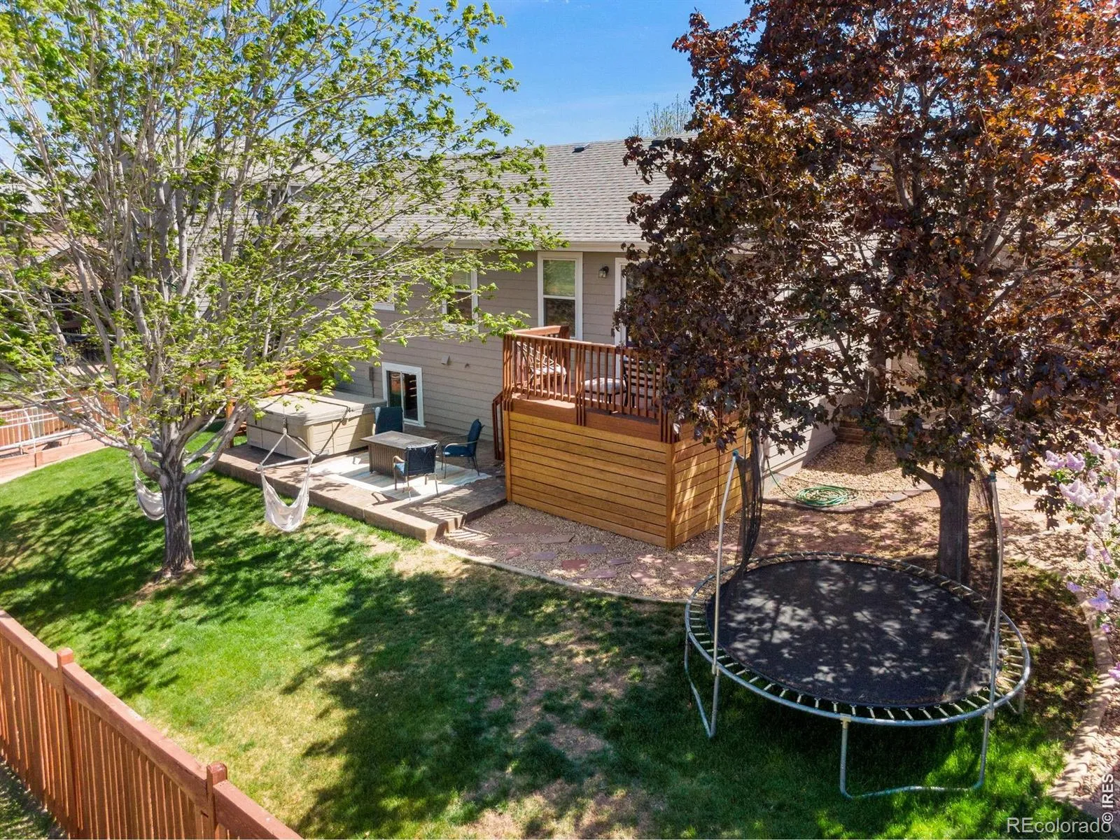 FANTASTIC FOOTHILL & CITY LIGHT VIEWS FROM YOUR DECK! Conveniently located between Loveland & Ft. Collins awaits this beautiful ranch style home in a foothill setting. 5 bdrms, 3 baths & 3 car garage. Great room, dining room & kitchen w/11′ cathedral ceilings. Updated kitchen w/Quartz countertops & breakfast bar & wood-like LVP flooring. Dining room w/tile flooring & sliding glass door opening onto 10′ x 8′ low maintenance composite deck. Primary suite w/4 piece bath & walk-in closet. Garden level finished basement features a well-designed family retreat w/26′ x 17′ family room/game room, 2 large bedrooms & custom 3/4 bath. Navien tankless recirculation water heater. Lennox furnace with A/C & humidifier. Garage double side: 23′ 7″ deep x 19′ 4″ wide & garage single side 19′ 4″ deep x 11′ wide, heated garage, built-in workbench & shelving, service door to back yard. 8′ x 5′ storage shed. 21’6″ x 14′ stamped concrete patio. 7′ 2″ x 6′ 8″ hot tub included. Privacy fenced back yard with sprinkler system and concrete landscape edging. Home abuts greenbelt, walking and biking trails. Minutes away from Mehaffey Park and Olde Gof Course. Mehaffey Park Link: Golf Course Link: