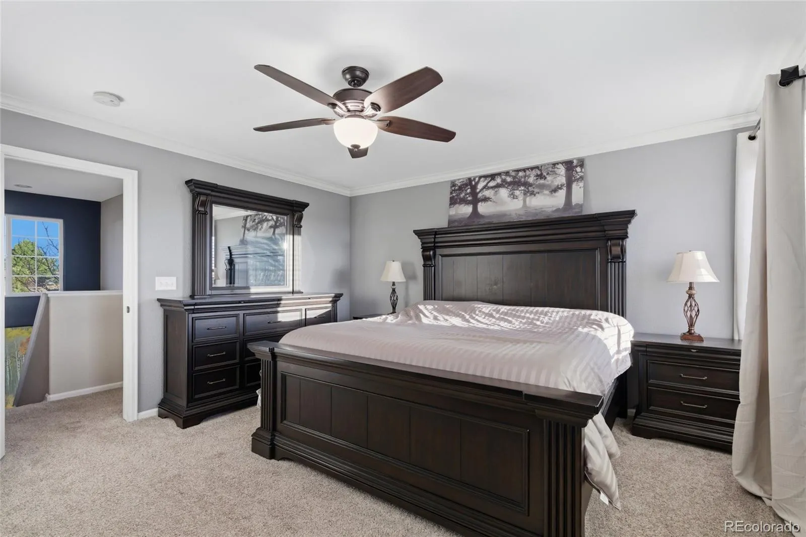 Welcome to 908 Crenshaw St in the highly sought-after Castlewood Ranch community of Castle Rock, CO—a 5-bedroom, 3-bathroom home offering 2,919 square feet of thoughtfully designed living space on a spacious 9,801 sq ft lot backing directly to Lost Canyon Ranch Open Space. This home is perfectly positioned to capture breathtaking sunrise views from the back deck, where you can enjoy peaceful mornings, shaded afternoons, and unobstructed natural scenery. With no direct rear neighbors, you’ll experience privacy, quiet, and frequent wildlife sightings—an increasingly rare find in Castle Rock. Inside, the main level features an open-concept great room with abundant natural light and expansive windows that bring the outdoors in. The layout is ideal for both everyday living and entertaining, creating a seamless flow between the kitchen, dining, and living spaces. Upstairs, you’ll find four bedrooms, making this an ideal home for larger households or those needing flexible space for work or guests. The walk-out basement includes an in-law suite, providing excellent options for hosting guests. The home has been well maintained and thoughtfully improved with a new furnace and whole-home humidifier, a newer roof, ceiling fans in all upstairs bedrooms, and updated carpet in the basement. Outdoor living is a standout feature, with an expansive organic garden and a large backyard that opens directly to miles of trails and open space. The mature honey locust tree in the front yard provides natural shade, helping keep the home cool during warmer months. Located on a quiet cul-de-sac, this home offers a true neighborhood feel with low traffic, friendly neighbors, and a strong sense of community. You’re within close proximity to top-rated schools, parks, and endless walking and biking trails. Homes backing to open space with this level of privacy, views, and functional layout are rare in Castlewood Ranch.