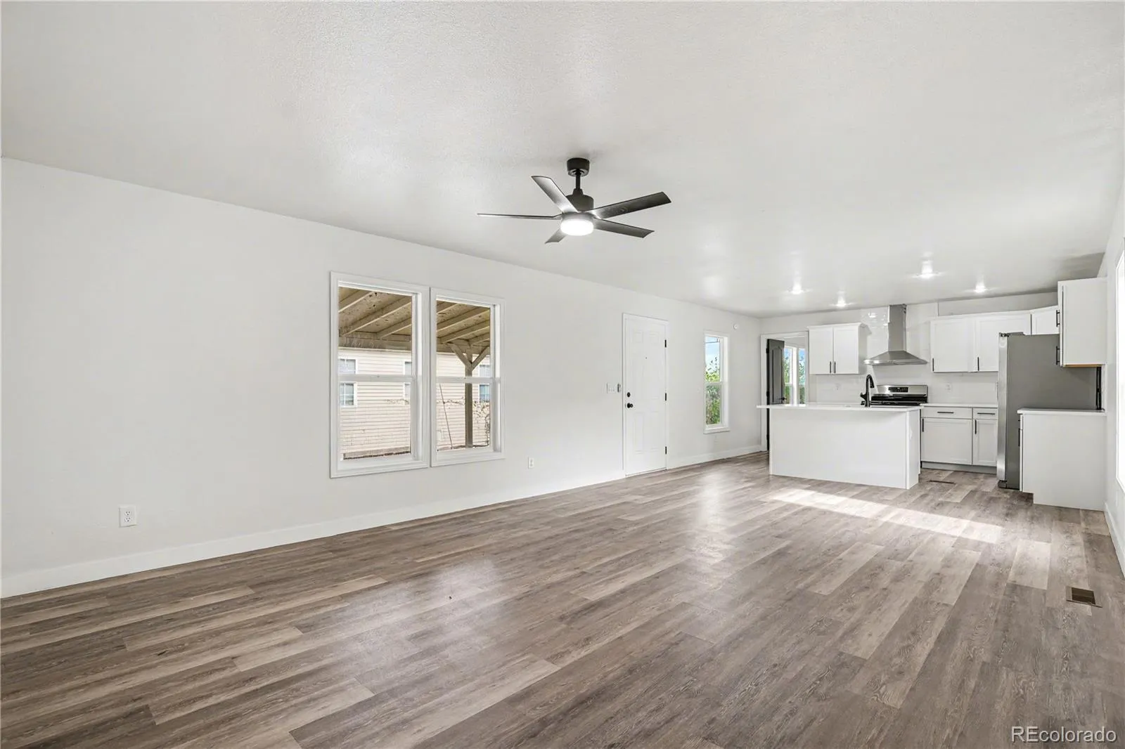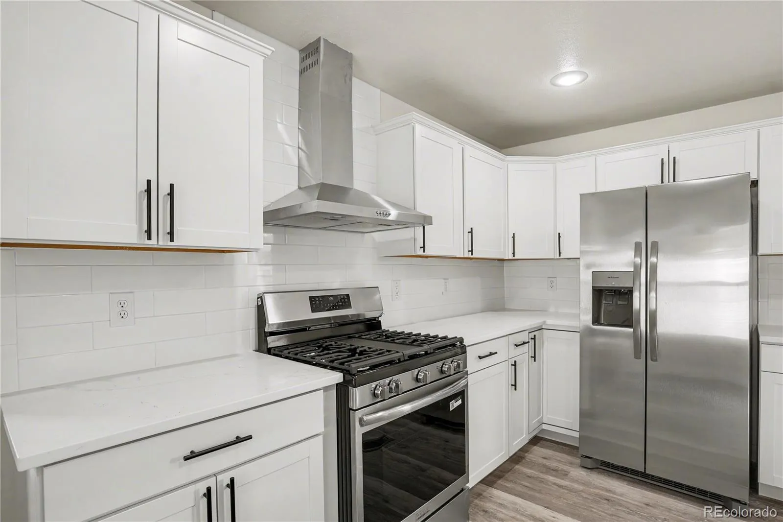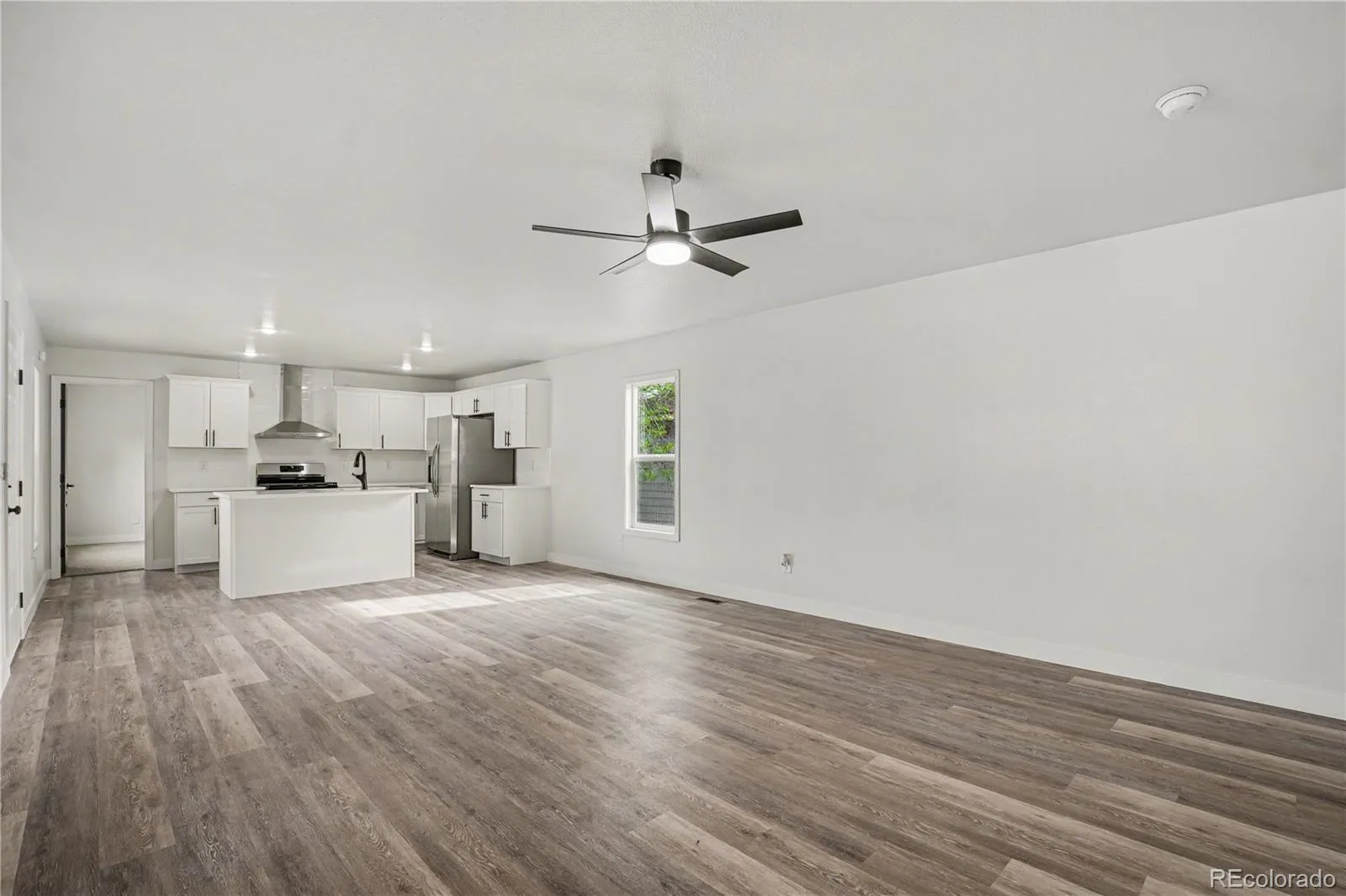 Beautiful remodeled ranch home on permanent foundation! Custom modern white shaker kitchen, large kitchen island with breakfast bar, Stainless Steel Appliances, Vent Hood, Gas range/oven, modern tile backsplash, undermount sink, New Carpet, New Flooring, New 2 tone paint inside and out, private master bath. Close to I 76 and easy commute into Denver Metro. Agent owned. Buyer to verify sq ft, and room measurements.
