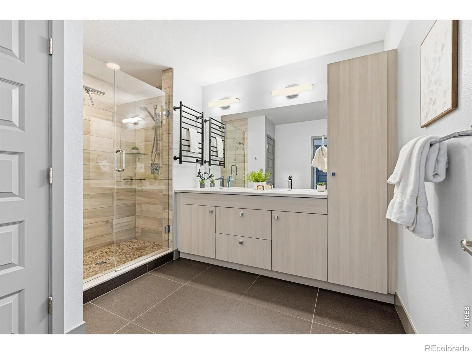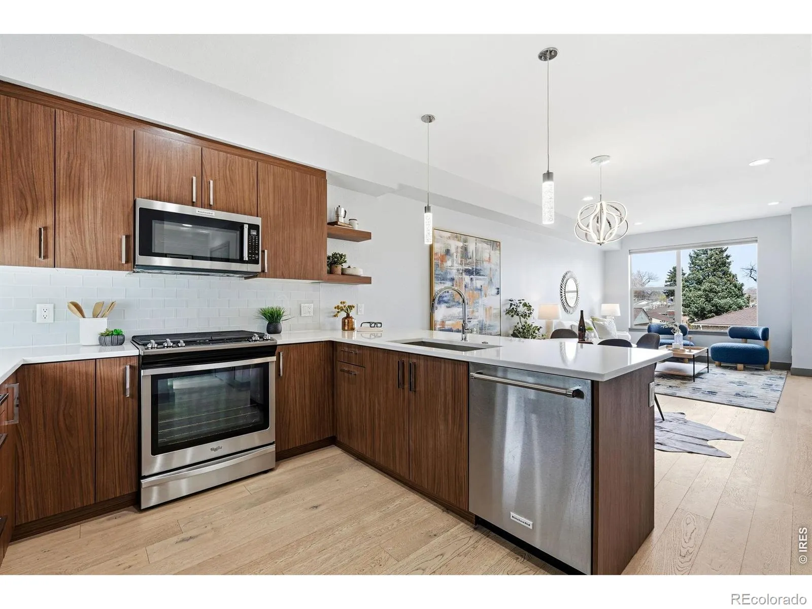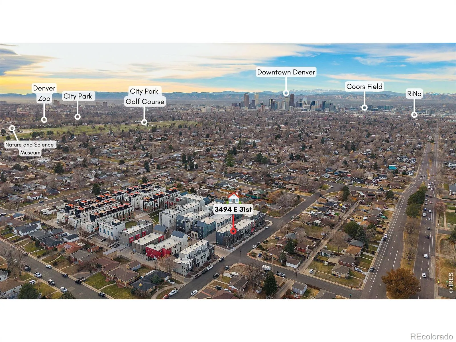 This light-filled contemporary townhome offers a functional layout in a prime Denver location. The entire interior, including trim, has just been freshly painted, making the home feel crisp, clean and truly move-in ready. The entry level features a private bedroom with a full en-suite bath. There is direct access to a rare two-car garage, an uncommon feature for this community, complete with a finished epoxy color-chip floor only a couple years old and an EV charger. The main living level includes an open-concept kitchen, dining, and living area with tall ceilings and oversized windows letting in tons of natural light. The kitchen showcases quartz countertops, warm-neutral cabinets, stainless steel appliances and a spacious breakfast bar. There is plenty of room for a large dining room table under the brand new, modern light fixture. Then cozy up in the living room to the oversized fireplace. Head upstairs where the entire area is dedicated to the primary suite, offering a spacious bedroom, large en-suite bathroom with dual sinks and a walk-in shower. Laundry is right outside of the bedroom door – very convenient! Step out to your private balcony with BOTH city and mountain views. There is a gas line ready for your BBQ. A perfect space to relax or entertain. Located minutes from City Park, the Denver Zoo, the Museum of Nature & Science, City Park Golf Course, and nearby dining and shopping. Modern living in the heart of Denver. Schedule your showing today! www.liveat3494.com