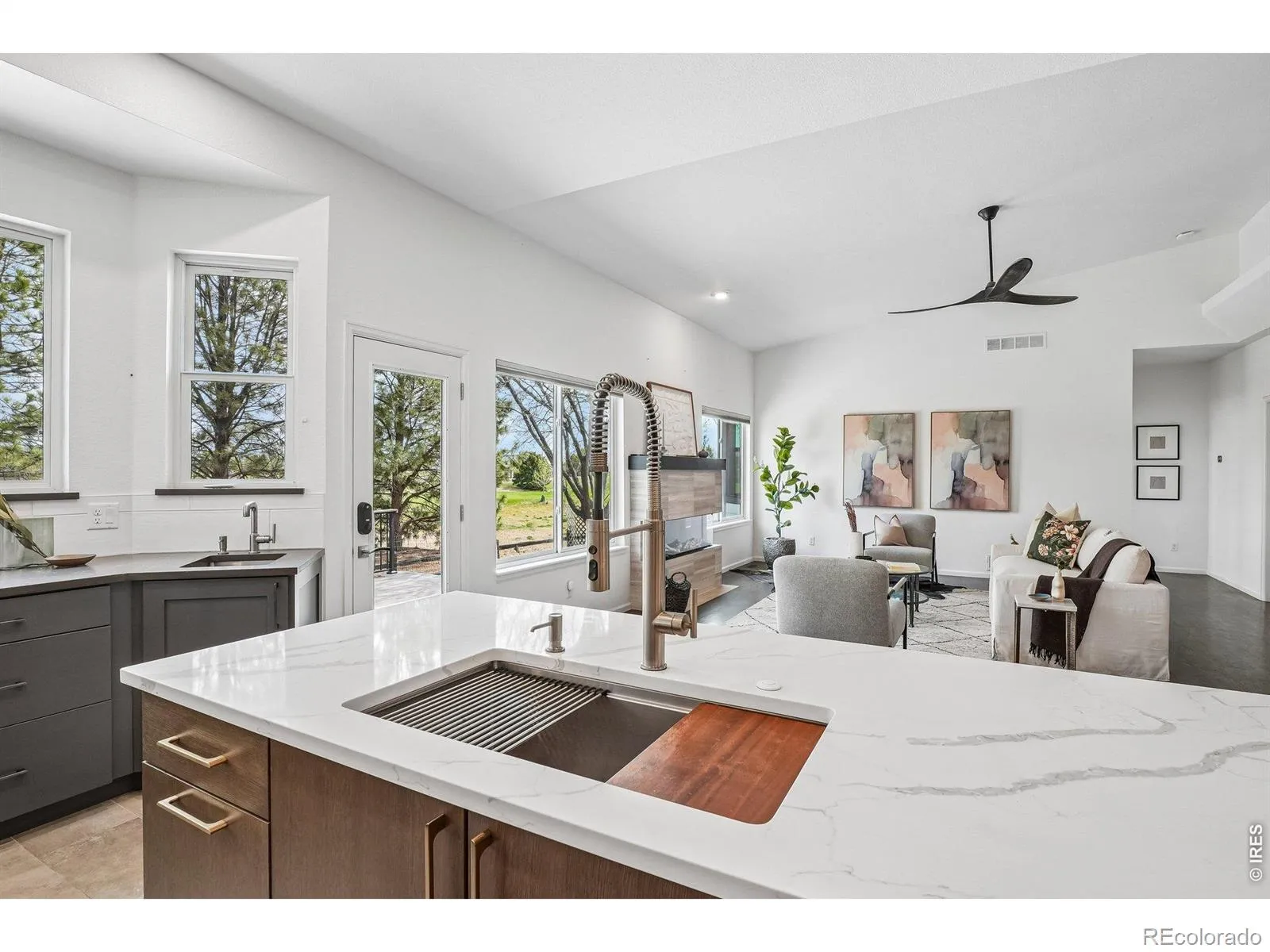 Elevated living awaits in this FULLY RENOVATED, SOUTH FACING RANCH floorplan home backing to the 13th hole at Ute Creek Golf Course. This may be the nicest home that you will find on your tour! Impressive curb appeal awaits with blonde brick and new, black framed windows. Enter through a gorgeous new front door onto real hardwood floors and notice the space created by the 10 foot ceilings. A large dining room and massive living room anchored by a stunning fireplace frame the new windows looking out over natural landscaping to the pristine golf course beyond. And the designer curated kitchen will blow your mind… this is not what the original builder had in mind… it’s so much better. Totally new and expanded with top of the line cabinetry, counters and appliances while also offering a secondary walk-in pantry/kitchen with counter space, second dishwasher and insta-hot water, you’d be hard pressed to find a nicer kitchen at this price anywhere in the area. Seriously stunning! Flow to the brand new composite deck and imagine the amazing times you’ll have here. The primary suite continues the WOW fest with a stunning primary suite offering a magazine worthy bathroom with brand new tile, vanity, free standing tub and frameless shower surround. This one will not disappoint. With two secondary bedrooms, a full sized laundry room and one more full bath, the first floor offers a special opportunity for impressive one level living. The basement is massive allowing for tons of storage or future expansion. It’s also where you’ll find the brand new heat pump boasting outstanding efficiency. And if that isn’t enough storage space, you’ll love the 2.5 car garage which gives a little more room for your toys. Location…check. Incredible level of finish…check. One level living…check. If these points are on your wish list, look no further. Let’s Get You Home!