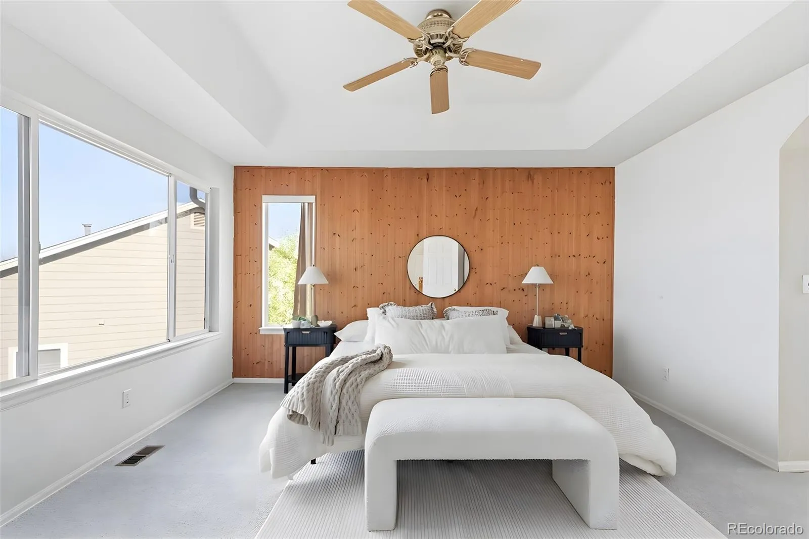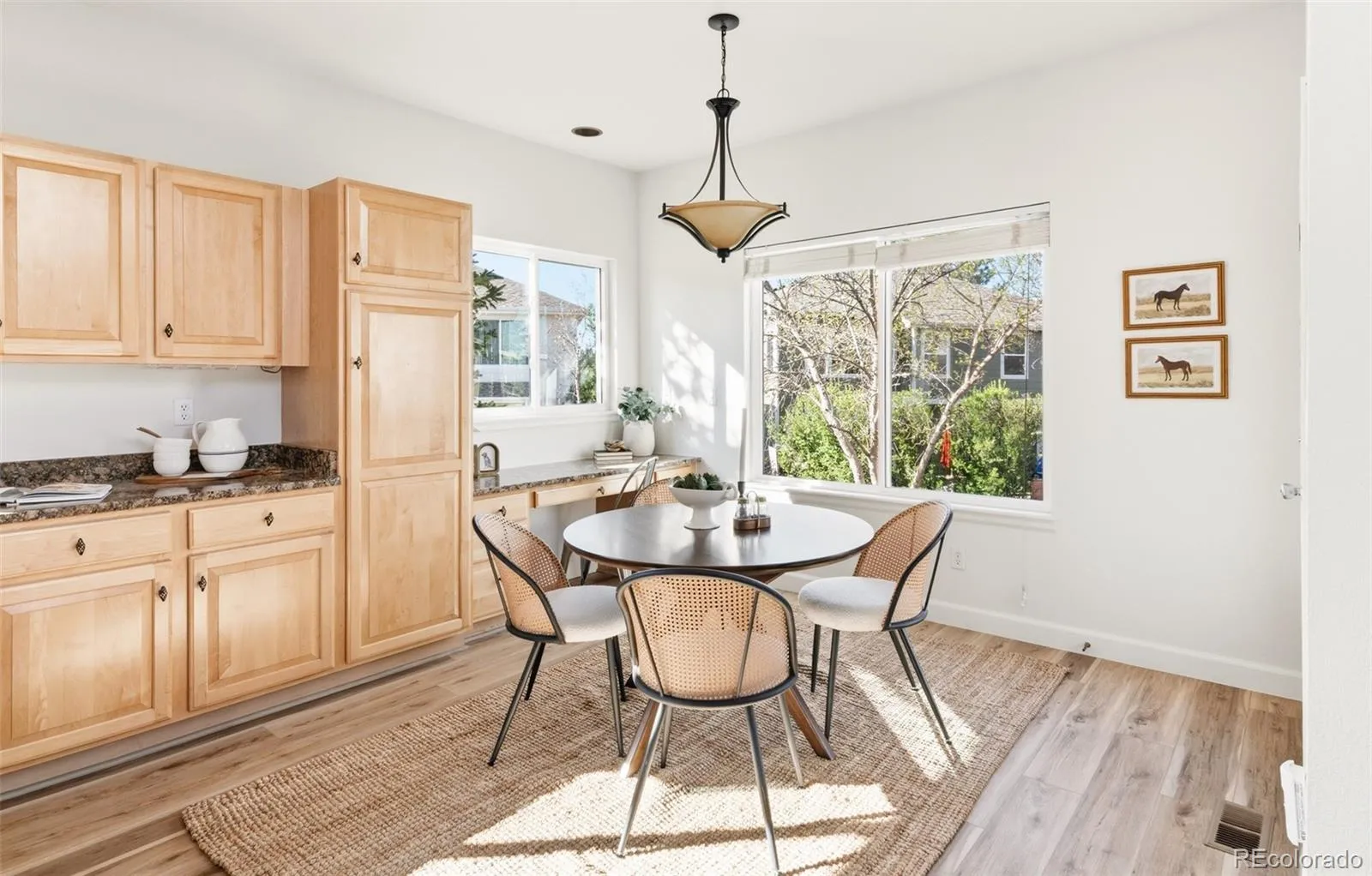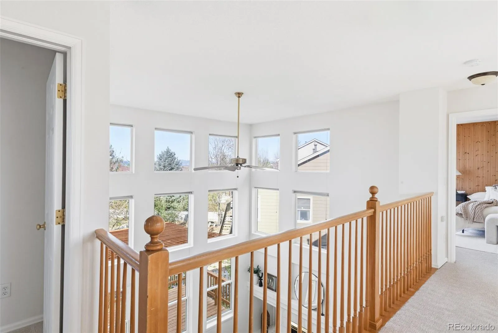 An exceptional blend of volume, light and livability defines this beautifully appointed Greenfield residence. Soaring two-story ceilings and an expansive wall of windows create a dramatic great room filled with natural light, anchored by a tiled gas fireplace. The open main level flows effortlessly into a spacious kitchen featuring granite countertops, light wood cabinetry, a center island and a bright breakfast nook with direct access to an elevated deck and pergola for seamless indoor-outdoor entertaining. Thoughtful updates include new laminate flooring on the main level (2025) and new upstairs carpeting. A dedicated home office with glass French doors and a picture window adds flexibility. Upstairs, the primary suite impresses with a wood-paneled accent wall and a five-piece bath boasting refreshed tile. A finished basement with a large rec room expands living space, while a generous backyard with a large patio and proximity to community amenities complete this luminous haven.
