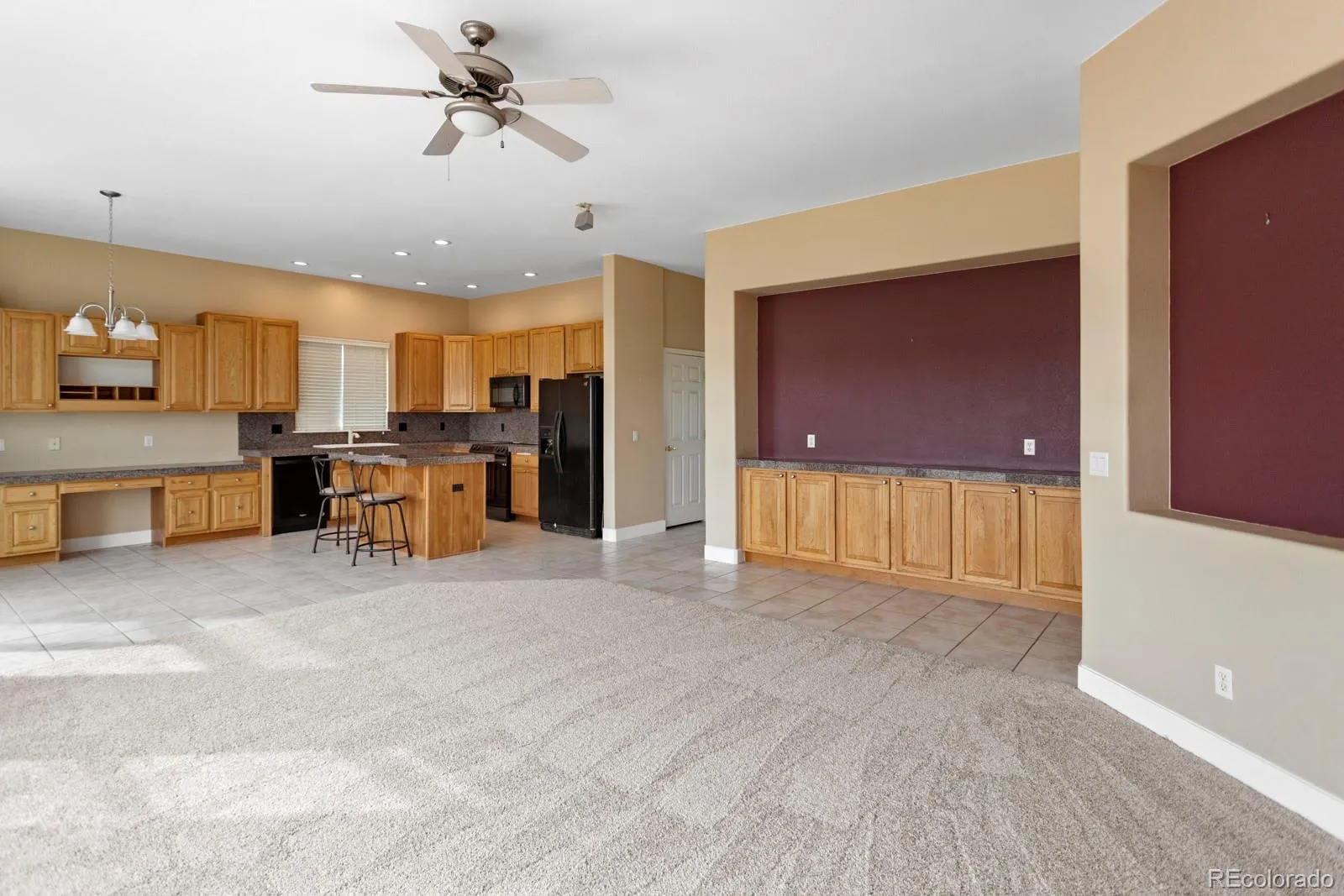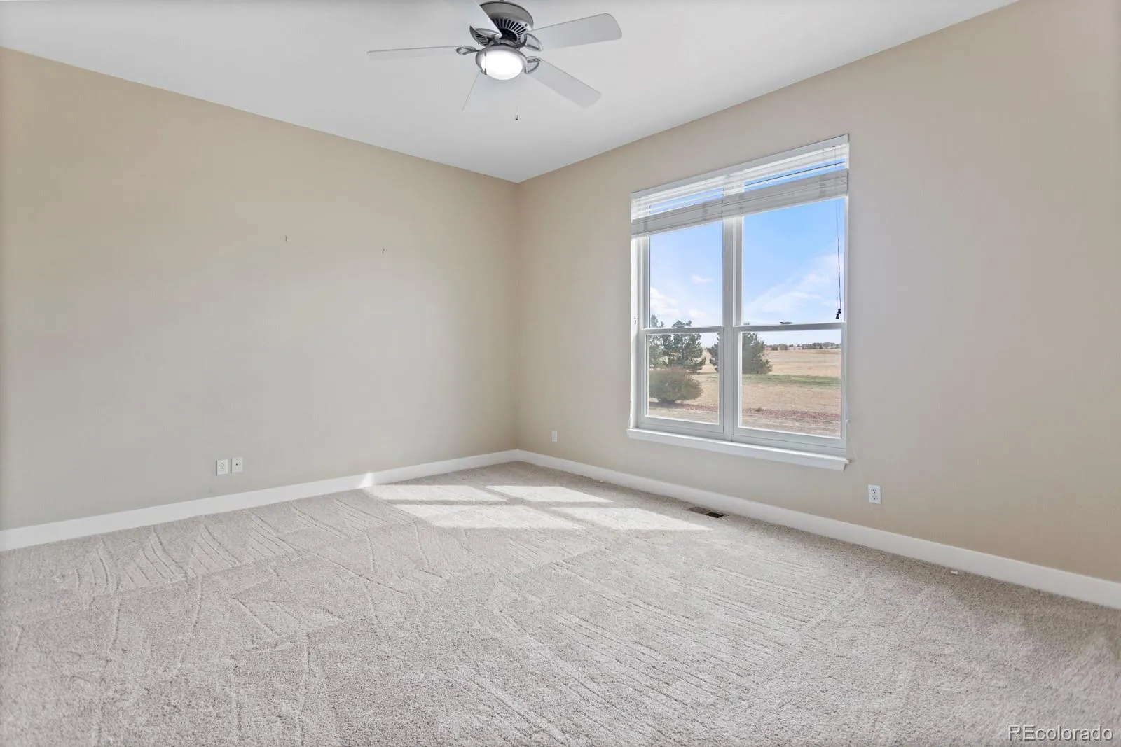 Tucked away on a private one-acre homesite in Bennett, this stunning Ranch offers the perfect blend of space, comfort, and Colorado beauty. With no neighbors directly in front or behind, the home backs to open space and fronts to land that will not be developed, creating a peaceful, wide-open setting that is hard to find. From the moment you arrive, the circular drive, extensive off-street parking, and oversized three car garage set the tone. Inside, the home shines with brand new carpet, new baseboards on the main level, and a newer roof just two years old. Vaulted ceilings and expansive south facing windows flood the main floor with natural light, creating a warm and inviting atmosphere. The thoughtfully designed main level features an open concept layout with a spacious family room flowing into the kitchen. The kitchen offers granite countertops, abundant cabinetry and counter space, a built-in desk area, an eat in nook, and a formal dining room for gatherings. A dedicated office and main floor laundry add everyday convenience. The primary suite is a true retreat with a five-piece ensuite bath, while an additional bedroom and full bath complete the main level. The fully finished basement expands the living space with incredible flexibility. You will find three additional bedrooms or ideal spaces for a gym or flex use, a 3/4 bath, and an impressive built in theater room featuring a 112″ projector, screen, and Boston Acoustics sound system. The lower level also includes a secondary entertaining area with a mini fridge, sink, dishwasher, and hookups for a full-size refrigerator – possible multi-generational living. Step outside to enjoy the tranquility of your acre lot, where privacy and open views create a true escape. The community enhances the lifestyle with a neighborhood playground and fishing pond, all with a low HOA of just $57/mo. With over 3800 sq ft, a rare private setting, and move in ready updates, this home delivers the space, lifestyle and comfort!