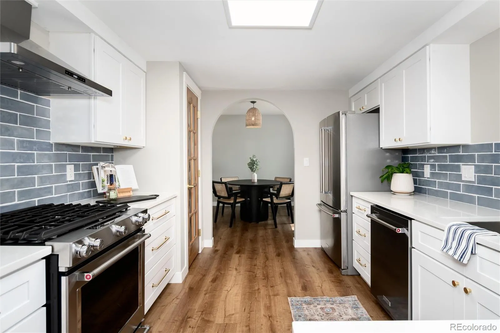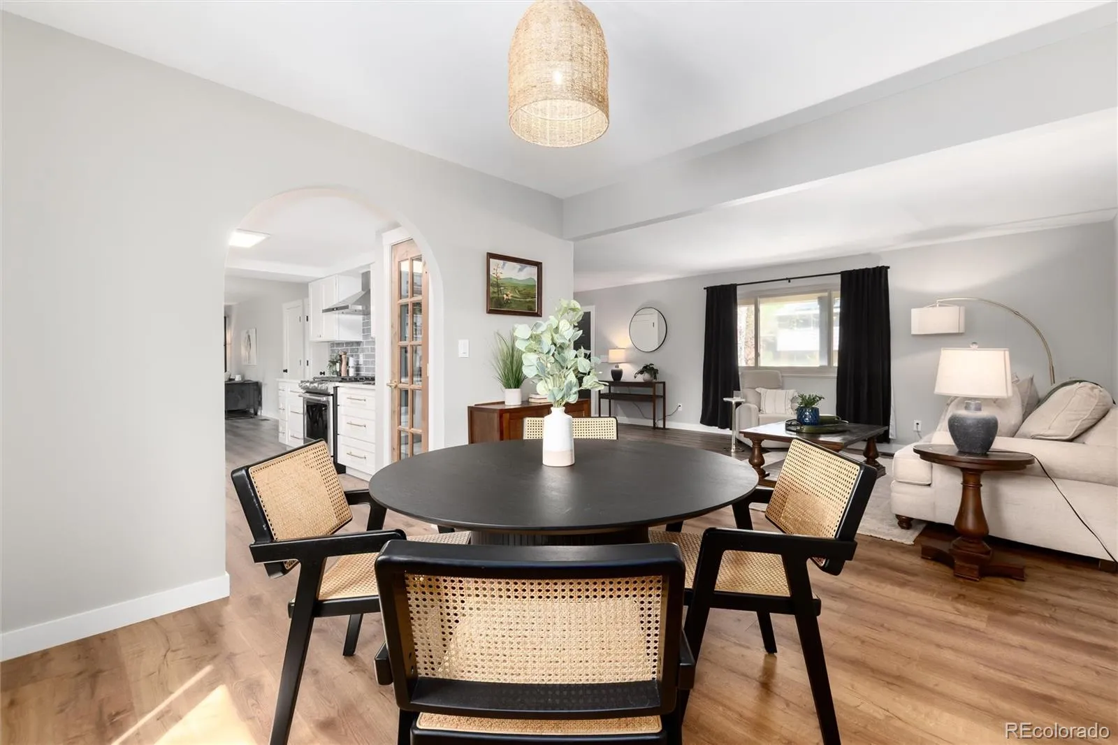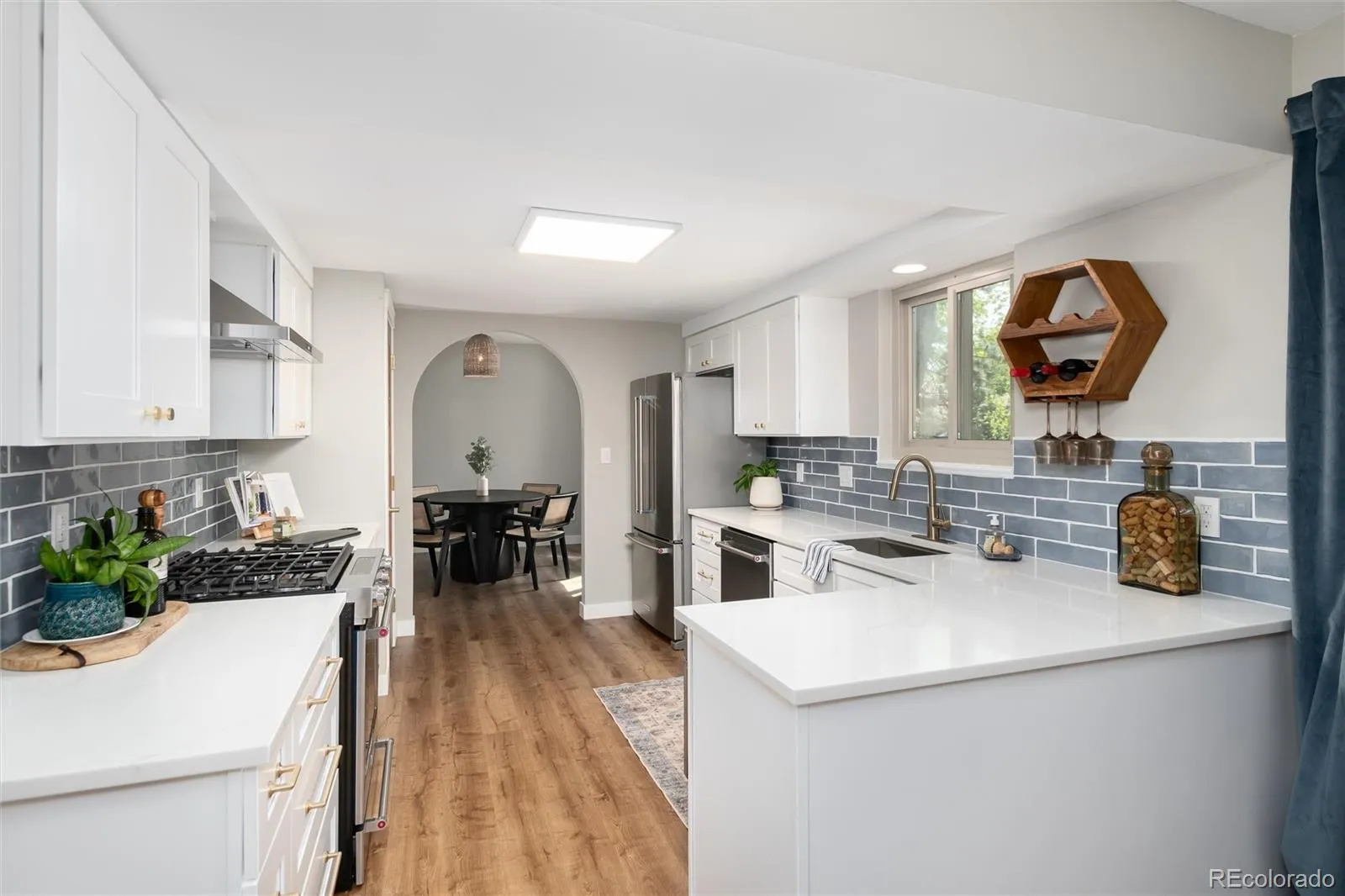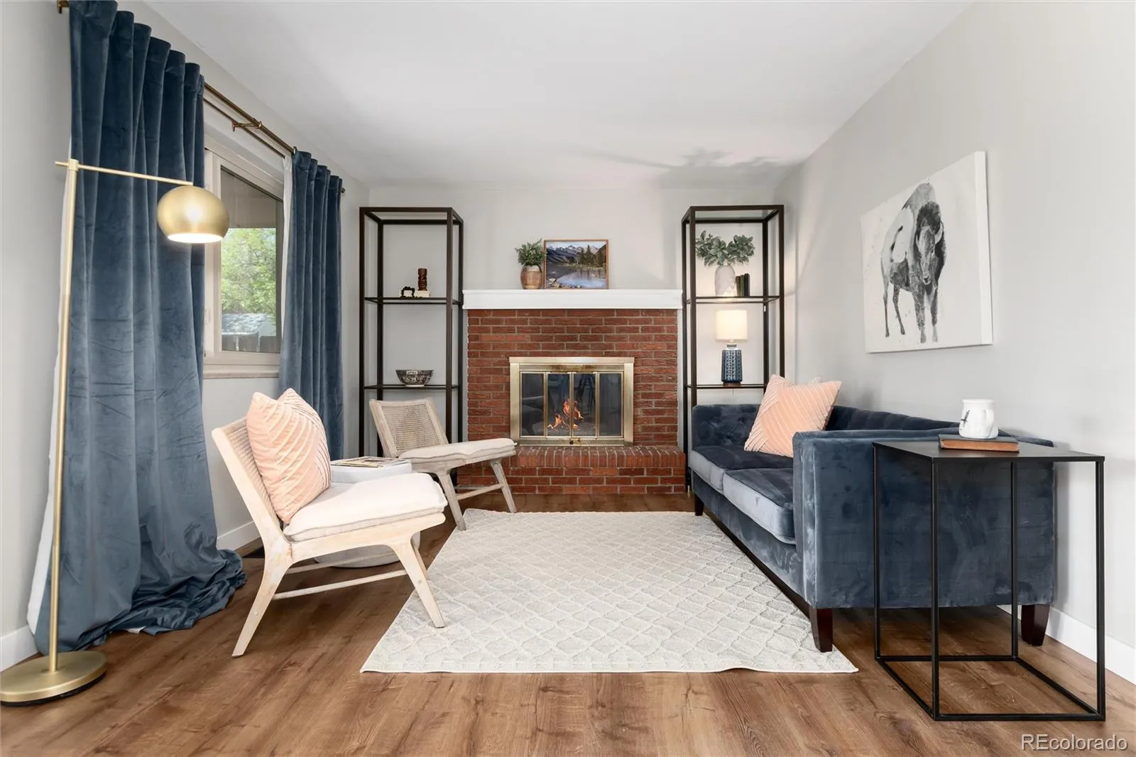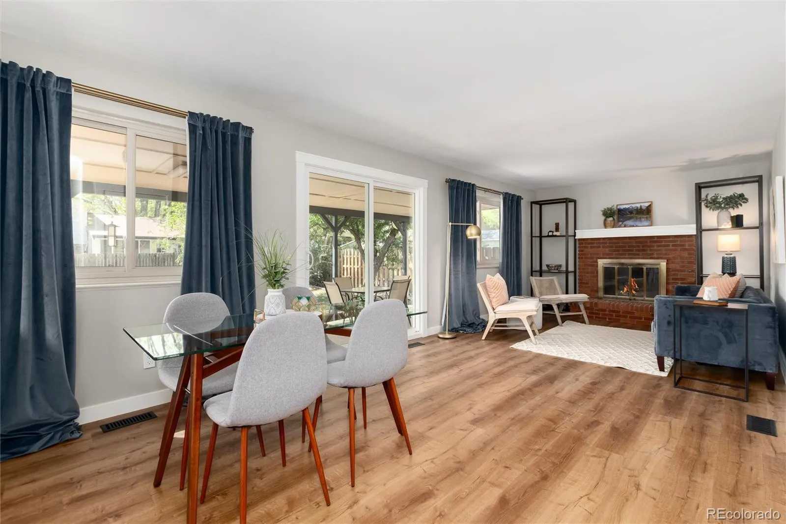 Inside, every detail has been thoughtfully curated to balance style and function. The stunning custom kitchen anchors the home, featuring quartz countertops, a new tile backsplash, all-new KitchenAid appliances, and a beautifully designed pantry that makes everyday living feel effortless. The expansive main level flows seamlessly between multiple living and dining spaces, ideal for entertaining or simply settling into the rhythm of daily life. Just off the kitchen, the covered patio offers a private, serene escape surrounded by mature trees, perfect for summer evenings. A freshly updated powder room adds the finishing touch of refinement.