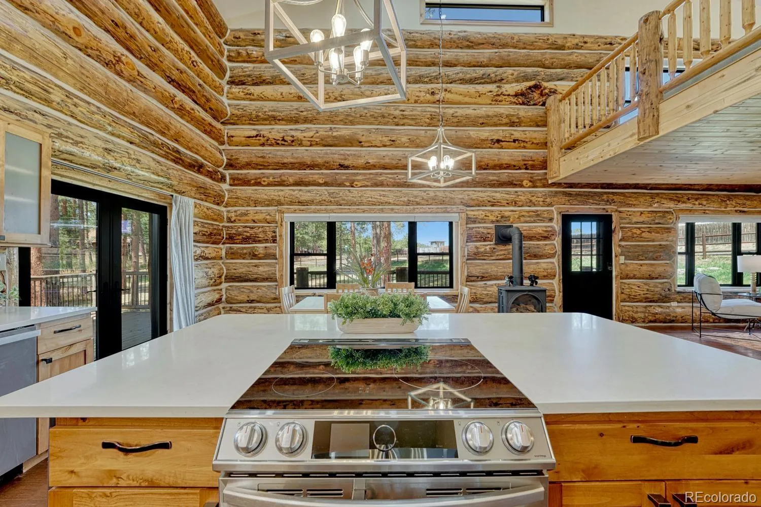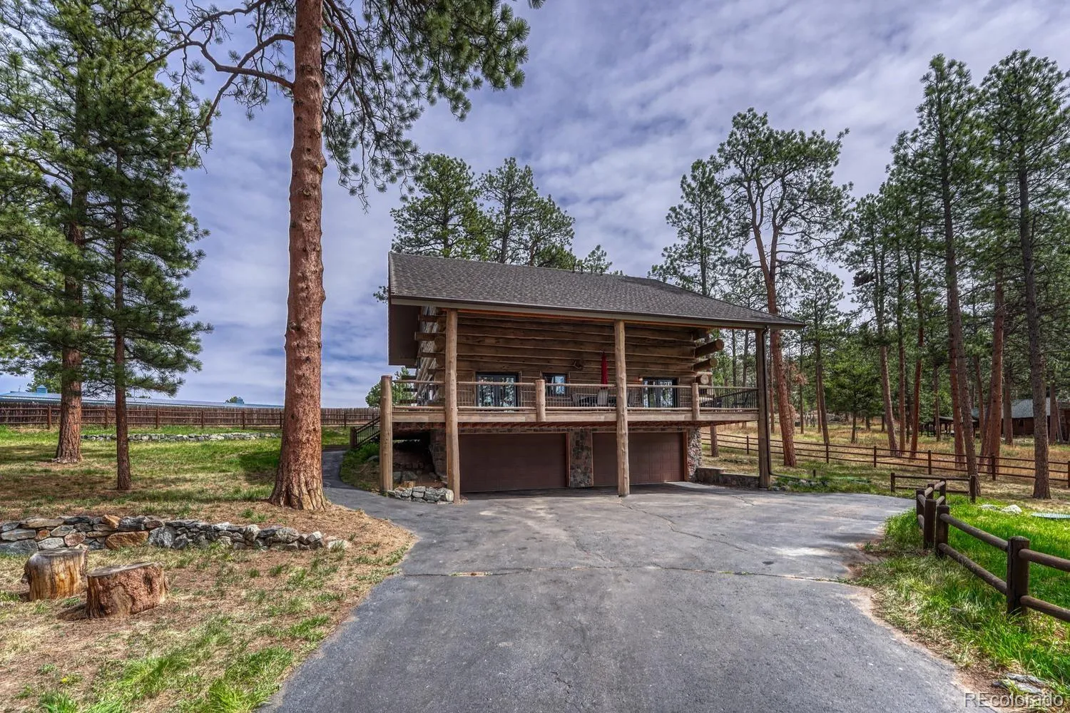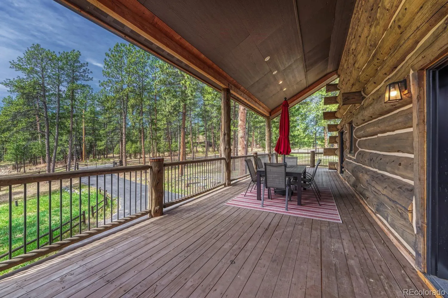 Custom log home in sought-after Indian Hills community with sweeping views of the Continental Divide. Set on a rare .85 acre level lot surrounded by the foothills that Denver buyers seek. Crafted from hand-peeled logs sourced from Steamboat Springs averaging 16” in diameter, this 4BR/4BA/4-car garage home pairs authentic mountain character with extensive upgrades completed over the past five years. EXTERIOR: Newly stained logs with completed caulking and chinking (2023), new gutters, Pella Impervia fiberglass windows and entry and storm doors, custom French doors from the dining room and primary suite. 50-year stone-coated steel roof with workmanship warranty (2024). Expansive wraparound deck sanded and stained (2022), fully fenced lot with motorized security gate, outdoor gas firepit, and patio pre-wired for hot tub. KITCHEN: Center island, walk-in pantry, custom tile backsplash, open flow to dining and living spaces, and a kitchen with a view. Updated with Miele dishwasher, induction oven, and new microwave. DINING/LIVING: Vaulted spaces anchored by log construction with fireplace that can supplement heat. PRIMARY SUITE: Main floor bedroom with private deck access with updated bath featuring new tile, cabinetry, and custom shower details. Convenient main floor laundry. SECONDARY BD/BAs: Two additional bedrooms upstairs with remodeled baths. LOFT: Flexible upper space ideal for office or workout area with some of the best views in the home. BASEMENT: Bedroom with upgraded ¾ bath offering additional living space. HVAC: 98% efficient furnace, heat pump as primary heat source with gas backup, integrated steam humidifier, UV air filtration, A/C, and Honeywell smart thermostat (2022/2023). Tankless hot water system. HOME EXTRAS: Hardwood flooring, hypoallergenic carpet, California Closet systems, automated blinds, radon mitigation, whole-home generator hookup, 220 EV-ready garage, 4-car garage with quiet smart openers (2022). Unincorporated for lower taxes and NO HOA.